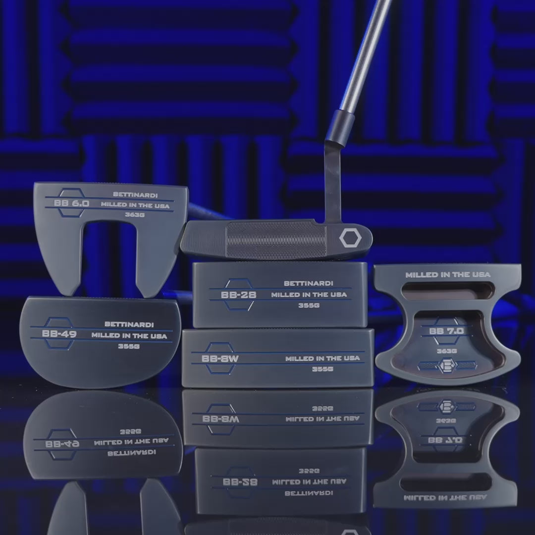 Precision meets polish. Each BB Series putter is finished in a deep Savannah Blue PVD for durability and unmistakable style. Paired with a Tour grade Brushed Nickel shaft for enhanced feel and control and protected by a carbon fiber inspired magnetic headcover with navy and grey detailing, every detail reflects Bettinardi’s commitment to performance and craftsmanship.