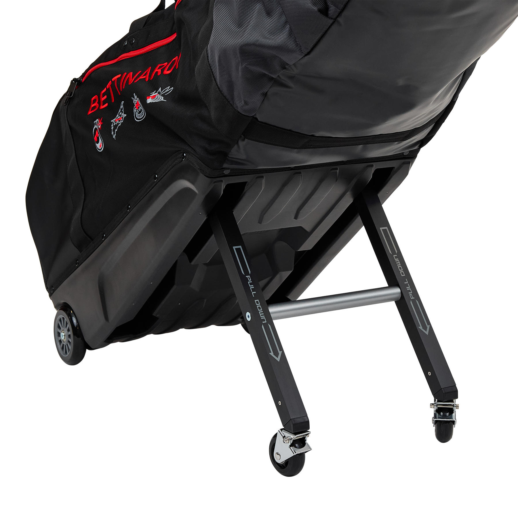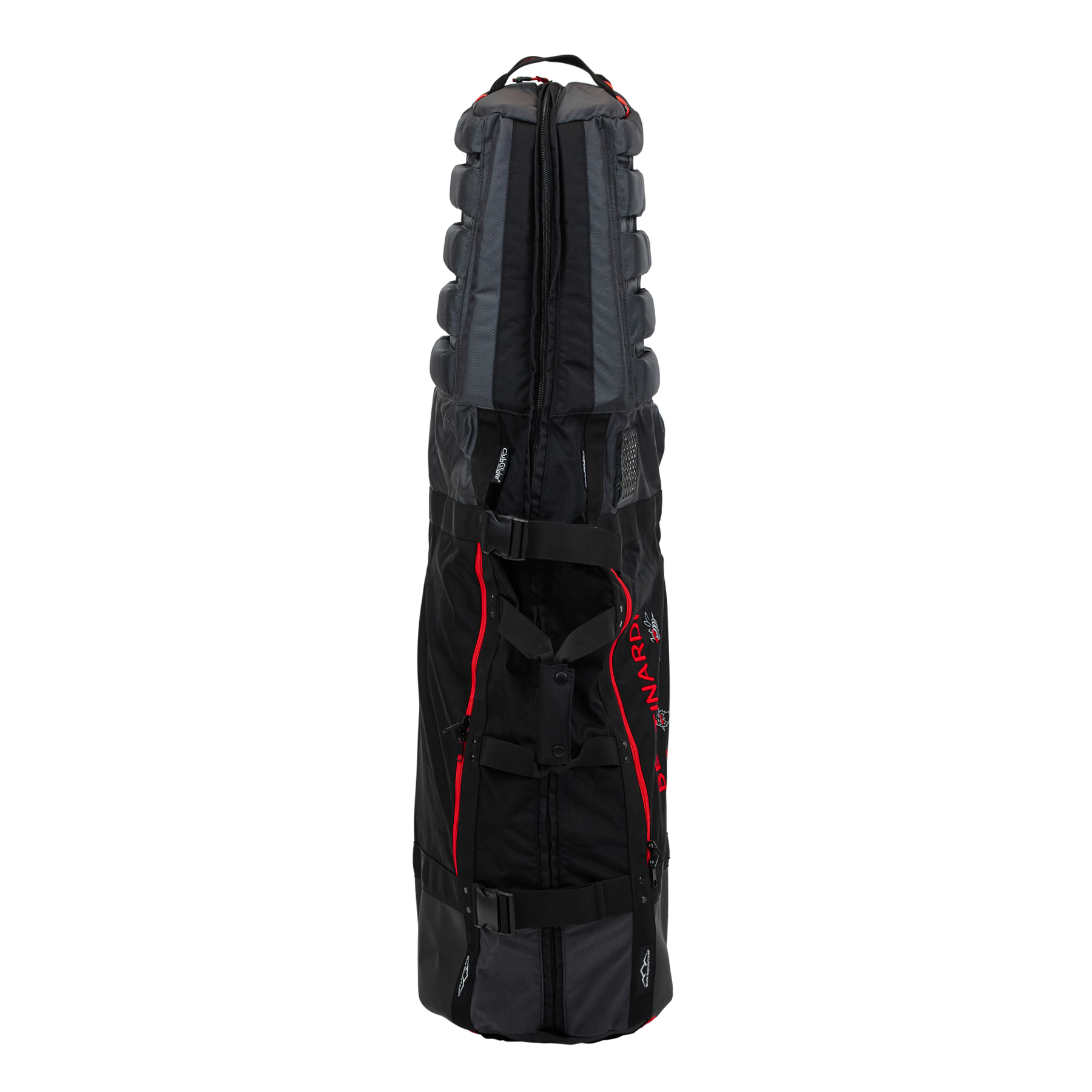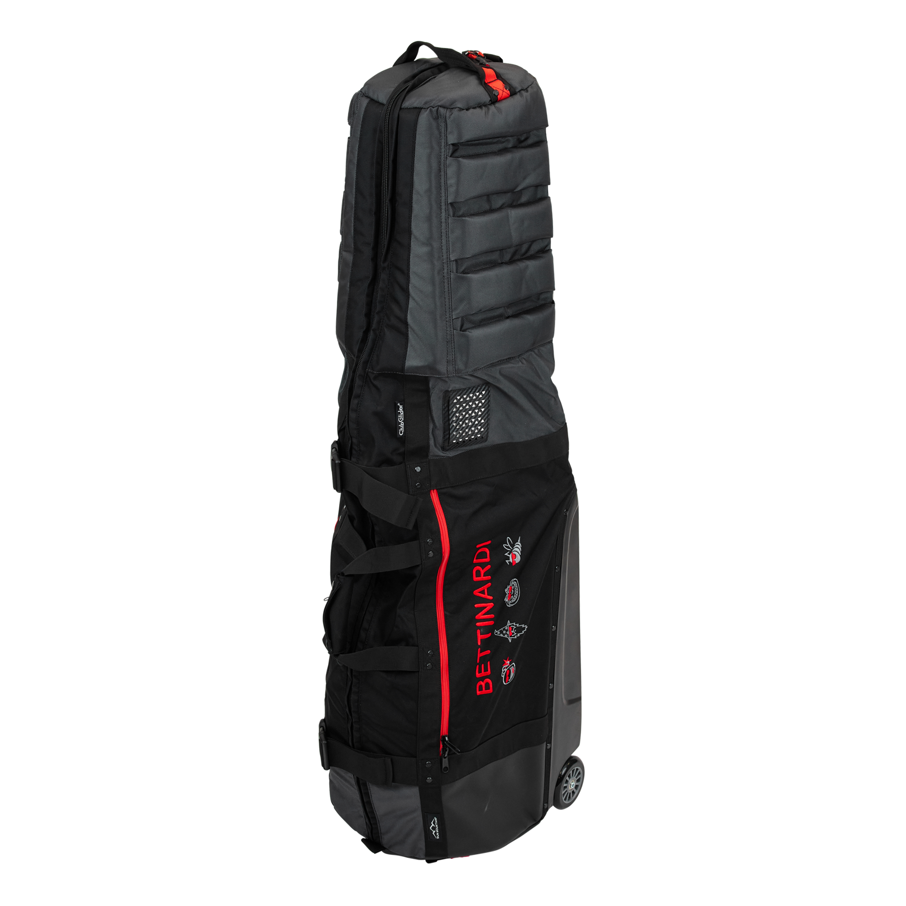 Travel like a pro with the Sunglasses Multi Icon ClubGlider Meridian Travel Bag! Featuring our Sunglasses Multi Icons with Bettinardi adorned in red over a black, stylish base. The dense foam padding at the top that protects your clubs while the leg mechanism carries the weight of your bag, and the pivoting wheels deliver smooth maneuverability. Pulling a fully loaded ClubGlider feels almost effortless. Finished with heavy-duty, two-way zippers that run the full length of the bag for easy loading with exterior access pockets to store extra gear. (Weight 11.3 lbs)