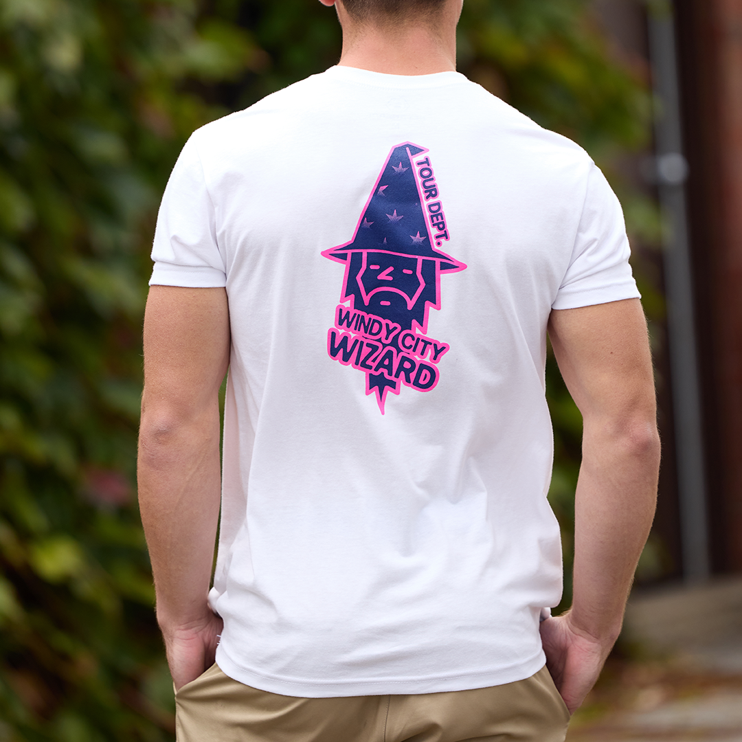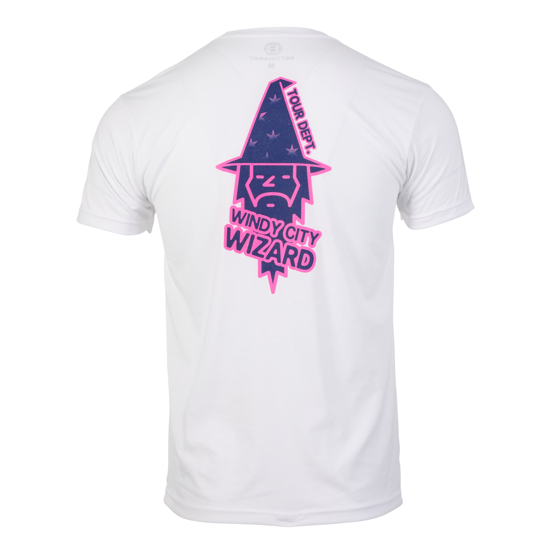 This t-shirt is perfect for out and about wear or lounging around. Featured on a white base with Bettinardi on the front left chest and our Tour Dept. Windy City Wizard on the reverse. (60% combed ring-spun Cotton, 40% Polyester)