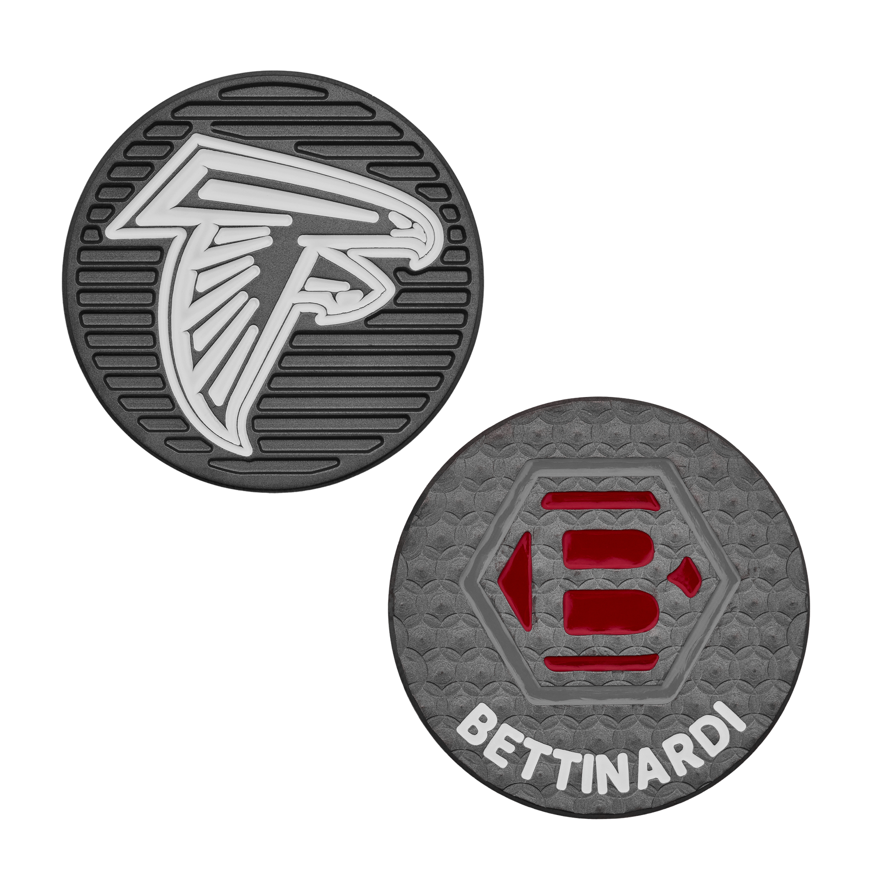 Go Falcons! This Black Ox ball marker features the Atlanta Falcons logo on the front, with Hex B milled into the backside with red and gray paint fills over a Micro Honeycomb™ base. Limited quantities are available.