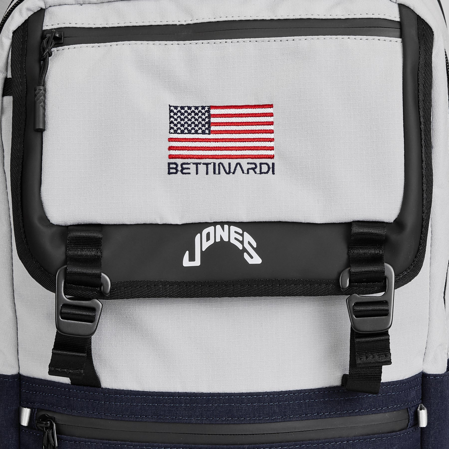 This backpack is crafted by our friends at Jones in a Moon Gray and Navy two-tone design that features a Space Hex B embroidered on the front bottom pocket and a Bettinardi USA flag on the front top pocket. With ample space and separation, this pack will keep you organized for life on the go. The padded shoulder straps and cushioned back support ensures a comfortable carry when loaded with your daily necessities. This model is constructed from a recycled, ripstop material, woven from 100% PET single-use plastic bottles. The most innovative, durable, and water-resistant fabric to date, this model supports Jones' commitment towards a more sustainable future. Tested and proven in the ever-changing climate of the Pacific Northwest.