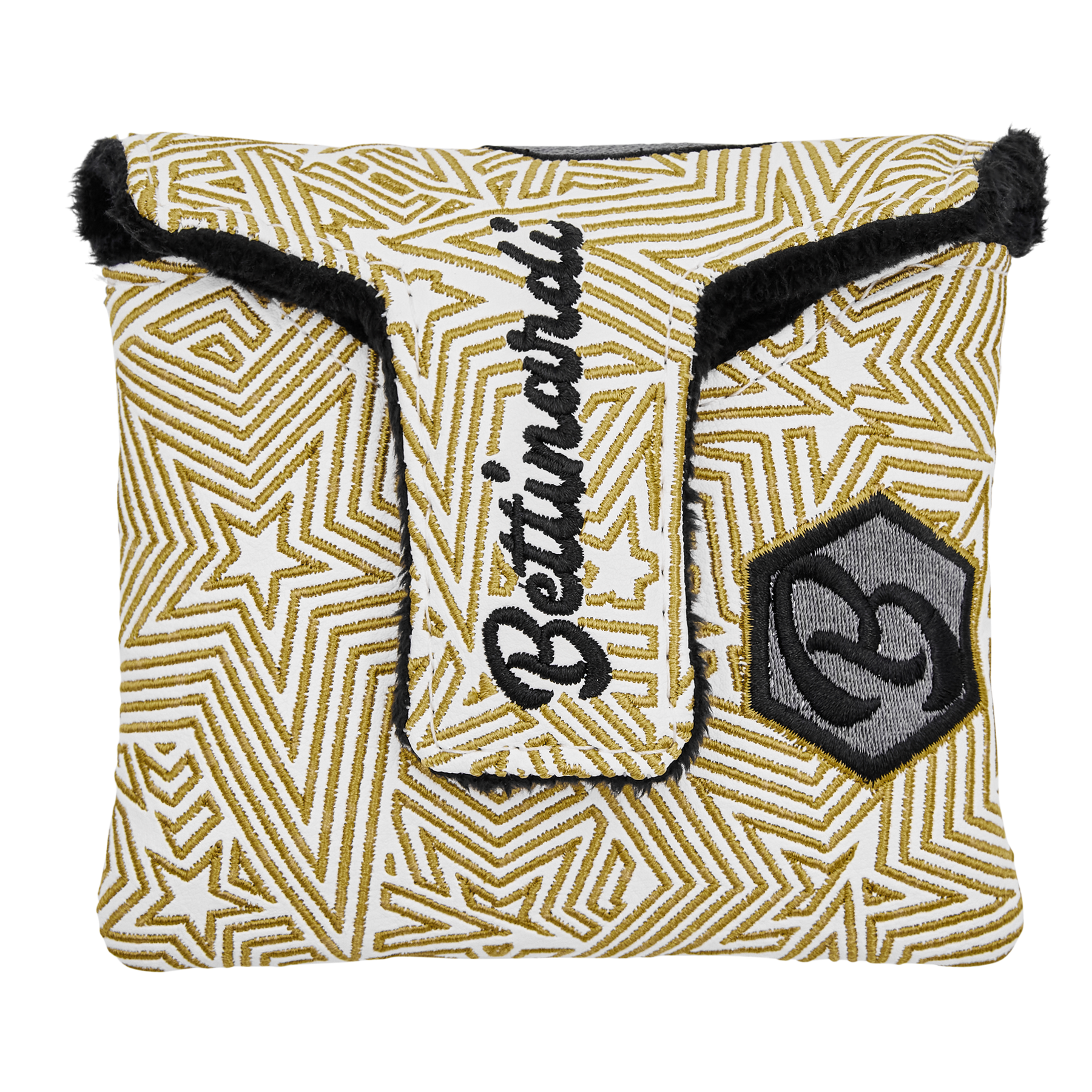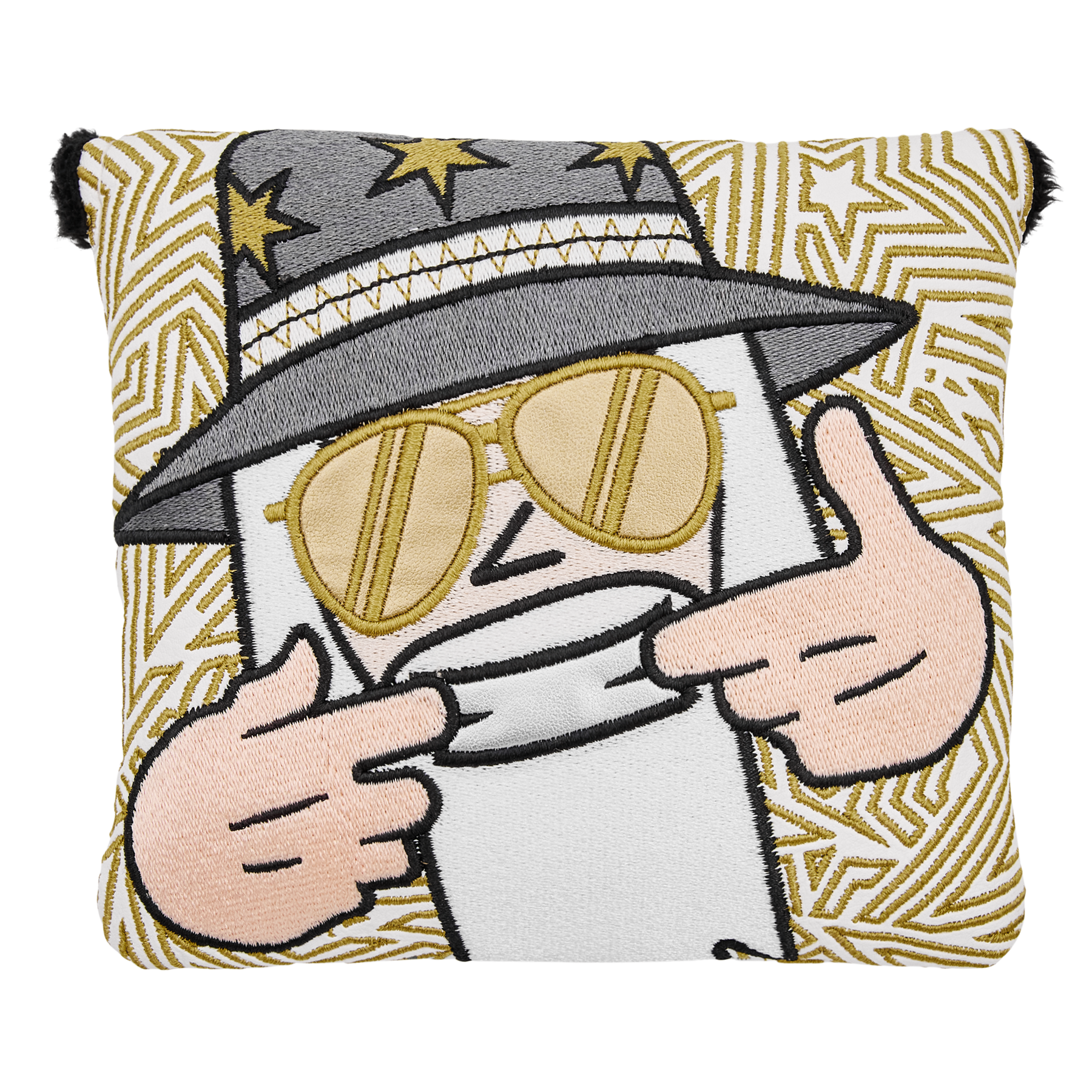 The Wizard showed up iced out and ready to shine on this mallet putter headcover — gold star hat, mirrored shades, and a silver grill shining brighter than a platinum plaque. Wrapped in a white base with gold stars, black plush interior, and a magnetic closure that hits smooth every time. Exclusively in the BKS merch store! Limit 1 per person. Good luck!
