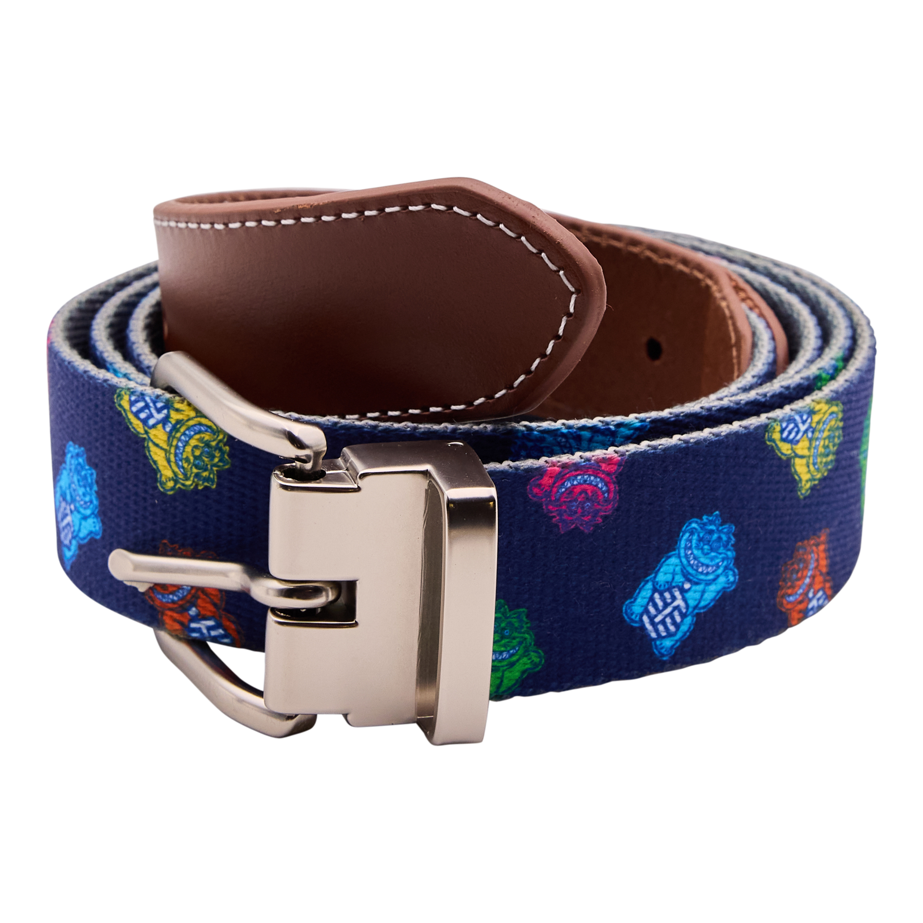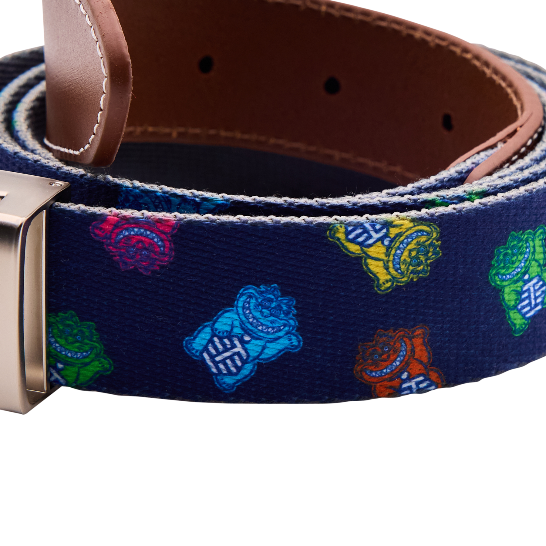 This Lucky Cat Peter Millar signature embroidered cotton belt combines durability and style, crafted from 100% cotton with rich full-grain leather detailing and a solid brass buckle finished in matte nickel. Measuring 1.25 inches wide, this sporty classic is designed to make a statement on the course or any occasion. One size fits most between 32" - 44".
