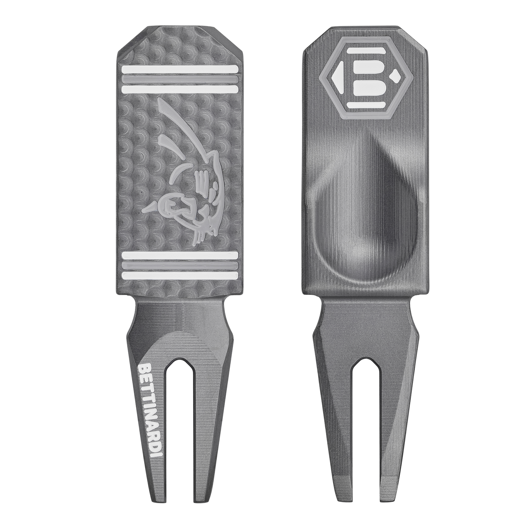 Go Panthers! This Black Ox divot tool features the Carolina Panthers logo milled over Micro Honeycomb™ on the front, with a Hex B on the backside above the thumb contour in gray and white paint fills. Limited quantities are available.