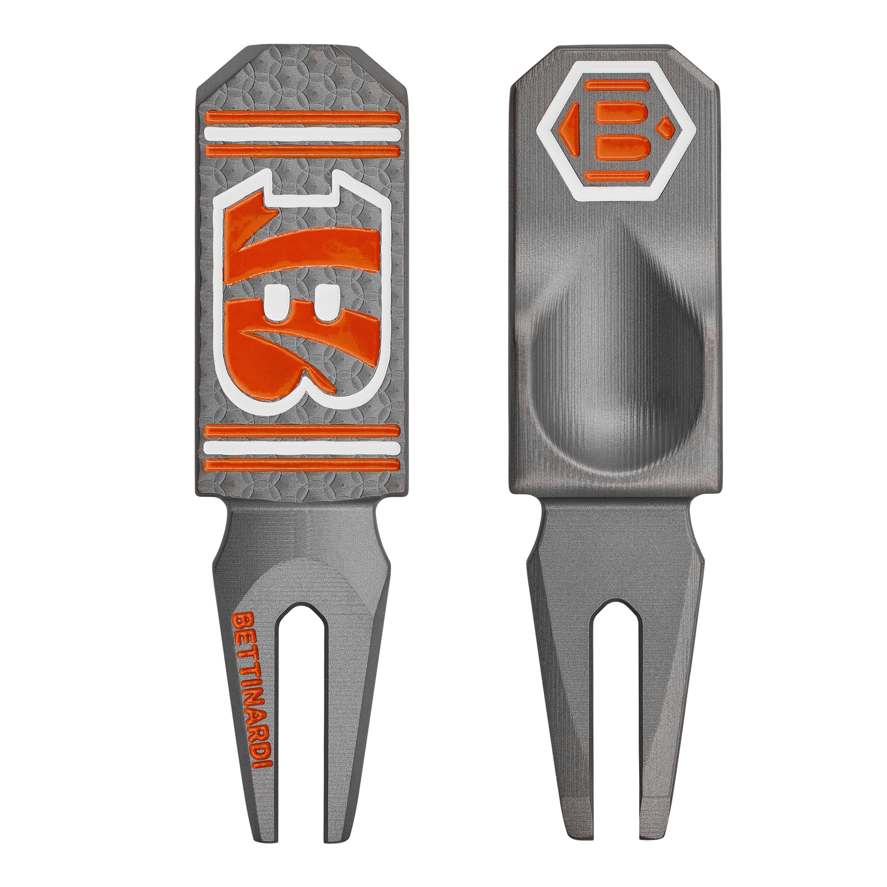 Go Bengals! This Black Ox divot tool features the Cincinnati Bengals logo milled over Micro Honeycomb™ on the front, with a Hex B on the backside above the thumb contour in burnt orange and white paint fills. Limited quantities are available. Please allow 5 days for this item to ship.