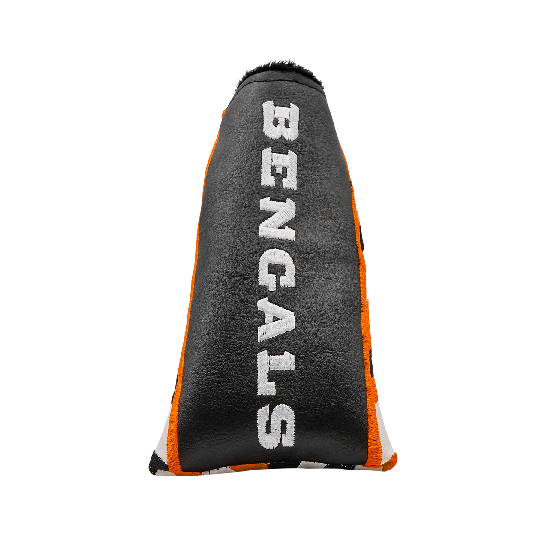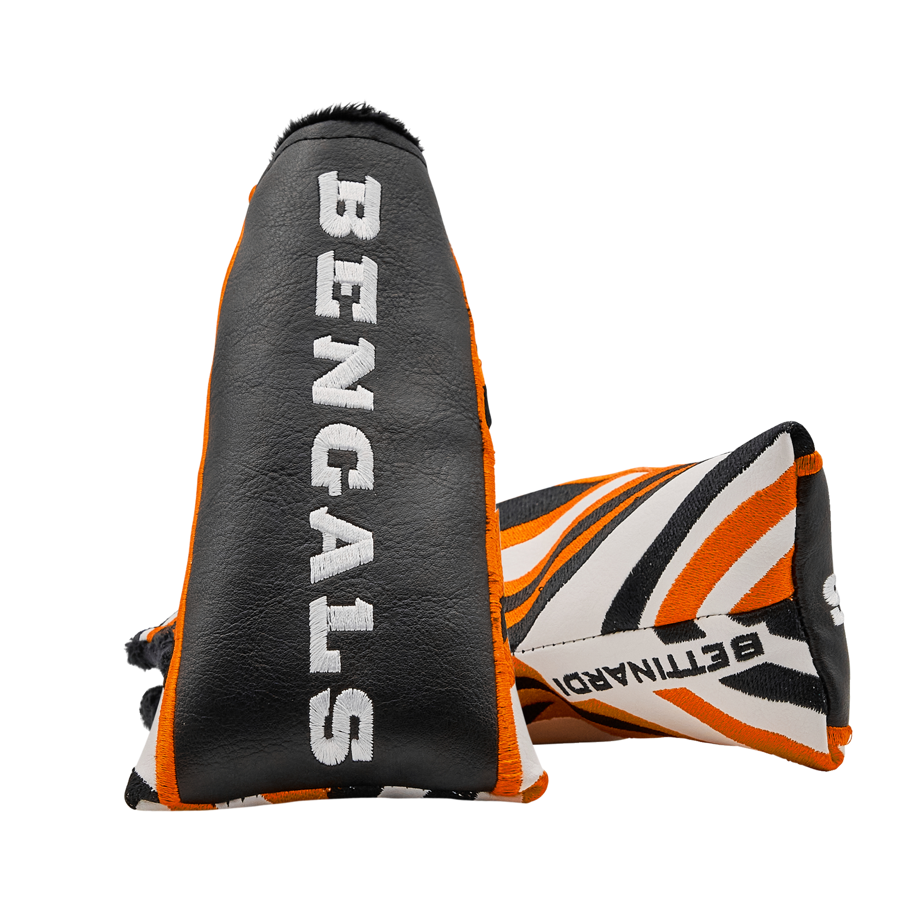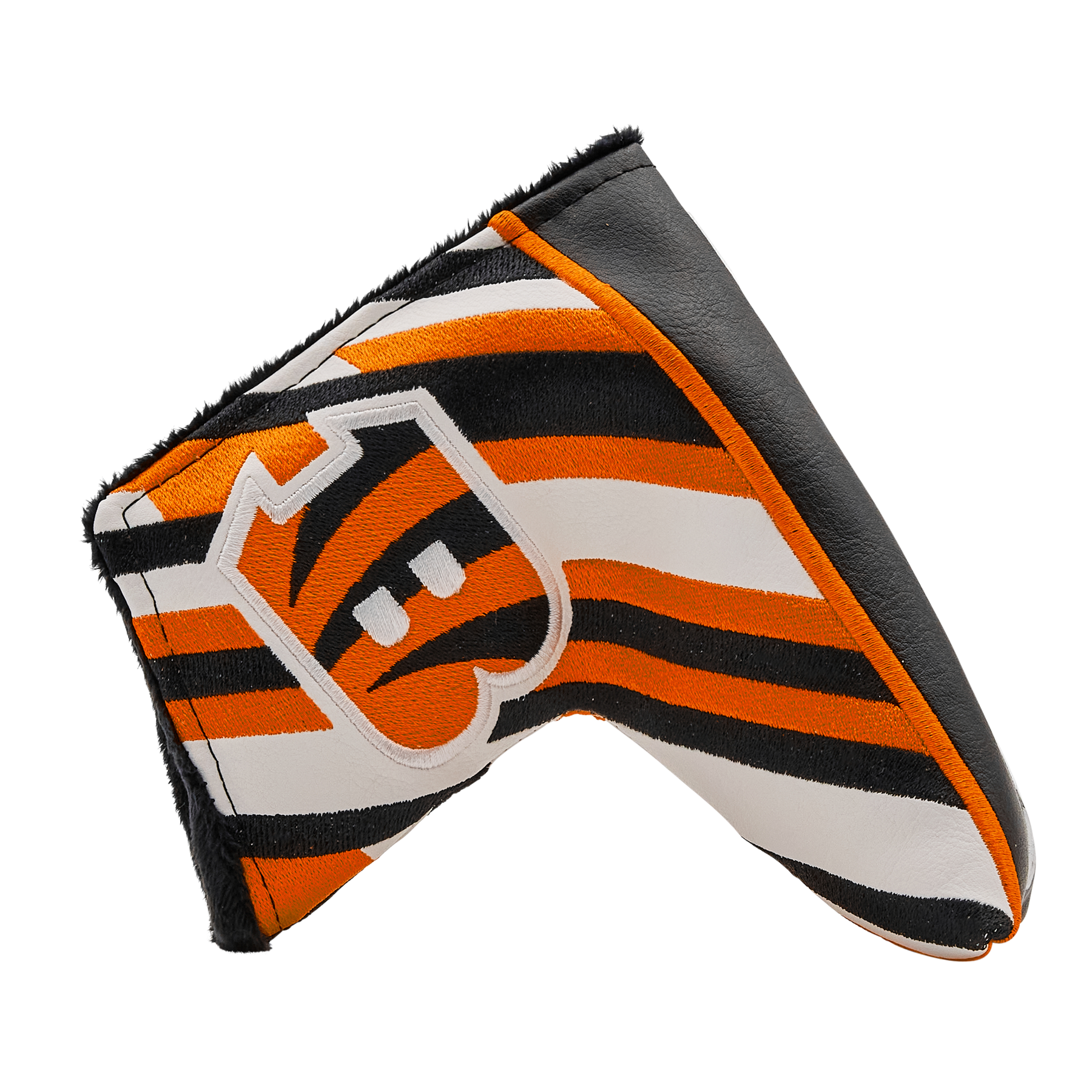 Go Bengals! Show off your Cincinnati pride with this multi-stripe blade putter headcover featuring their team colors of orange, black and white. Finished with the Cincinnati Bengals primary logotype down the center and black plush interior with a magnetic closure. Limited quantities available. Please allow 2-3 weeks for this item to ship.