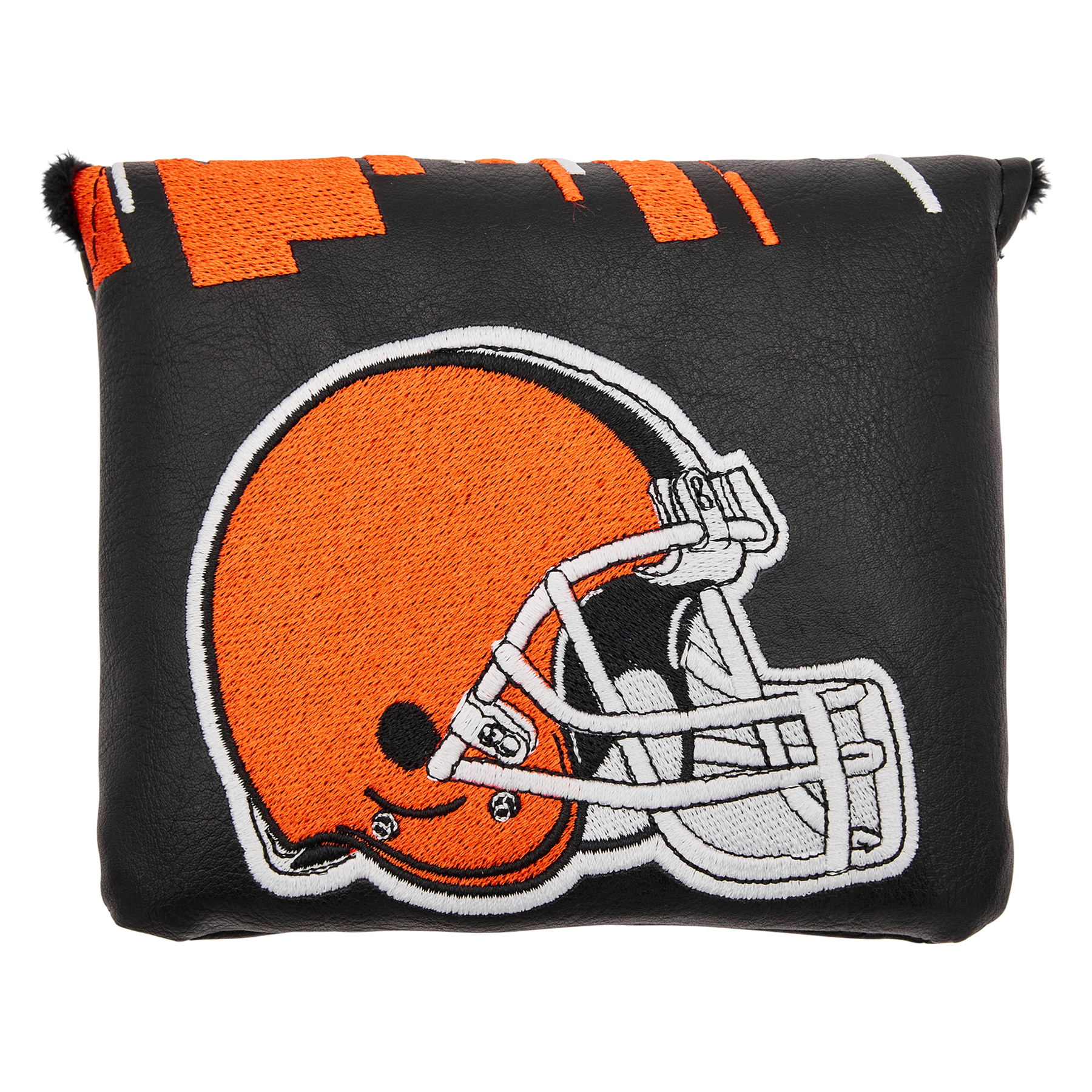 Go Browns! Show off your Cleveland pride with this digital stripe mallet putter headcover featuring a limited colorway of orange, black and white. Finished with the Cleveland Browns primary mark on the front and black plush interior with a magnetic closure. Limited quantities available. Please allow 2-3 weeks for this item to ship.