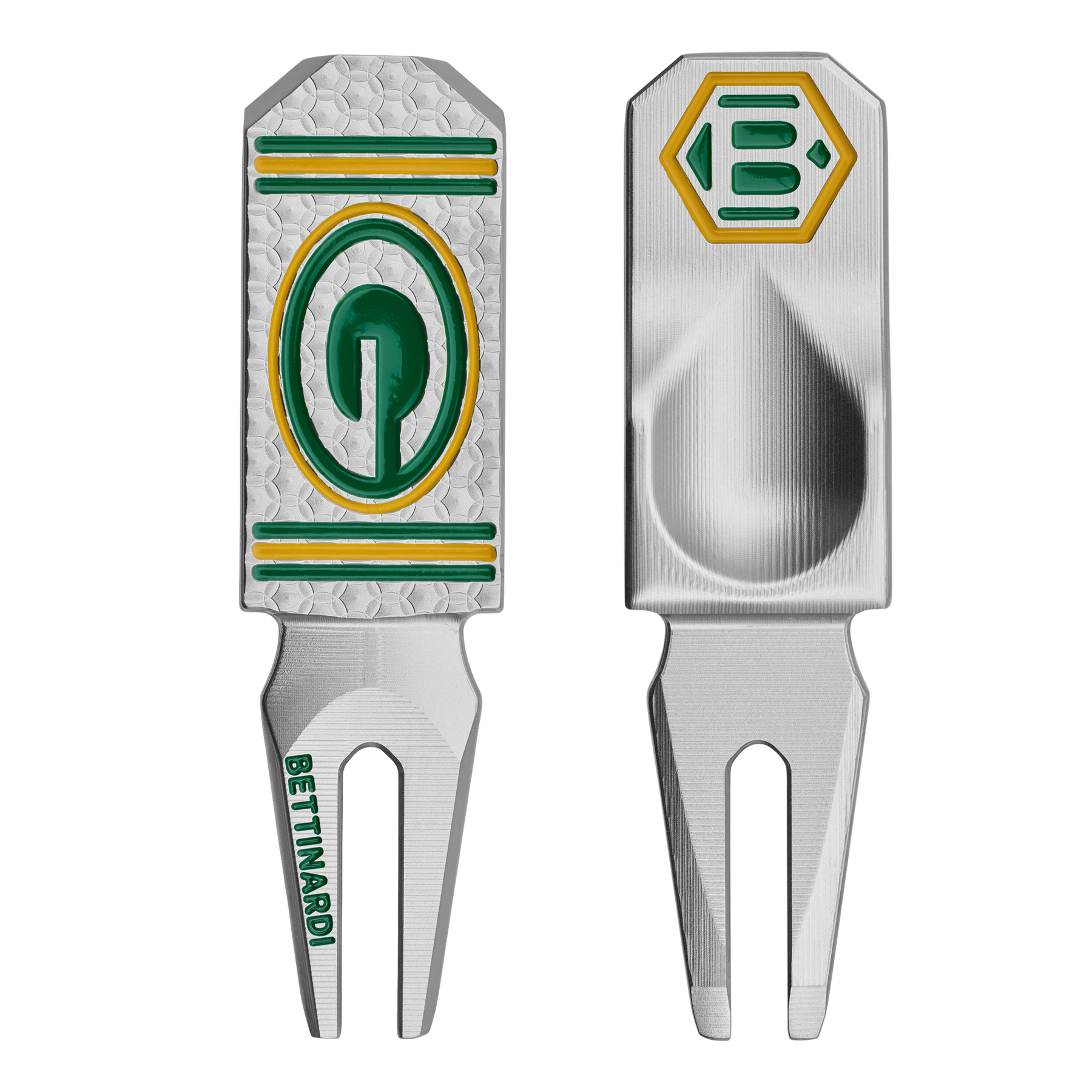 Go Packers! This Diamond Blast divot tool features the Green Bay Packers logo milled over Micro Honeycomb™ on the front, with a Hex B on the backside above the thumb contour in green, yellow and white paint fills. Limited quantities are available. Please allow 5 days for this item to ship.
