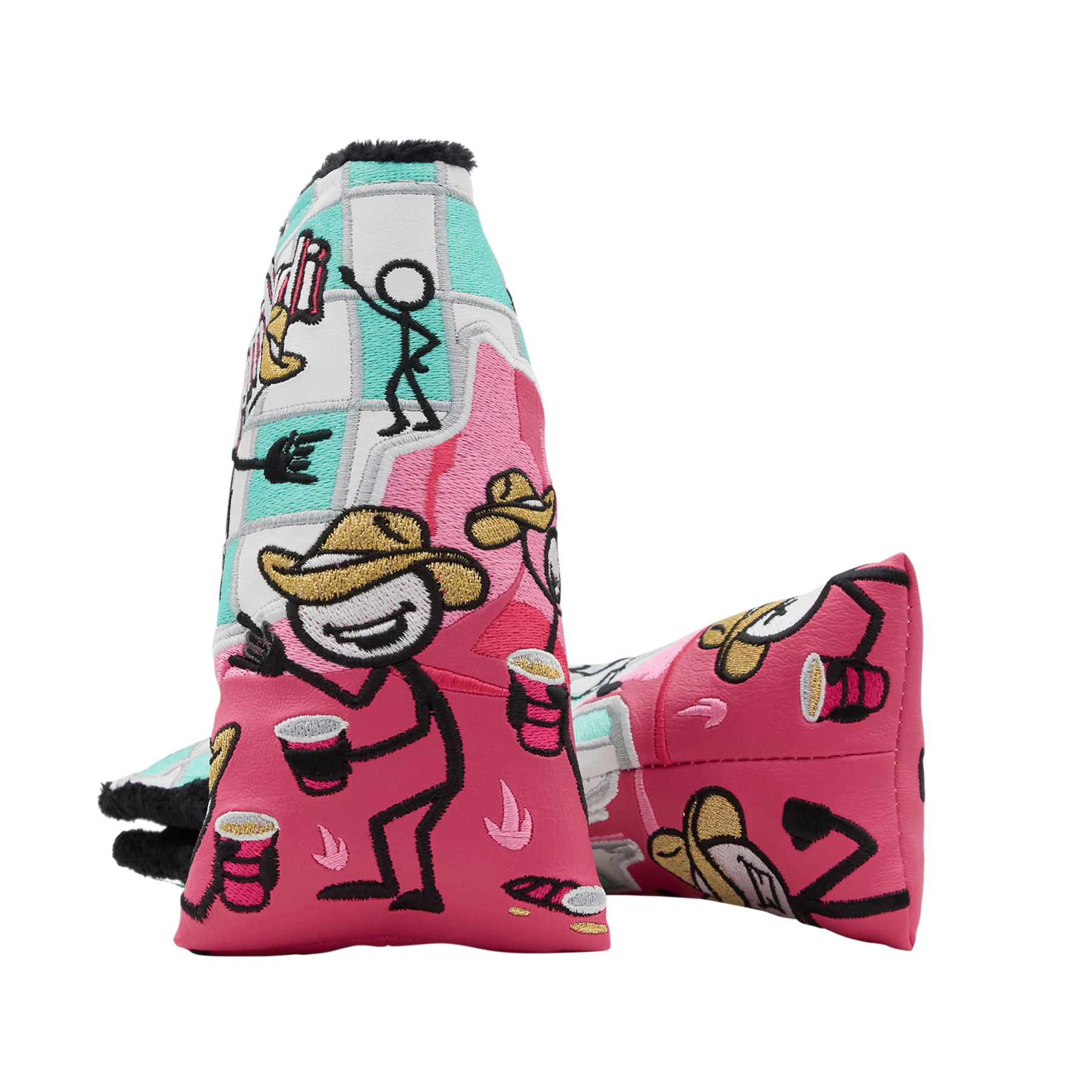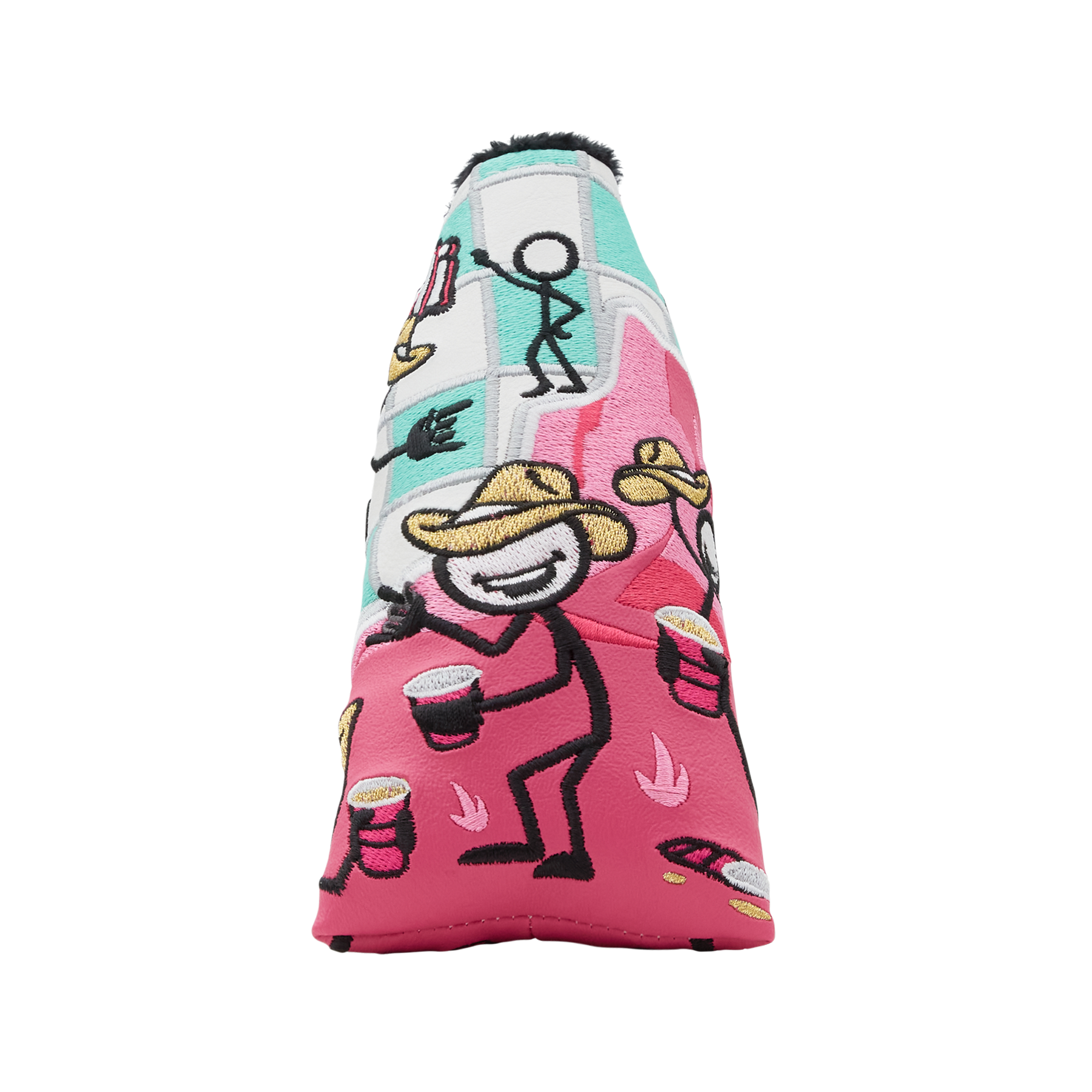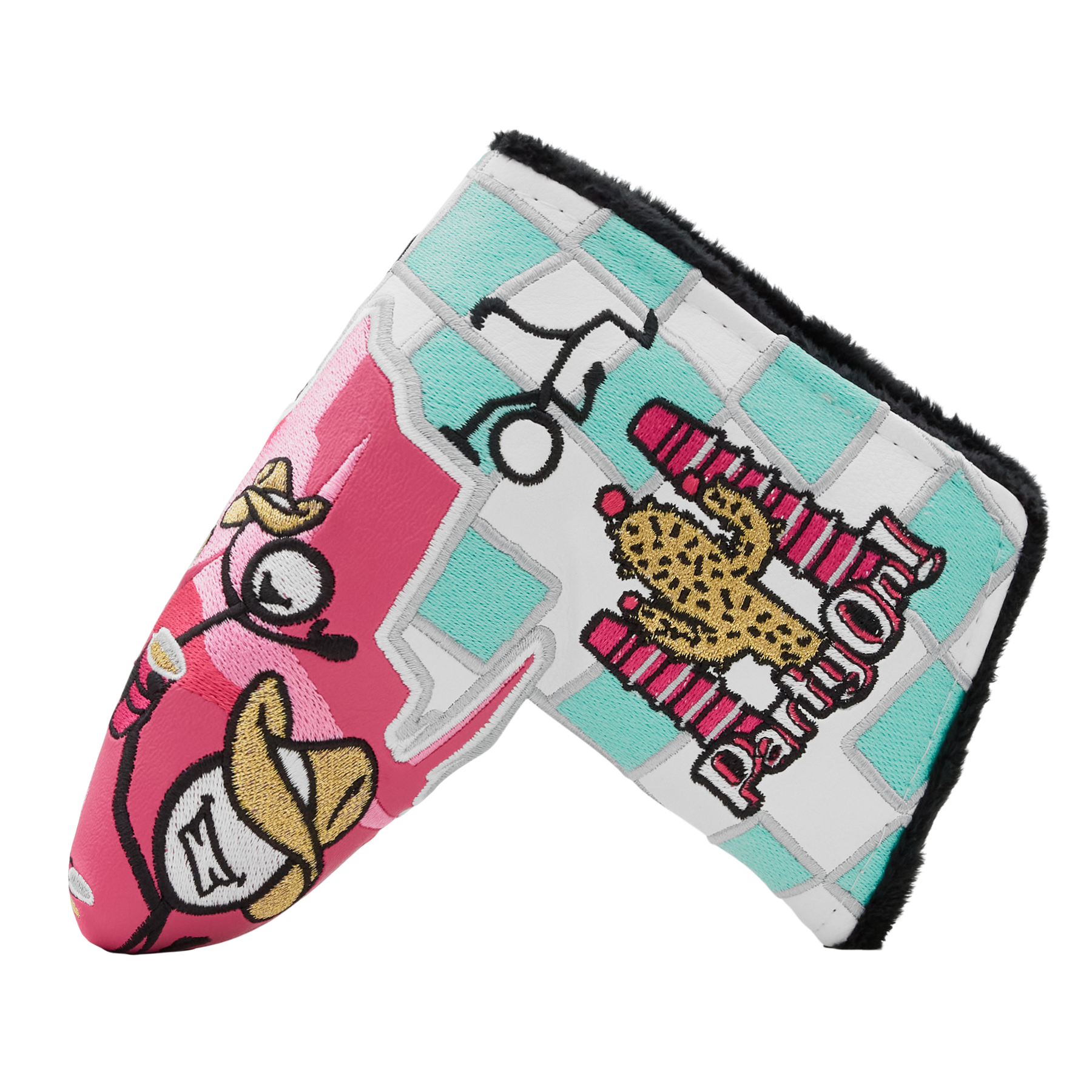 The Rabble Rousers are out to play under the blazing desert sun and there's no better way to cool down than with a refreshment! Designed on a sea green checkered base and pink mountain scenery, this Party On!™ blade putter headcover will bring the heat to your bag. Finished with a black plush interior and a magnetic closure. Limited quantities are available. Limit 1 per person, good luck!