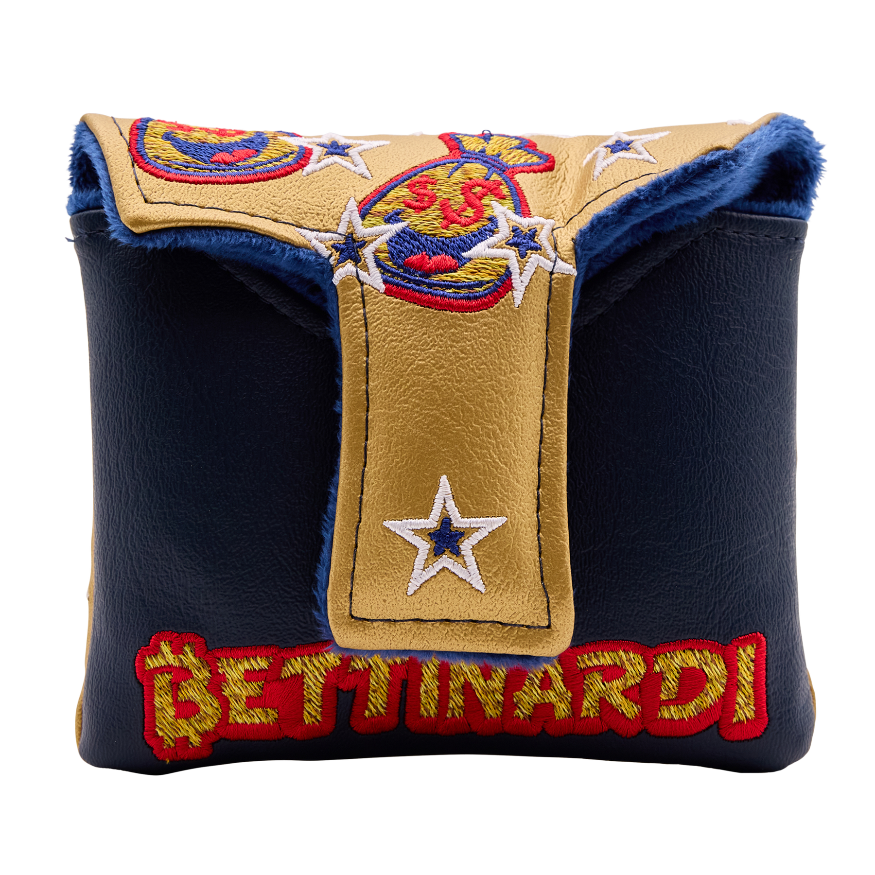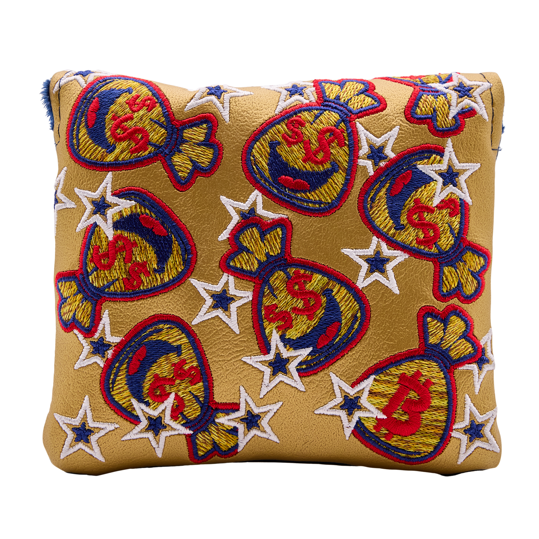 The Traveler - Gold Moneybag Mallet Putter Headcover for the Frisco Travelers trip 2025.