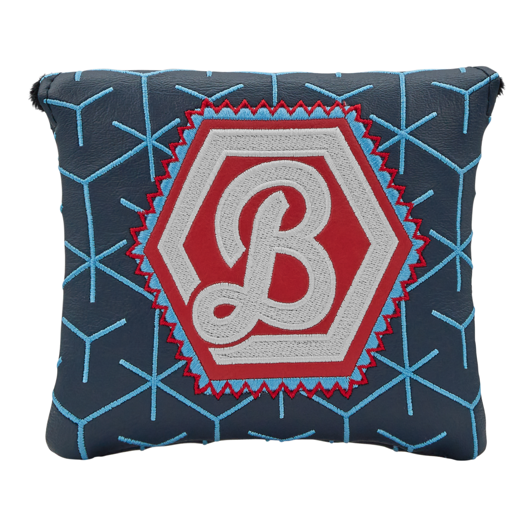 Designed to shine bright in the bag, this navy center-shafted mallet headcover features a blue diamond-cut pattern throughout for added texture and depth. A red and white script Hex B on the front and script Bettinardi wordmark on the reverse delivers a bold contrast, while the black plush interior provides soft, reliable protection for your club. A refined mix of style and function, built for everyday play.