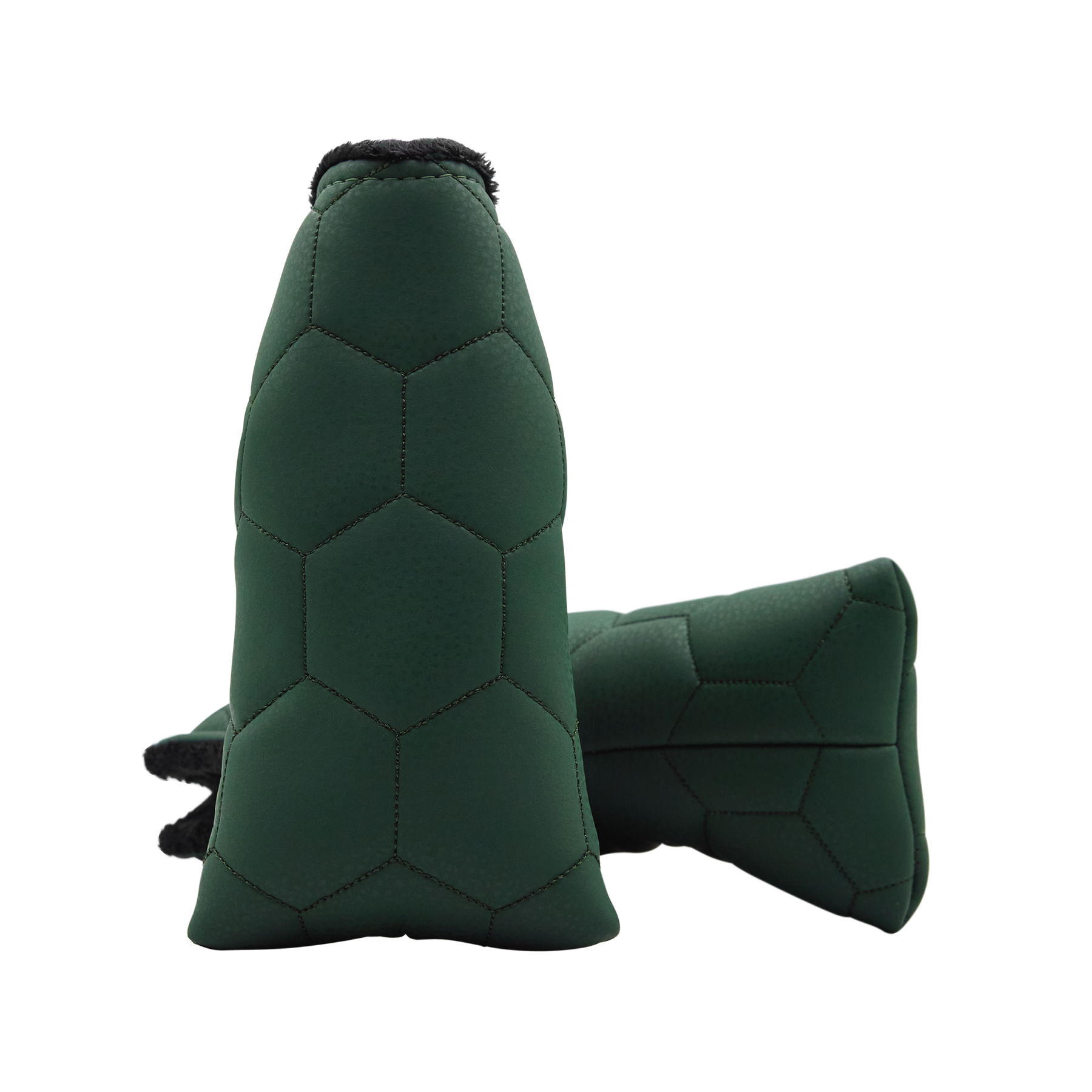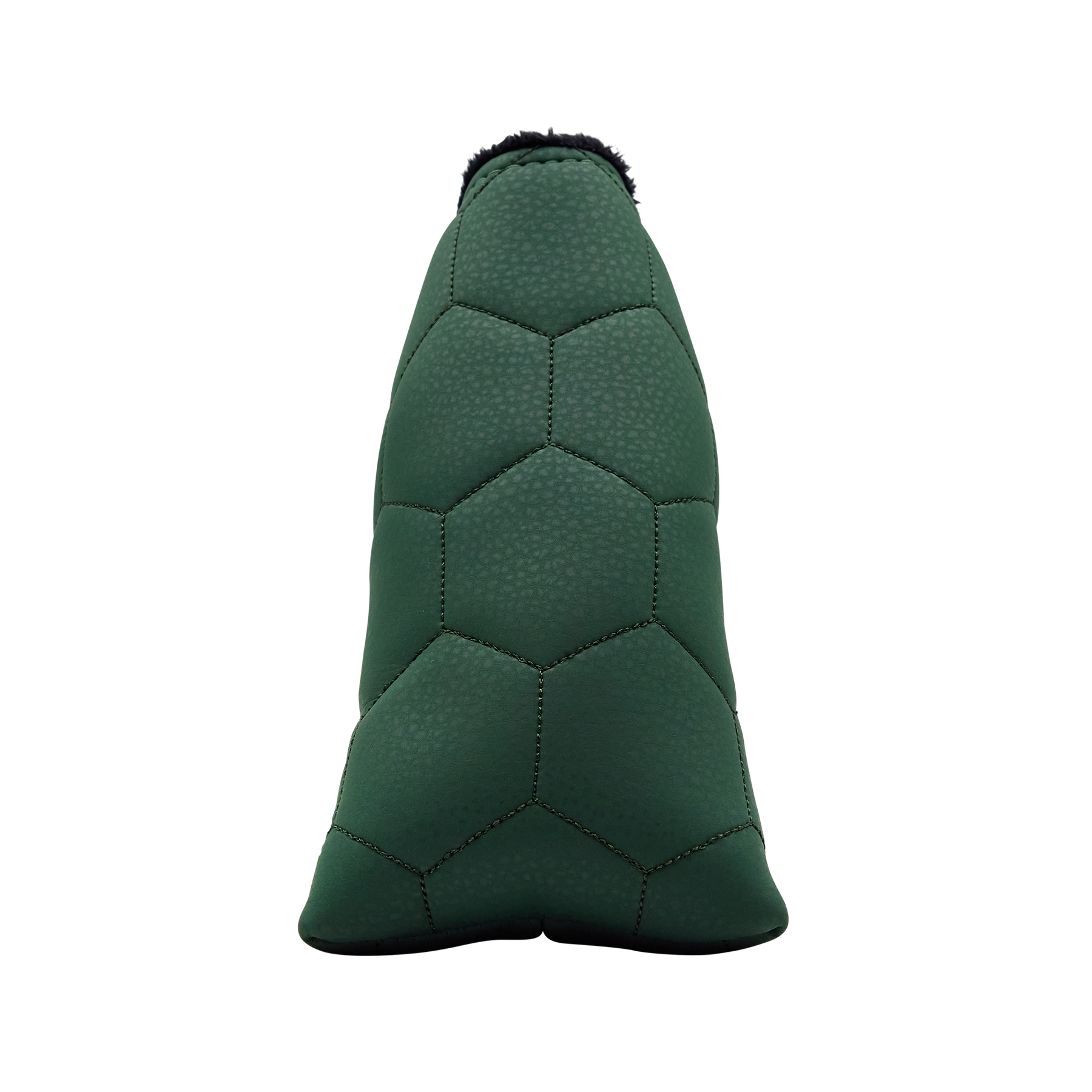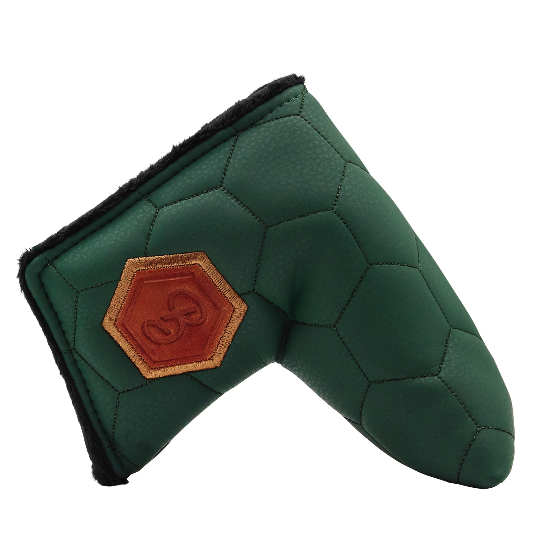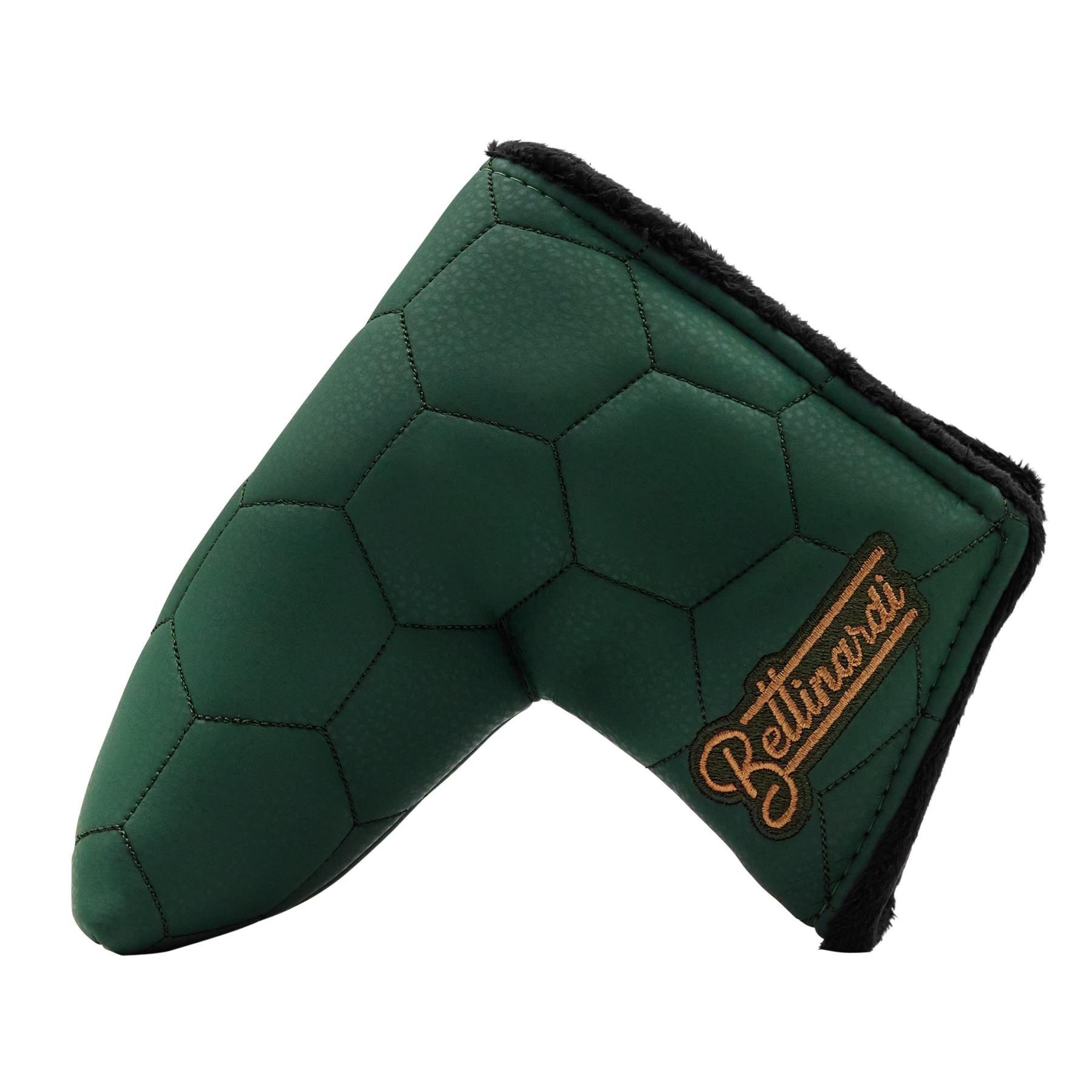 Designed for the golfer with an eye for subtle luxury, this Bettinardi Script Quilted Hex blade putter headcover showcases a refined green-on-green hexagon embroidered pattern throughout, with a Hex B Horween leather applique on one side and a tan-and-green embroidered Bettinardi script logo on the other. A plush black interior and secure magnetic closure complete this headcover, blending craftsmanship with classic Bettinardi style.