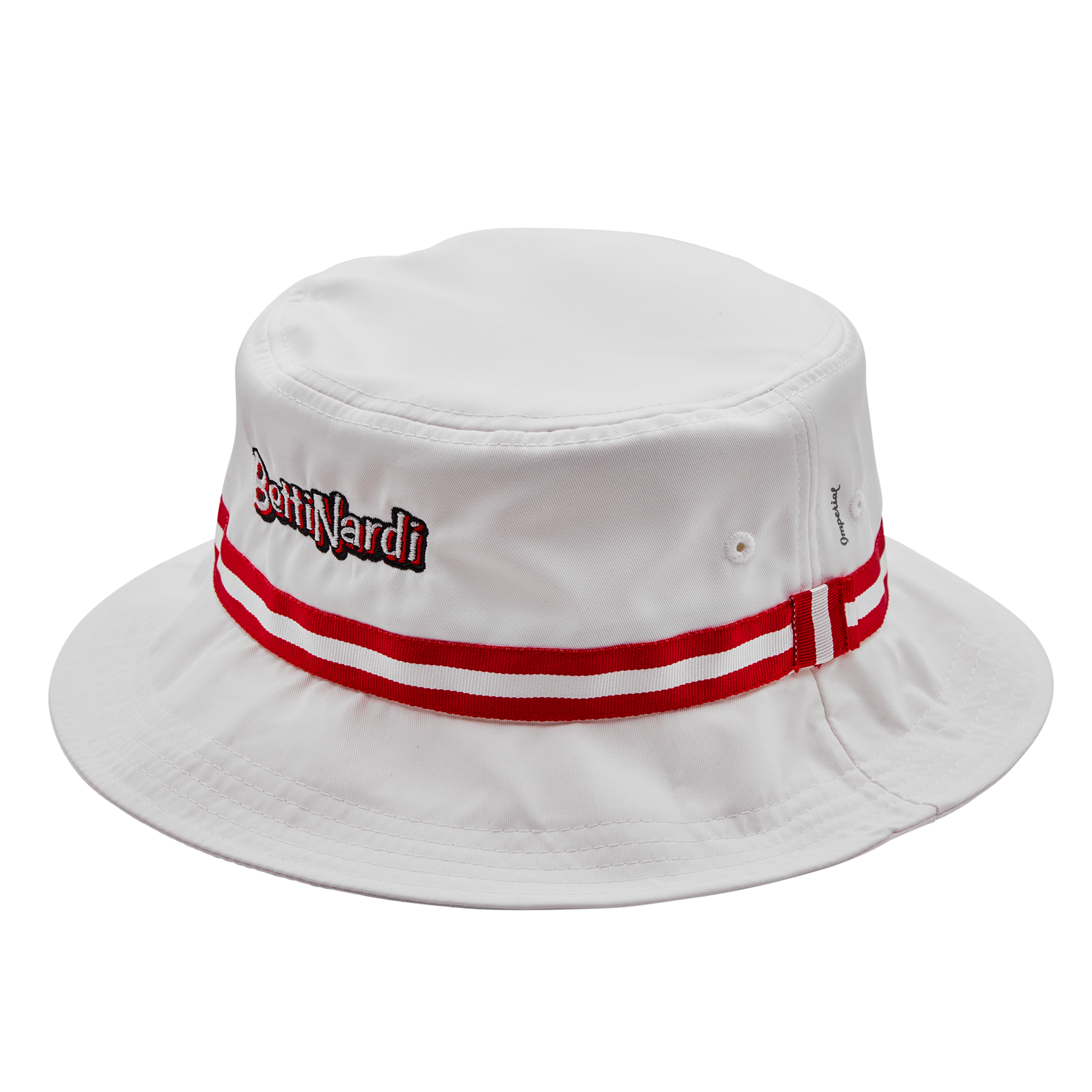 Perfect for a hot sunny day in the desert heat! Protect your eyes from harmful rays with this Party On!™ Bucket Hat. The Party On!™ Bettinardi wordmark is embroidered onto the front of this red-striped white hat, while the back features a Hex B logo. This is a must-have for any golfer or desert partier, or combination of both! Limited quantities are available. Limit 1 per person, good luck!