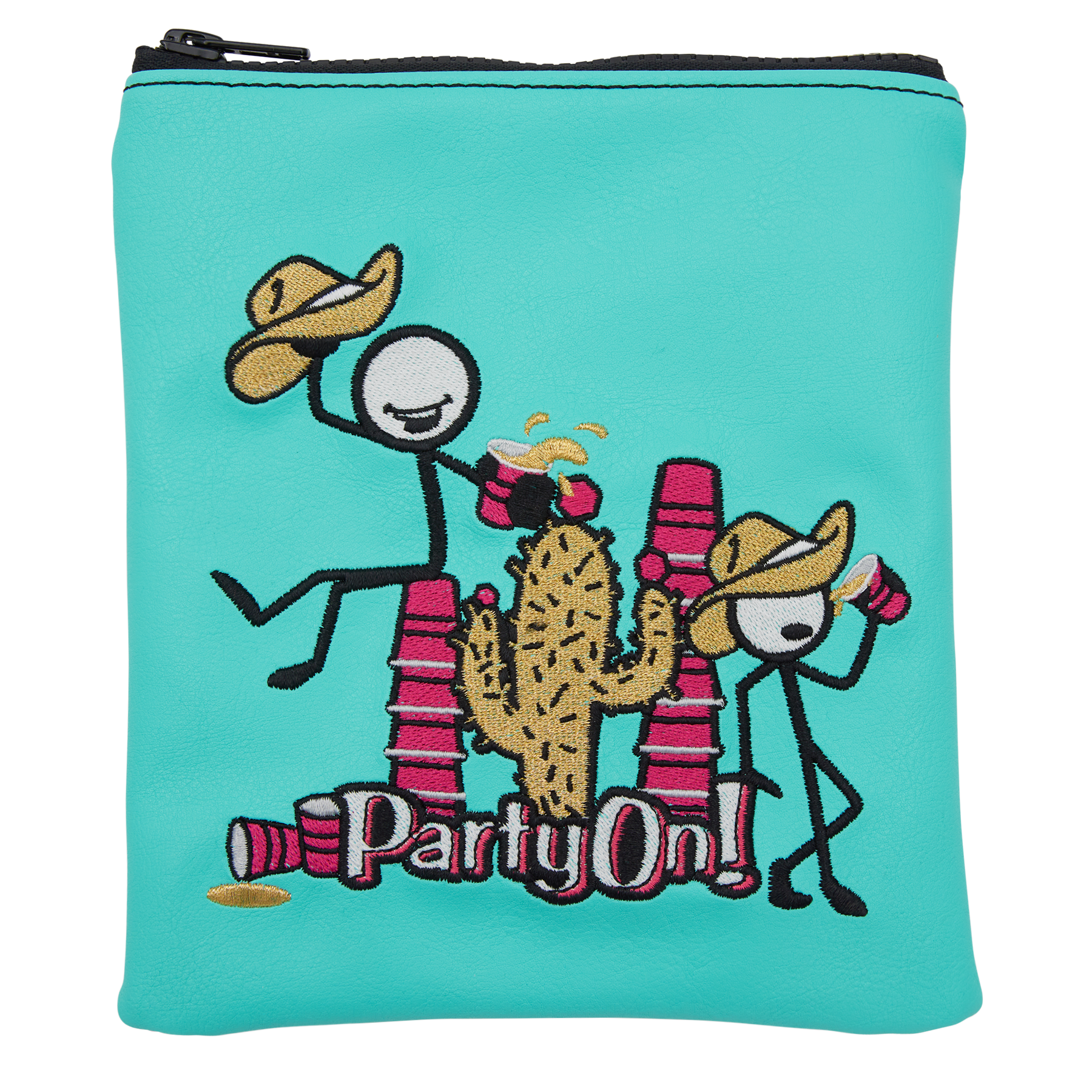 The Rabble Rousers are out to play under the blazing desert sun and there's no better way to cool down than with a refreshment! Designed on a dual colorway with a sea green base on the front and hot pink on the back, this Party On!™ valuables pouch is a must-have for keeping your essentials safe on and off the course. Limited quantities are available. Limit 1 per person! good luck!