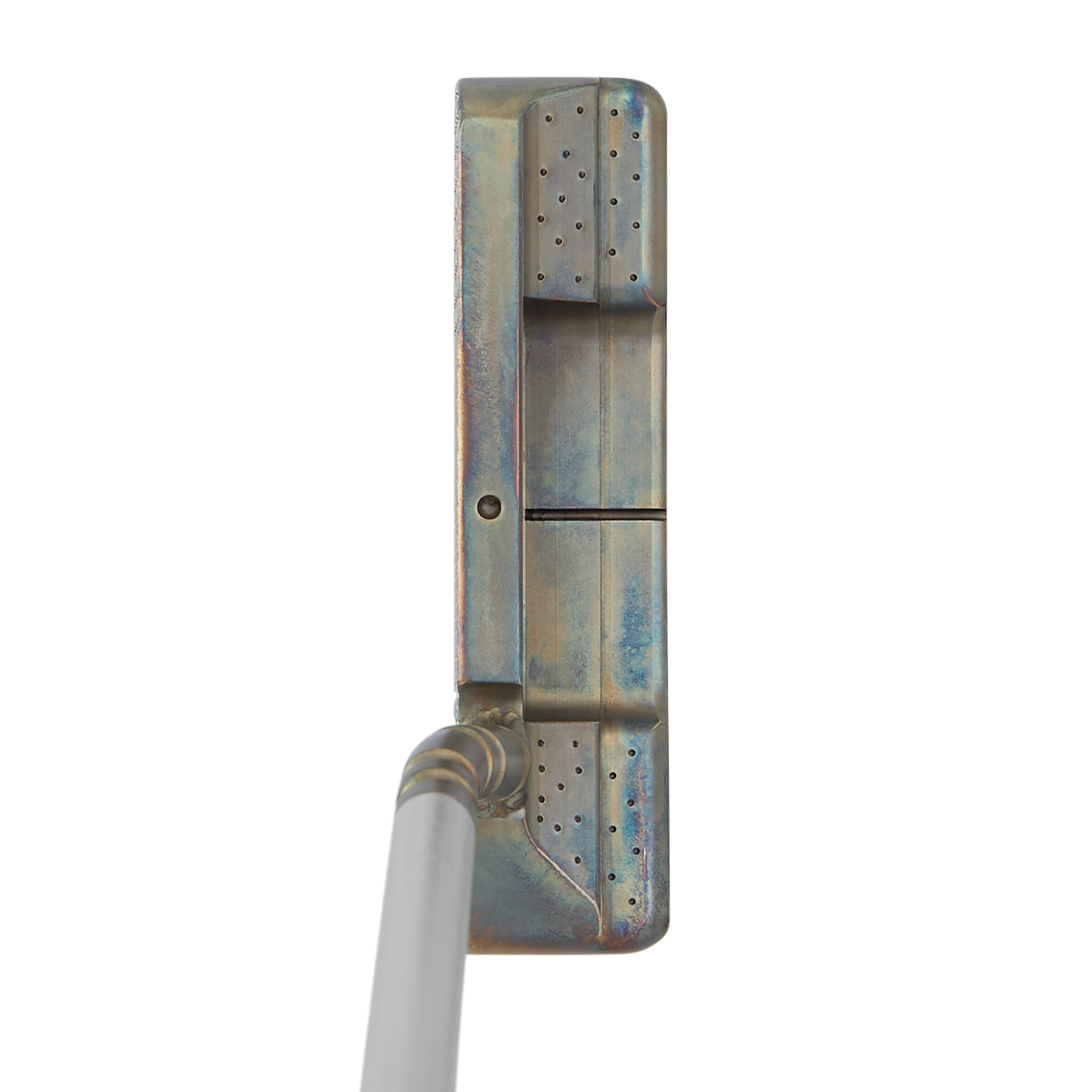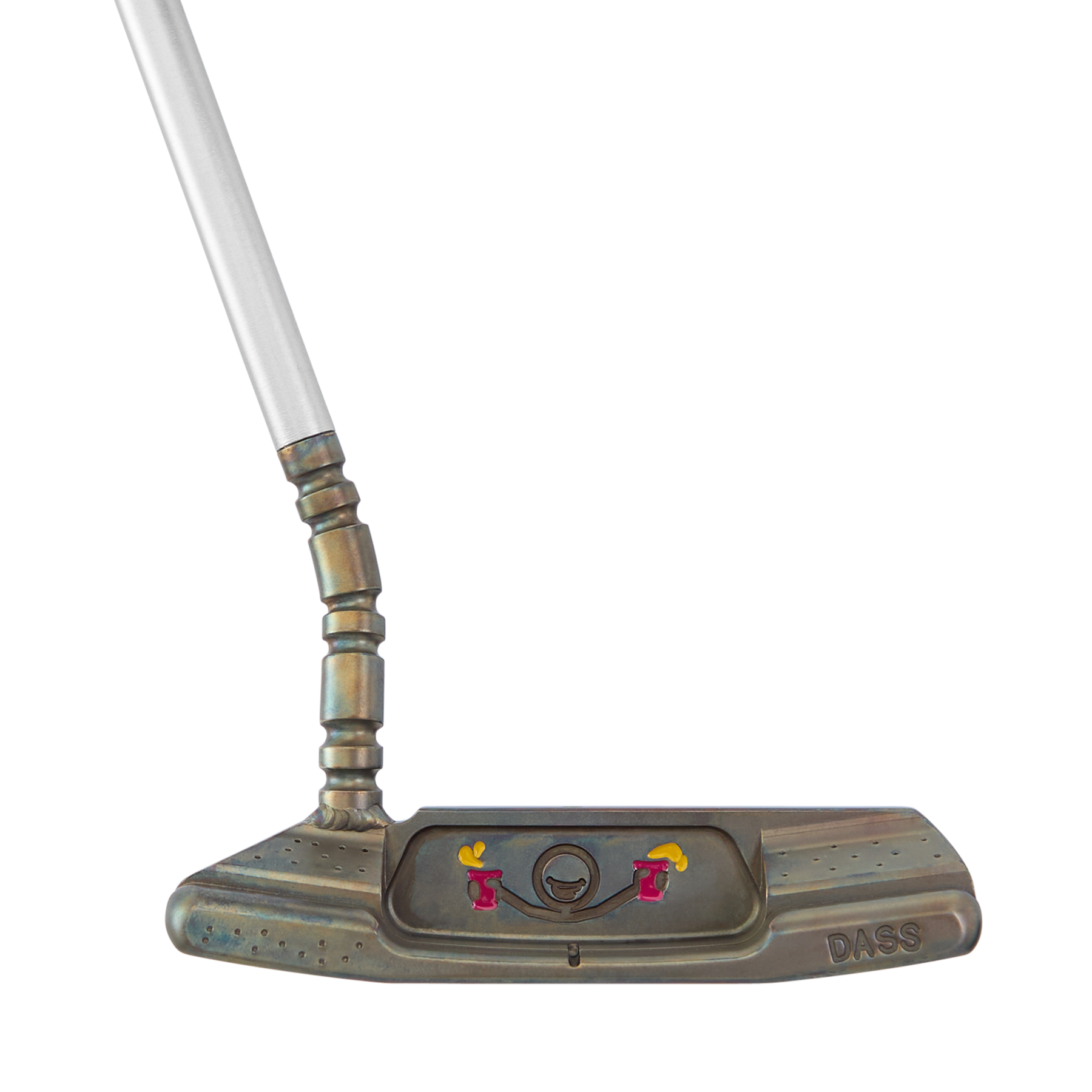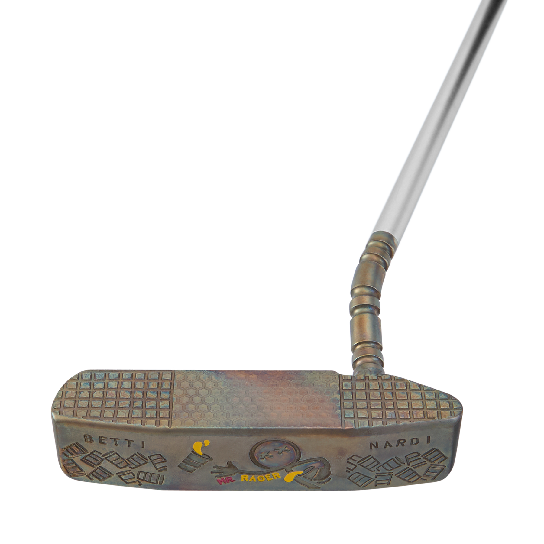 A 1-of-1 BB8 Tri, this Mr. Rager-themed putter is a HIVE-exclusive party you don't want to miss. This putter is precision-milled from DASS to 353 grams and completed in a beautiful Steel Patina finish with hand-stamped snow on the bumpers. Built with a welded gear neck, it is milled with a fancy grid over Micro Honeycomb™ face. In the pocket and sole are Mr. Rager engravings accented in pink and yellow paintfill. This putter boasts a single sight dot and sightline alignment to make lining up your rolls a breeze. Completed with a matte silver shaft, Bettinardi HIVE Yellow Standard Grip, and a 2026 Party On! Cup Mountain Headcover. Only 1 available, good luck!