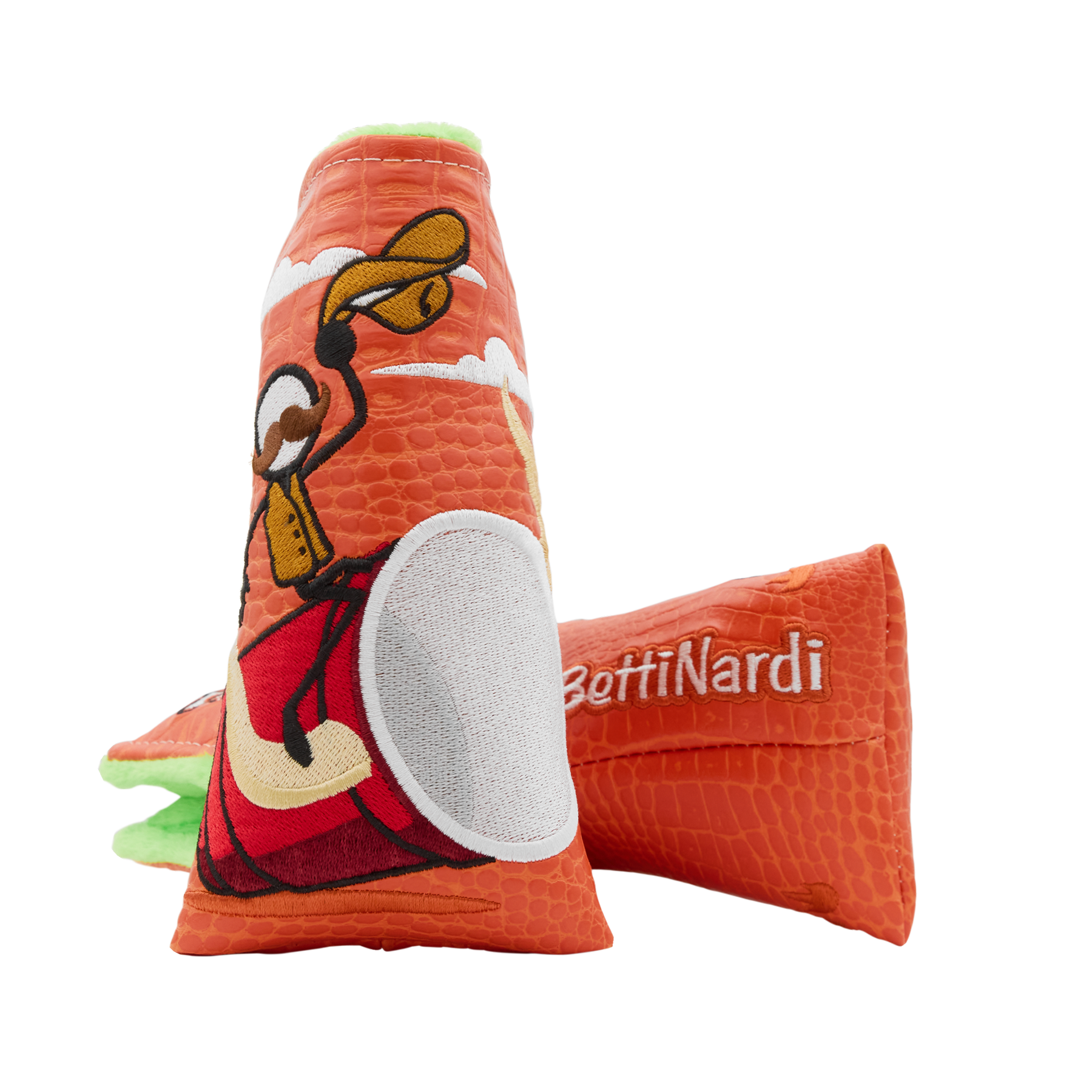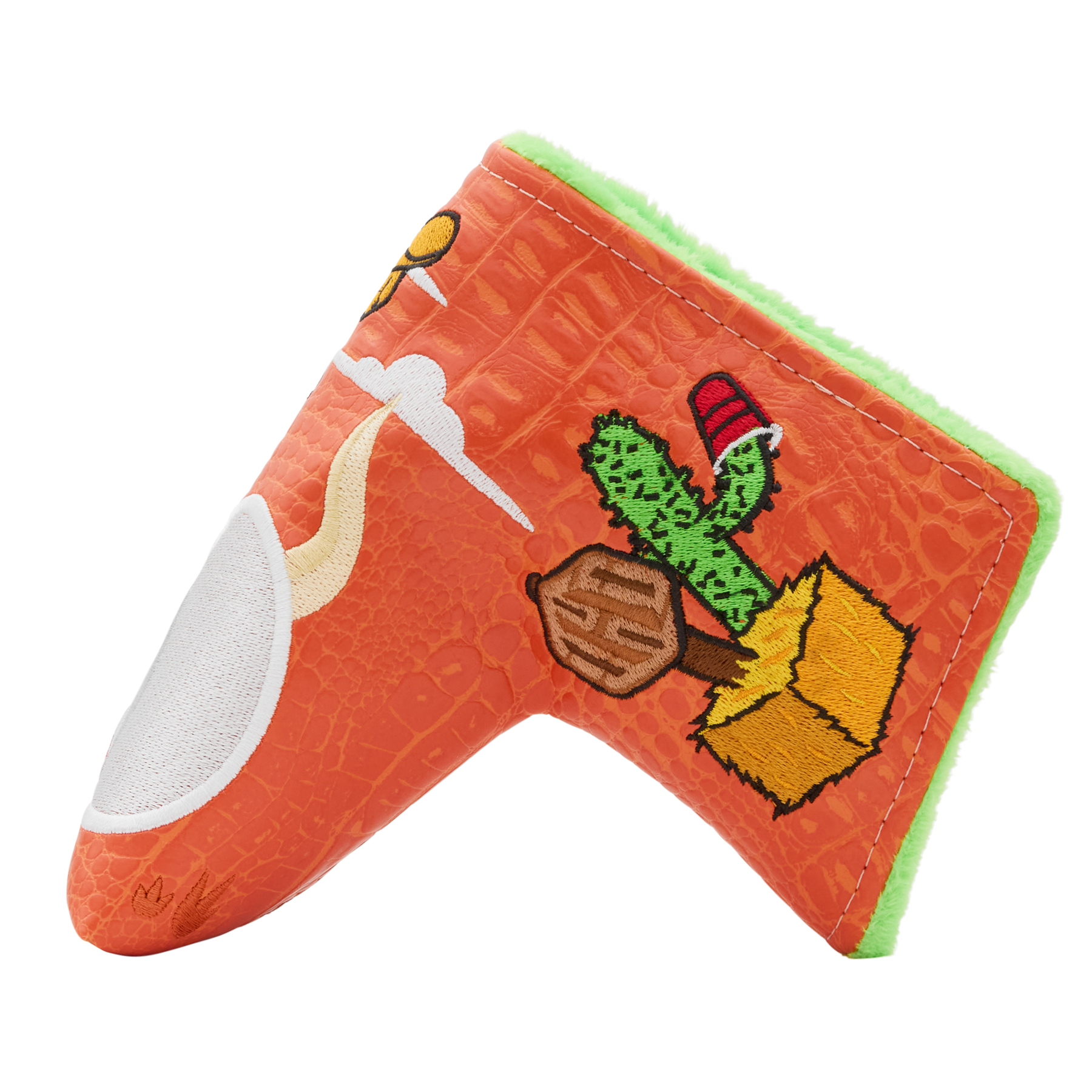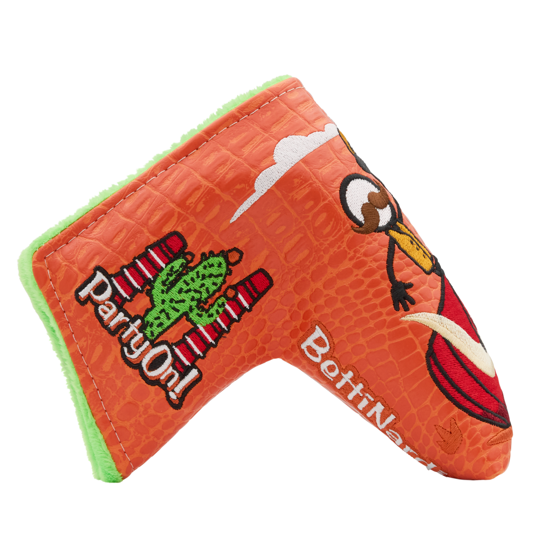 Yeehaw! This 1-of-1 welded twisty neck SS35 is the true life of the party. A HIVE exclusive, it's crafted from DASS to 362 grams and finished with Party On!™ green TPT. This putter features a Flymill face for a firm, yet responsive feel and boasts a diamond sight dot and single sightline alignment. On the sole, the engraved Rabble Rousers party on as chaos unfolds, while the pocket showcases a Bettinardi wordmark, all accented with white, red, orange, and yellow paintfill. Finished with a matte black shaft, Bettinardi HIVE Red Standard Grip, and a 2026 Party On!™ Yippie Ki-Yay Blade Putter Headcover. Only 1 available, good luck!