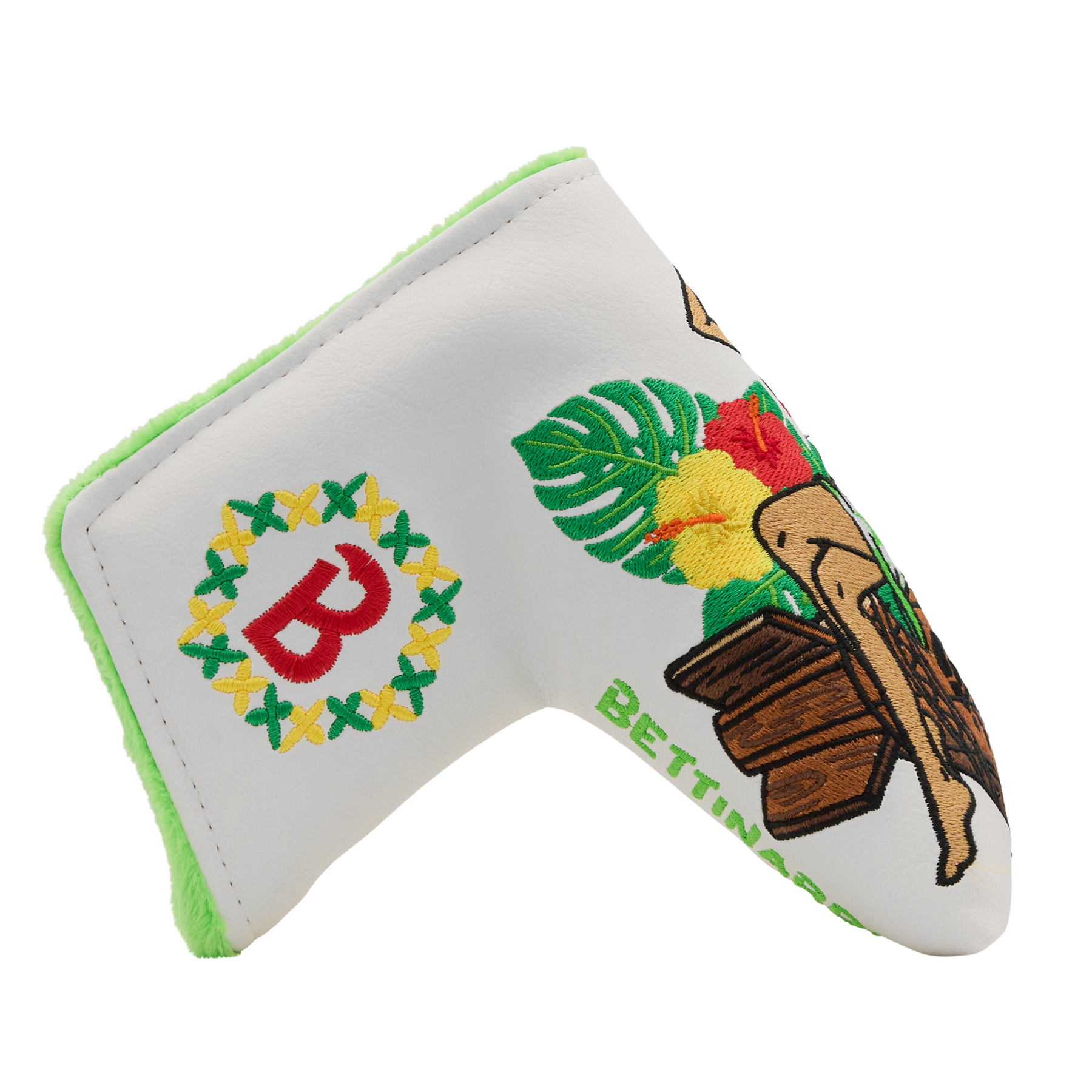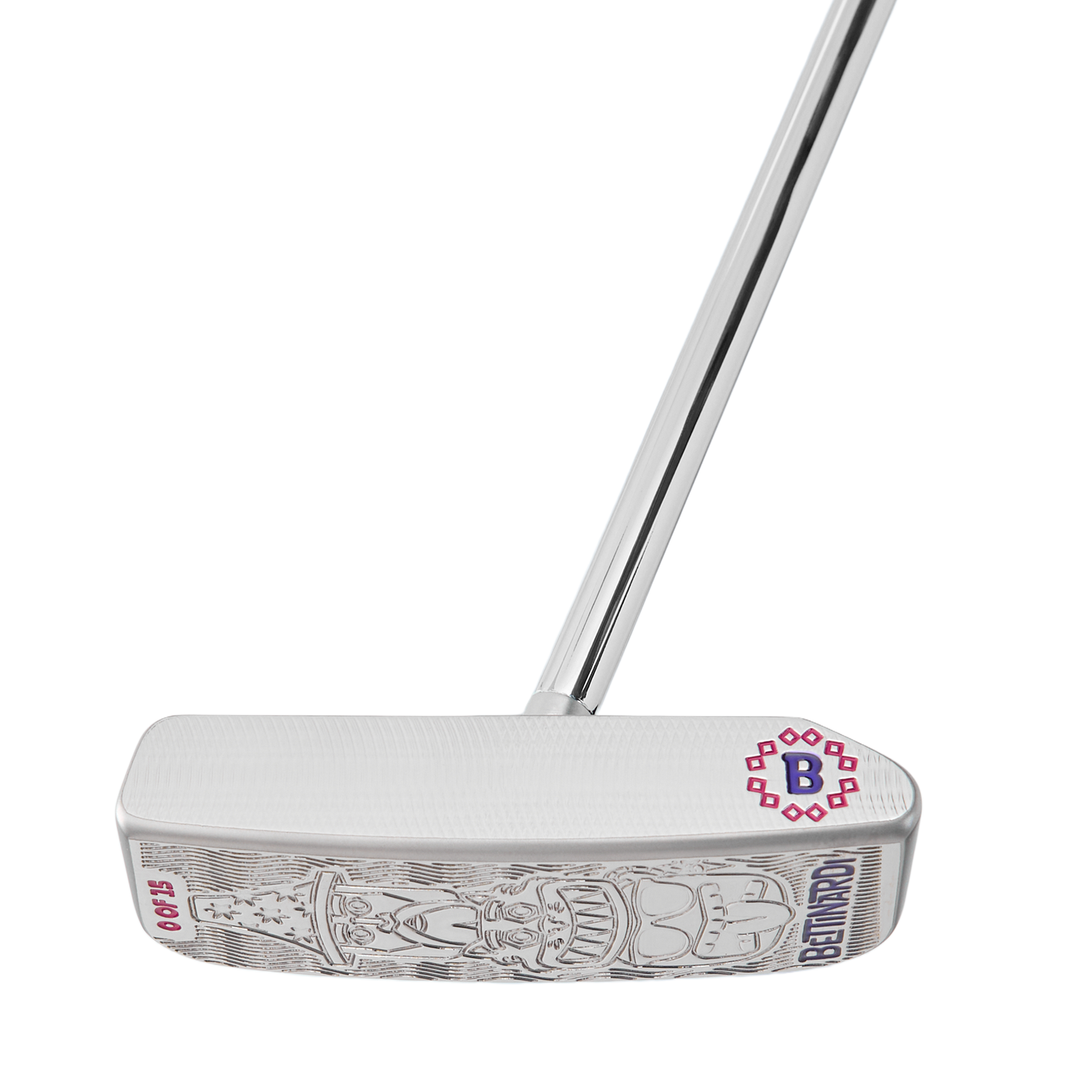 Bringing island influence to one of our signature Tour-proven shapes, this Aloha DASS SB1 is a true masterpiece, marked 0-of-15 and crafted from Double Aged Stainless Steel at our Tinley Park, IL facility. This SB1 features a stunning Tour Blast finish that highlights every contour, and a Tiki Totem Multi Icon engraving on its high-polished sole to add character. The high-polished face is finished with a Flymill milling and a Tiki Hex B on the heel, emphasized by pink and purple paintfills. In the pocket, an anodized 6061 Aluminum pocket insert reading "ALOHA DASS" brings a pattern of vibrant pink and purple Hibiscus blooms to the piece. Weighing in at 360 grams, this putter displays a "T" alignment and is finished with a Bettinardi HIVE Purple Standard Grip, chrome shaft, and an FAI Lei'd Back Betti Bomber Blade Putter Headcover. Only 1 available, good luck!