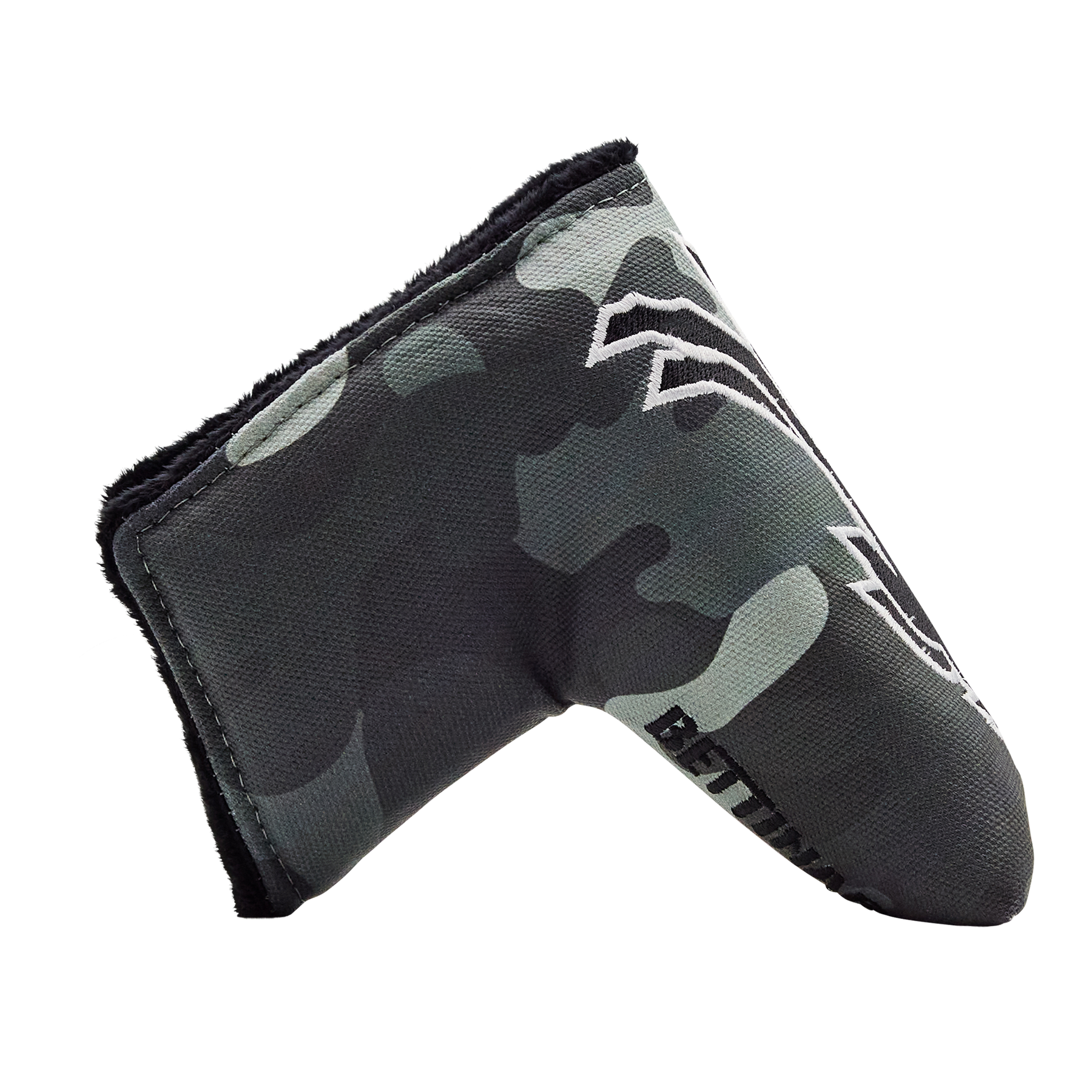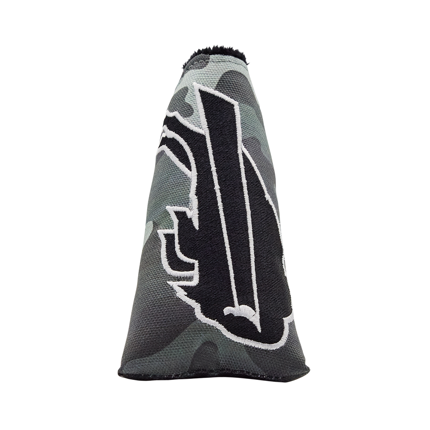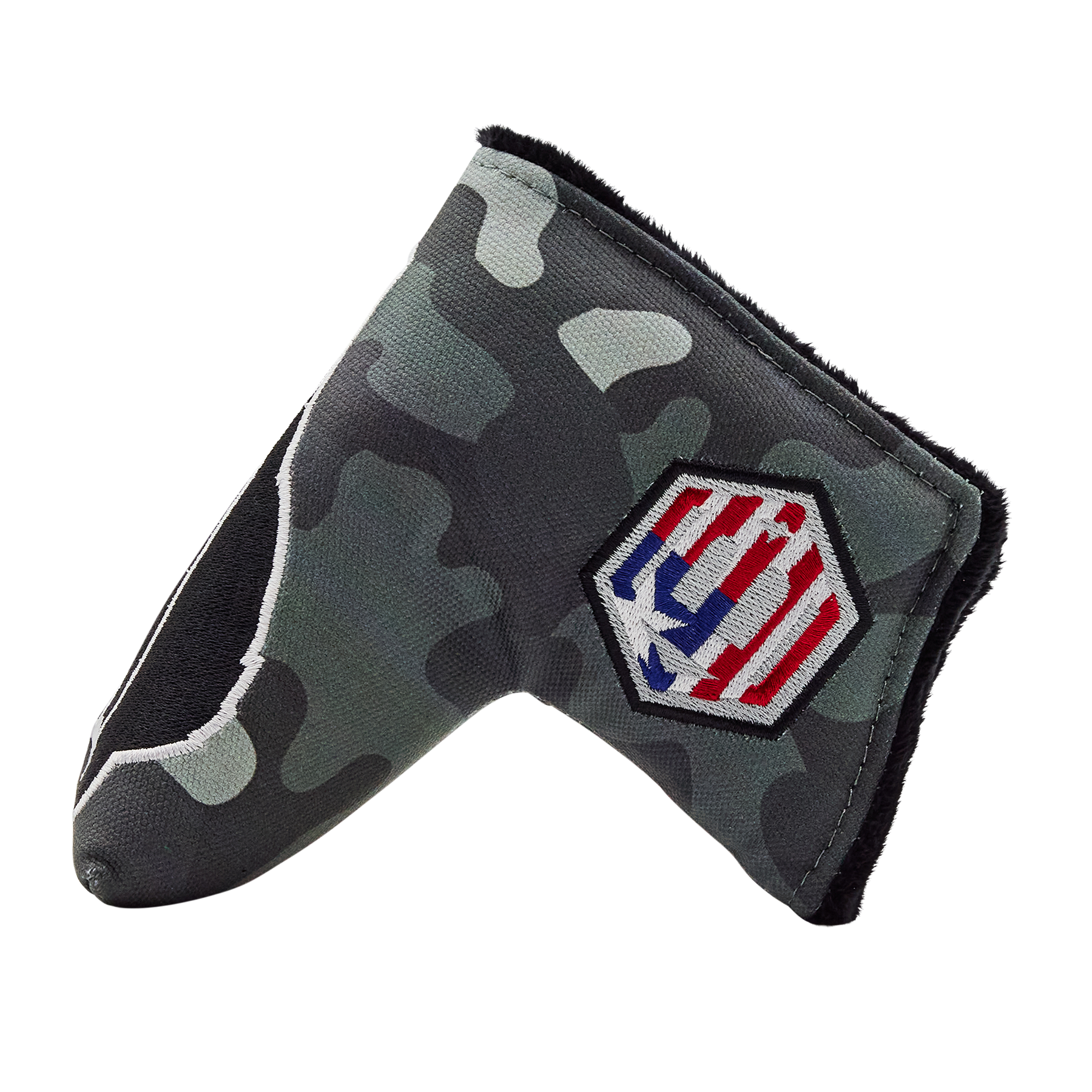 Show your teams loyalty with the Buffalo Bills Camo Blade Putter Headcover! Designed on a dark gray camo canvas featuring the Bills logo on front and American Hex B on the side. Finished with a black plush interior and magnetic closure. Limit 1 per person. Good luck!