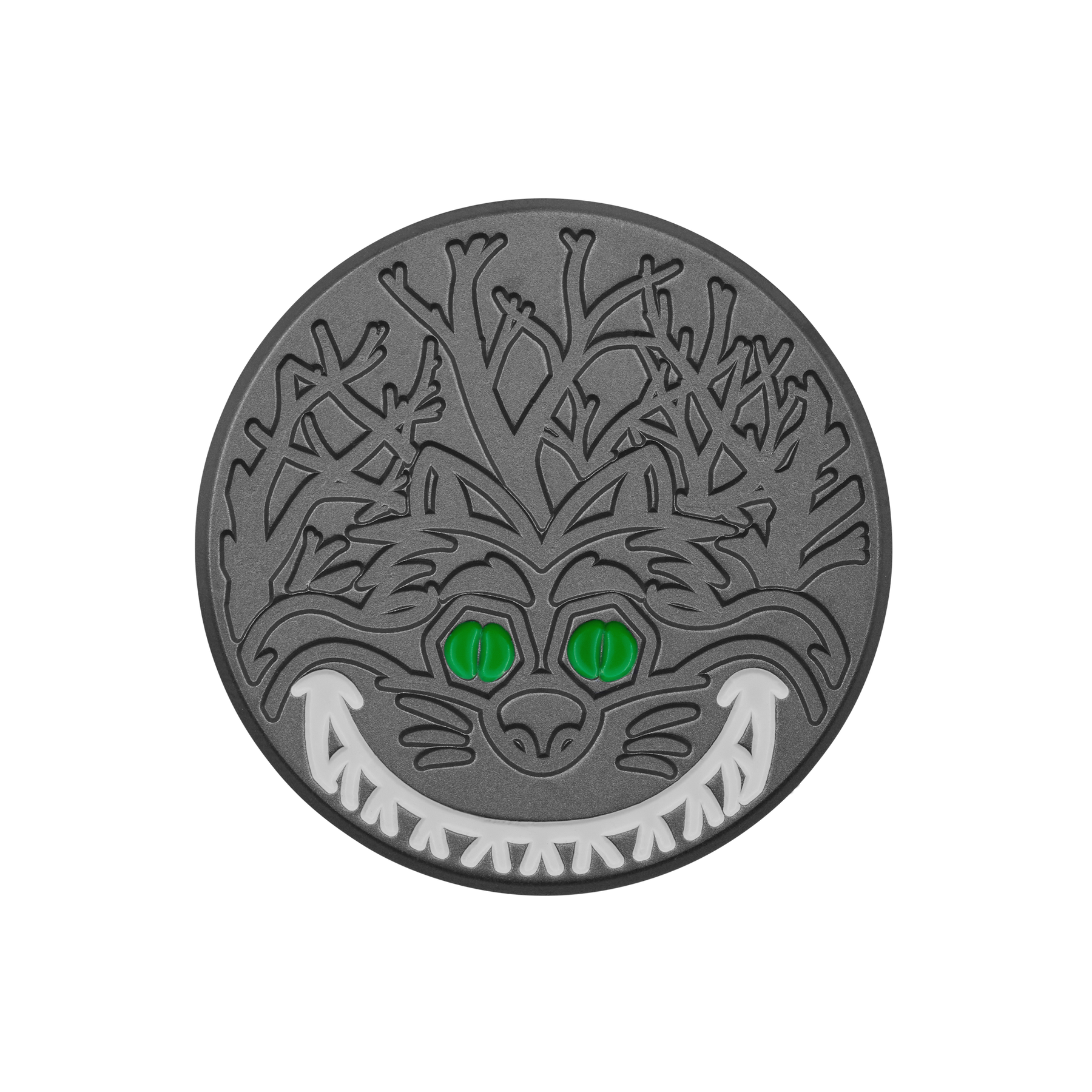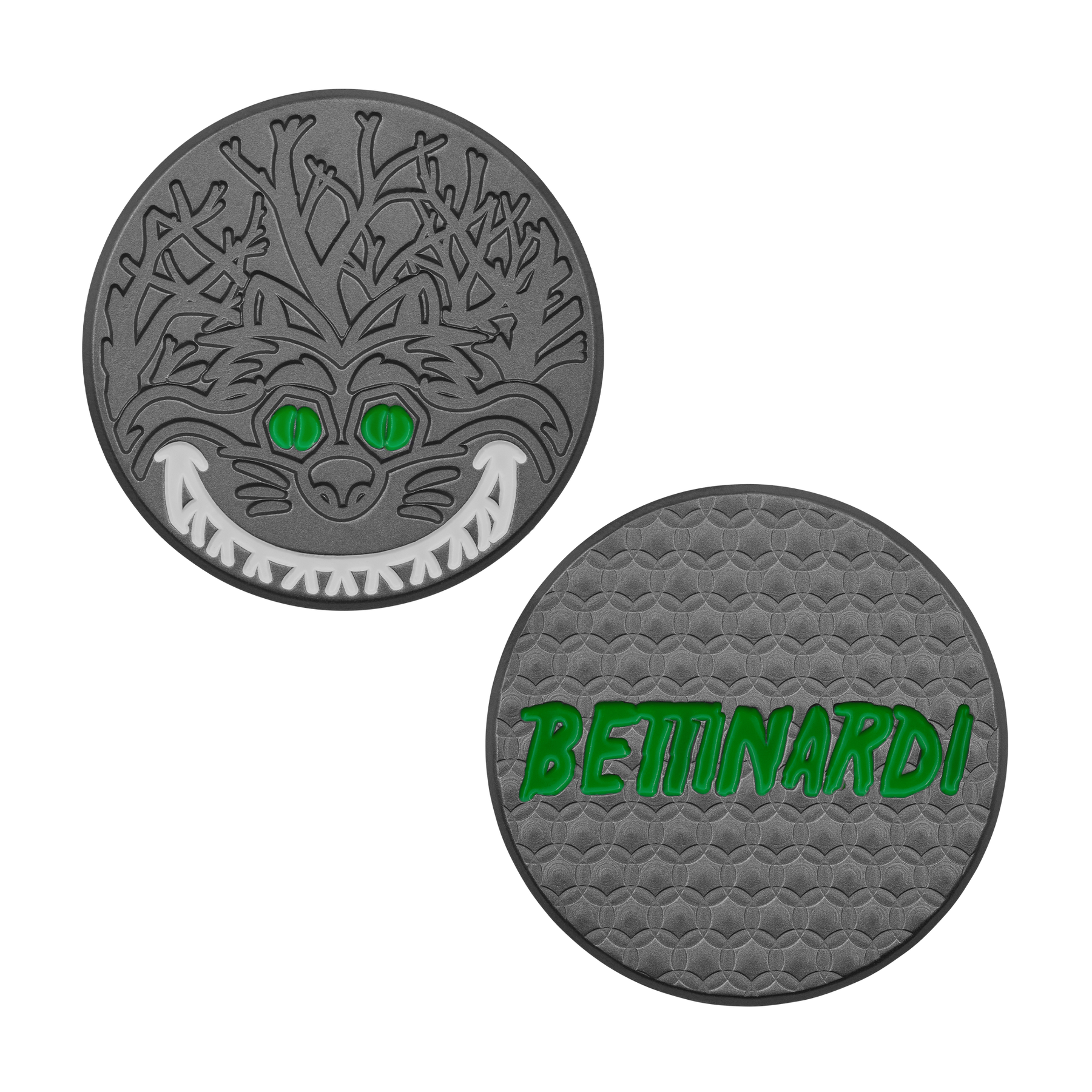 From the depths of a dark forest, the Fat Cat gives a chilling grin on this HIVE-exclusive ball marker. Finished in dark-as-night Black Ox with pops of green and white paintfill, this ball marker also features a horror-film inspired Bettinardi wordmark over Micro Honeycomb™ milling on the reverse. Limited quantities are available. Limit 1 per person, good luck!
