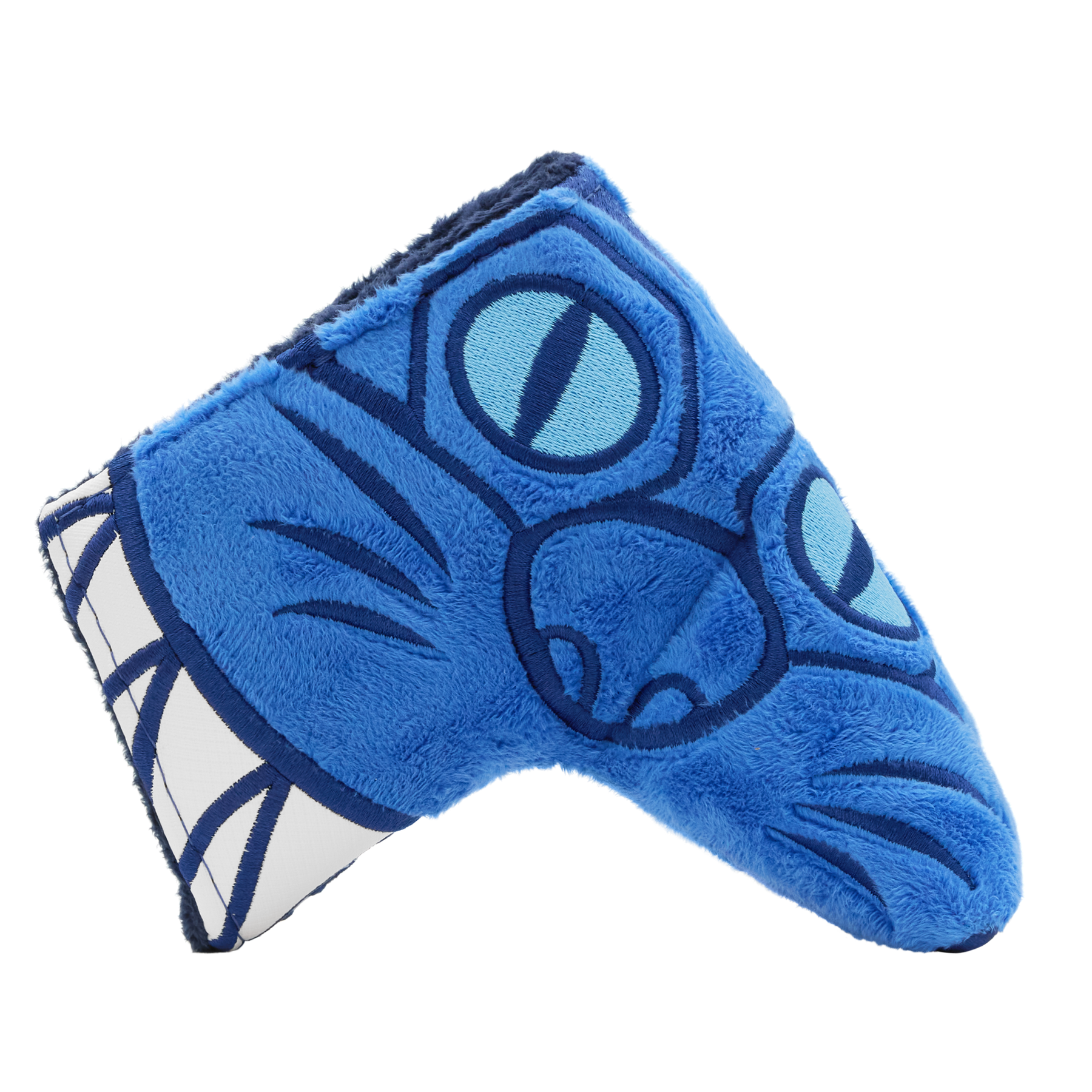 This furry Fat Cat has now entered the twilight zone. This HIVE-exclusive FAI (First Article of Inspection) headcover features the all-blue furry Fat Cat grinning in front of a twilight forest background. The side panel features a horror film-inspired Bettinardi wordmark embroidered in icy blue. Finished with a midnight navy fur interior and magnetic closure, this headcover might just be enough to send a chill down the spines of your competitors on the course. Only 1 available, good luck!