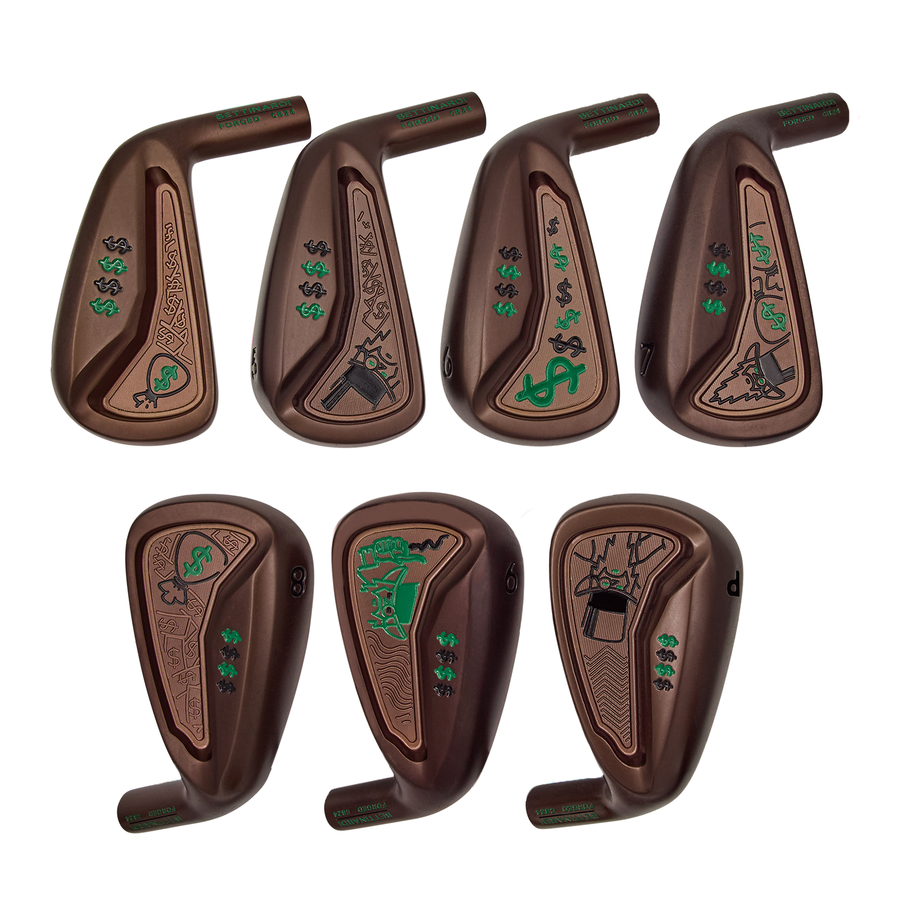 This Oil Rubbed Bronze PVD CB24 set features our Gangster Wizard with his pipe, and of course, his raining moneybags, accented in black and green paintfills. Crafted for the ultimate playability, the CB24 irons combine modern engineering with classic design. For those who demand both accuracy and distance, these irons seamlessly blend a traditional forged feel with innovative technology. Characterized by an optimal progressive cavity and perimeter weighting for maximum MOI, the CB24 irons strike a perfect balance of distance and forgiveness. These irons will ship with our True Temper DG Mid 100 S shaft and black Golf Pride Tour Velvet grip at our standard length, loft, and lie. Only one set available. Please reach out to thehive@bettinardi.com for any changes. Best of luck!
