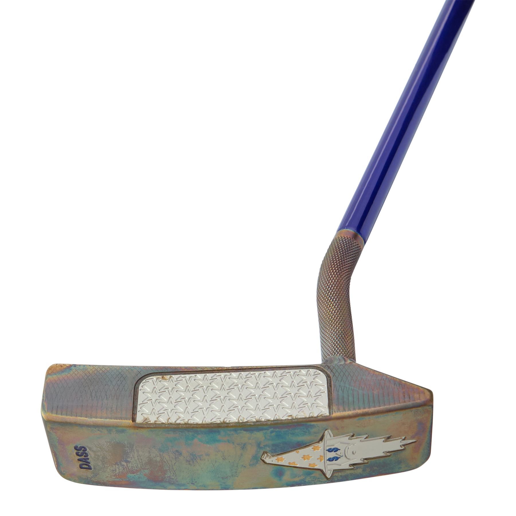Exclusive to THE HIVE™, this 3 Step jam was crafted from DASS to 350 grams and given a Fancy F.I.T. Over Flymill face milling. It comes complete with a Steel Patina finish, Money Eyes Wizard engraving on the sole, and blue, purple, and gold paintfills. This putter is paired with a blue shaft, Blue Sour Face Wizard Blade Putter Headcover, and a Lamkin Crossline 360 Cord Grip in blue and orange. Only 1 available, Good luck!