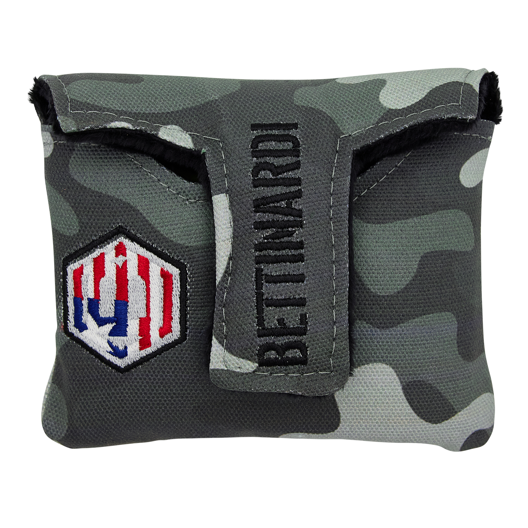 Show your teams loyalty with the New England Patriots Camo Mallet Putter Headcover! Designed on a dark gray camo canvas featuring the Patriots logo on front and American Hex B on the back. Finished with a black plush interior and magnetic closure. Limit 1 per person. Good luck!