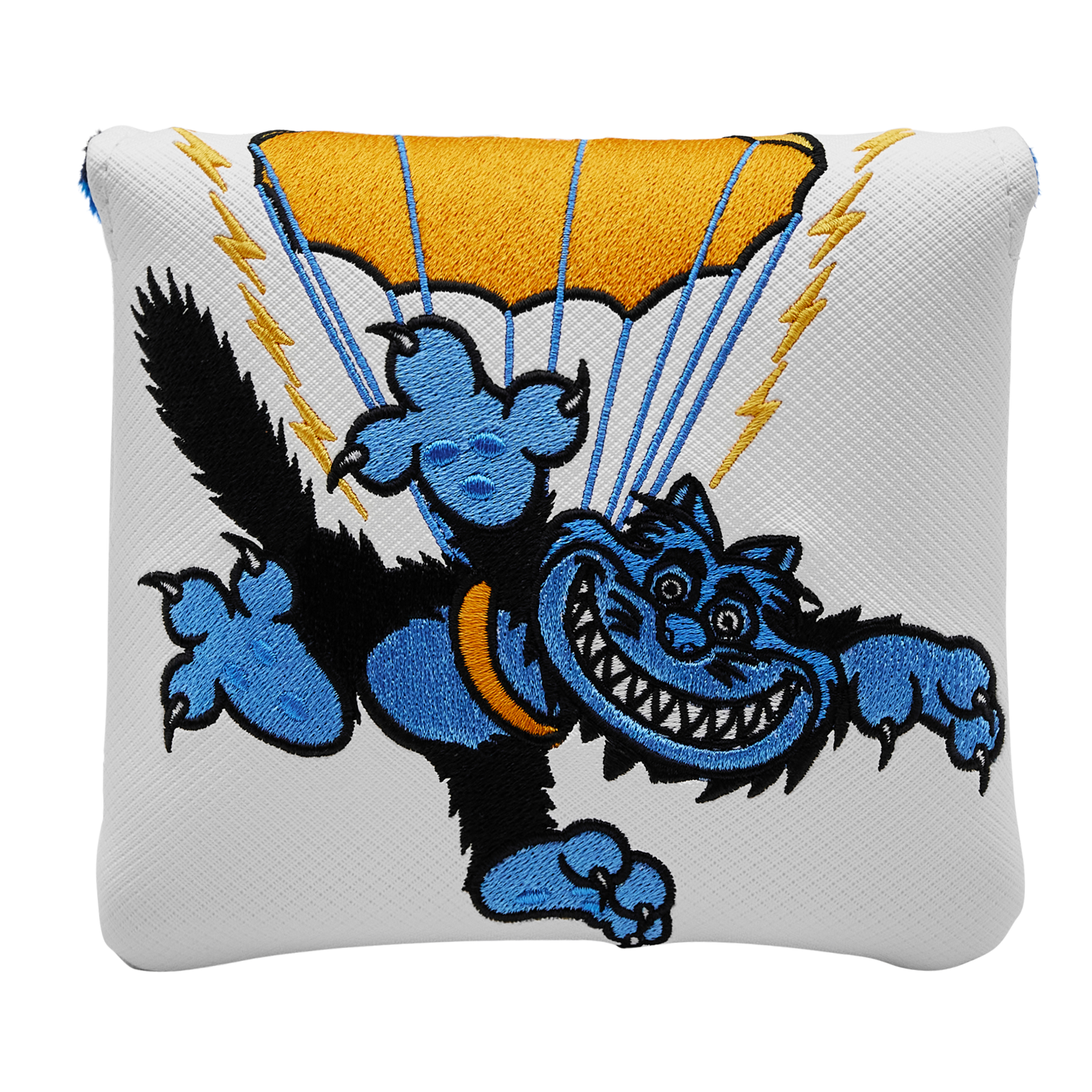 Dropping into action! The Paratrooper Cat has officially deployed and is descending toward his landing zone. This mallet putter headcover features a white base with our Hex B on back and is finished with a digital blue camo fur interior. Limit 1 per person. Good luck!
