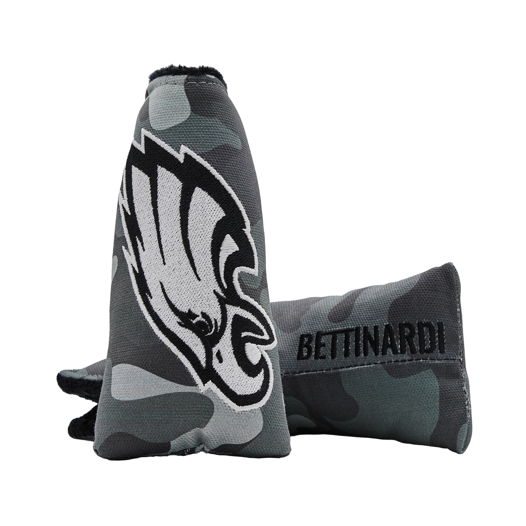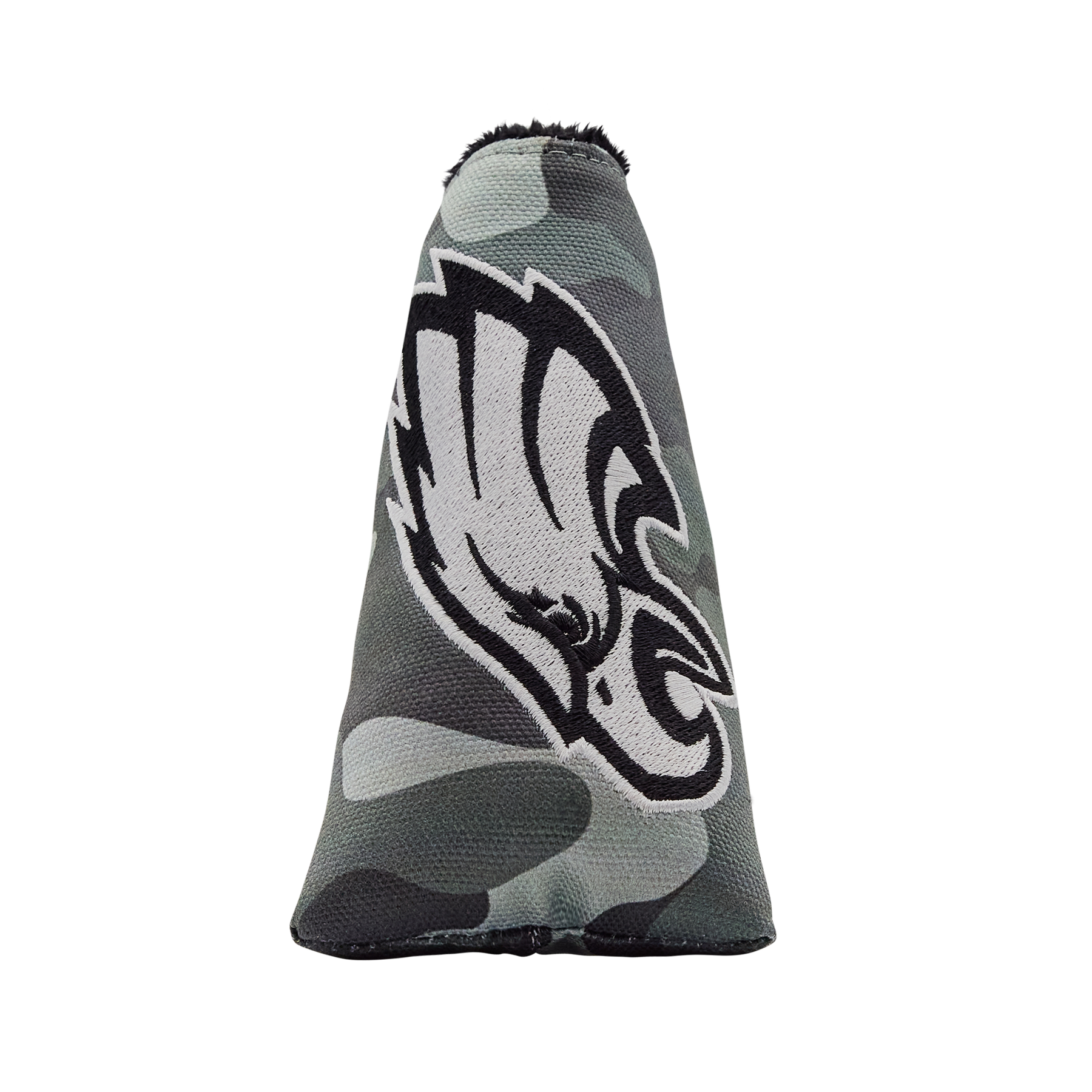 Show your teams loyalty with the Philadelphia Eagles Camo Blade Putter Headcover! Designed on a dark gray camo canvas featuring the Eagles logo on front and American Hex B on the side. Finished with a black plush interior and magnetic closure. Limit 1 per person. Good luck!