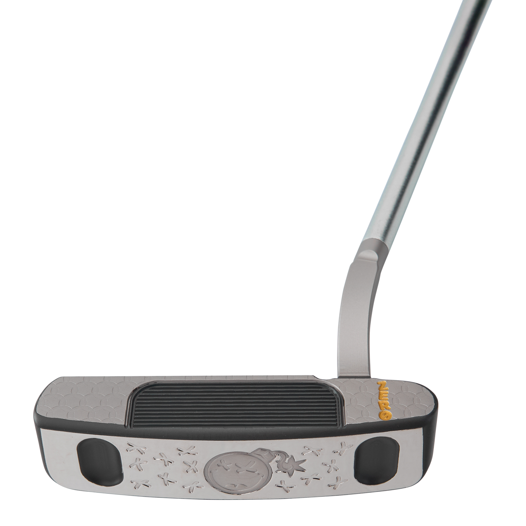 This HIVE-exclusive BB0 is truly a work of art. Precision-milled from DASS, this distinct putter features a two-tone Tour Blast and Black Ox finish with a Micro Honeycomb™ copper pocket. The ported sole displays an engraved Poison Bomb with dancing Xs. Complete with a copper sight dot and F.I.T Face milling, this putter also comes with a Blackout Tie Dye Peace Eyes Bomb Blade Putter Headcover and a Sunglasses Bomb Winn AVS Midsize Pistol grip. Only 1 available, Good luck!