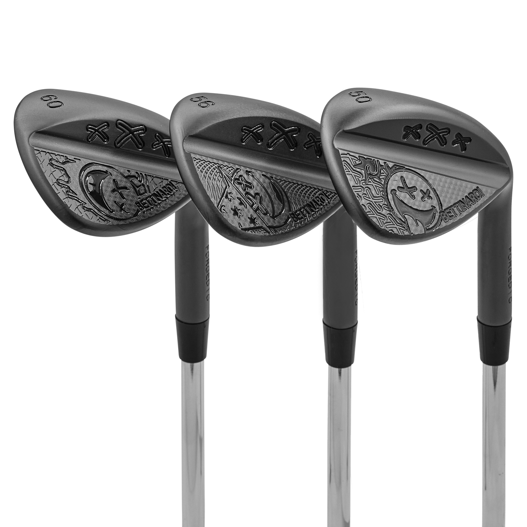 Black Friday Hive Only! These HLX 6.0 wedges feature our many faces of the Poison Bomb. Showcased in our Black Rainbow PVD finish with black paint fills, this C grind wedge set includes 50°, 56°, and 60° lofts.