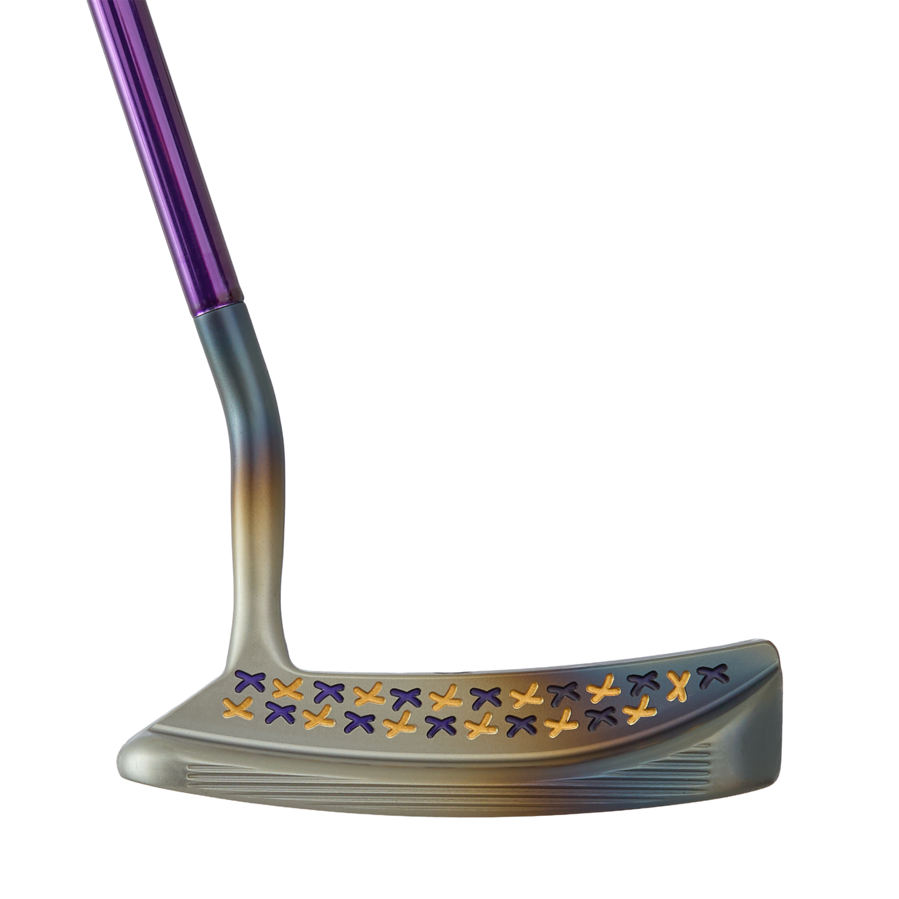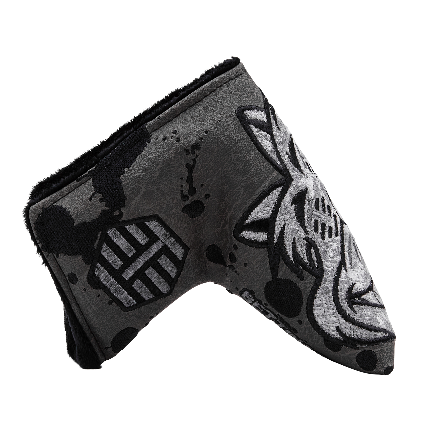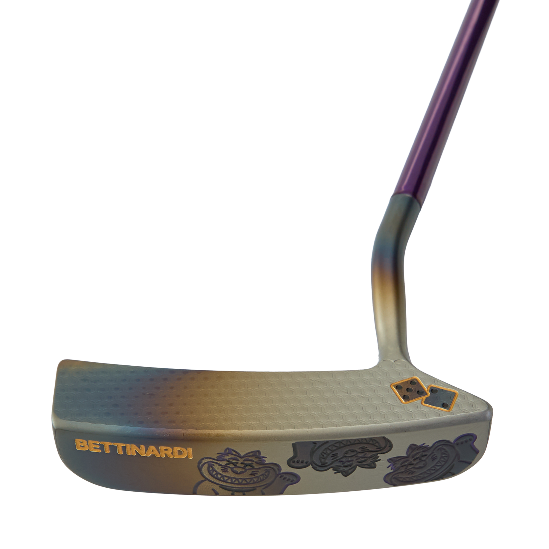 HIVE only! This Fred Couples Blade is precision milled from Soft Carbon Steel to 352-grams and features a torched gradient finish. This FCB is a true classic, engraved with our Poison Lucky Cat on the sole and showcases a full Micro Honeycomb™ face milling. This putter comes complete with a purple shaft and paired with a T-Hive eyes fat cat blade putter headcover and a black Hive perforated leather Gripmaster grip. Only 1 available. Good luck!