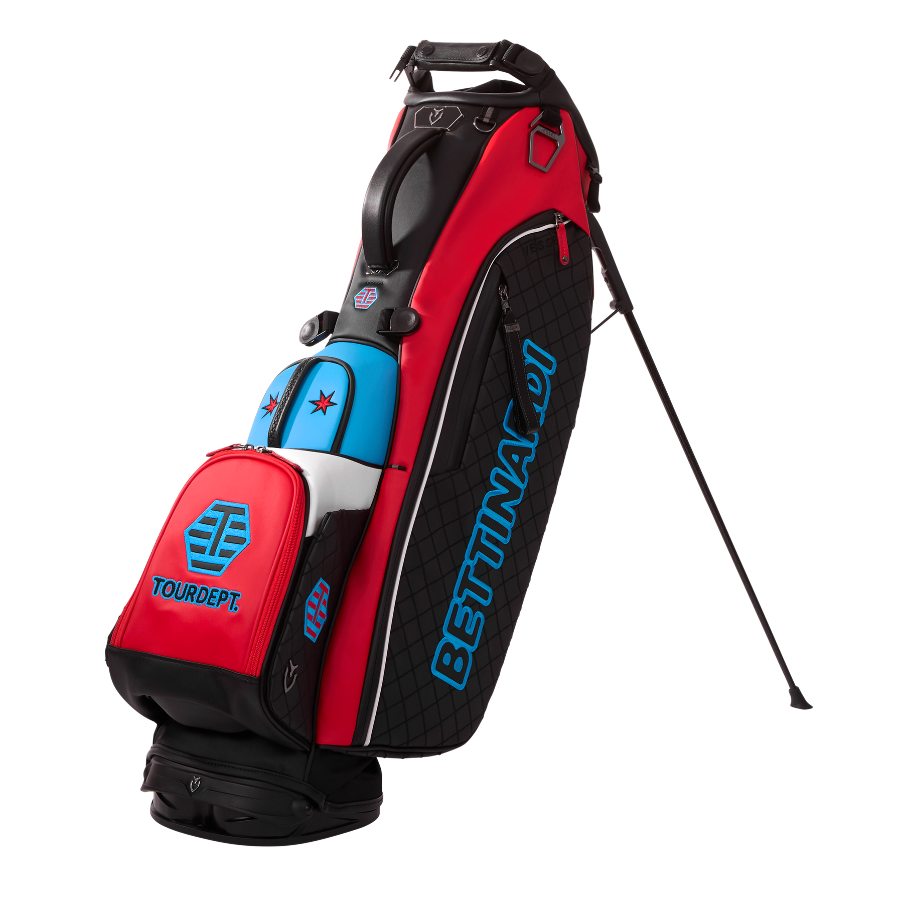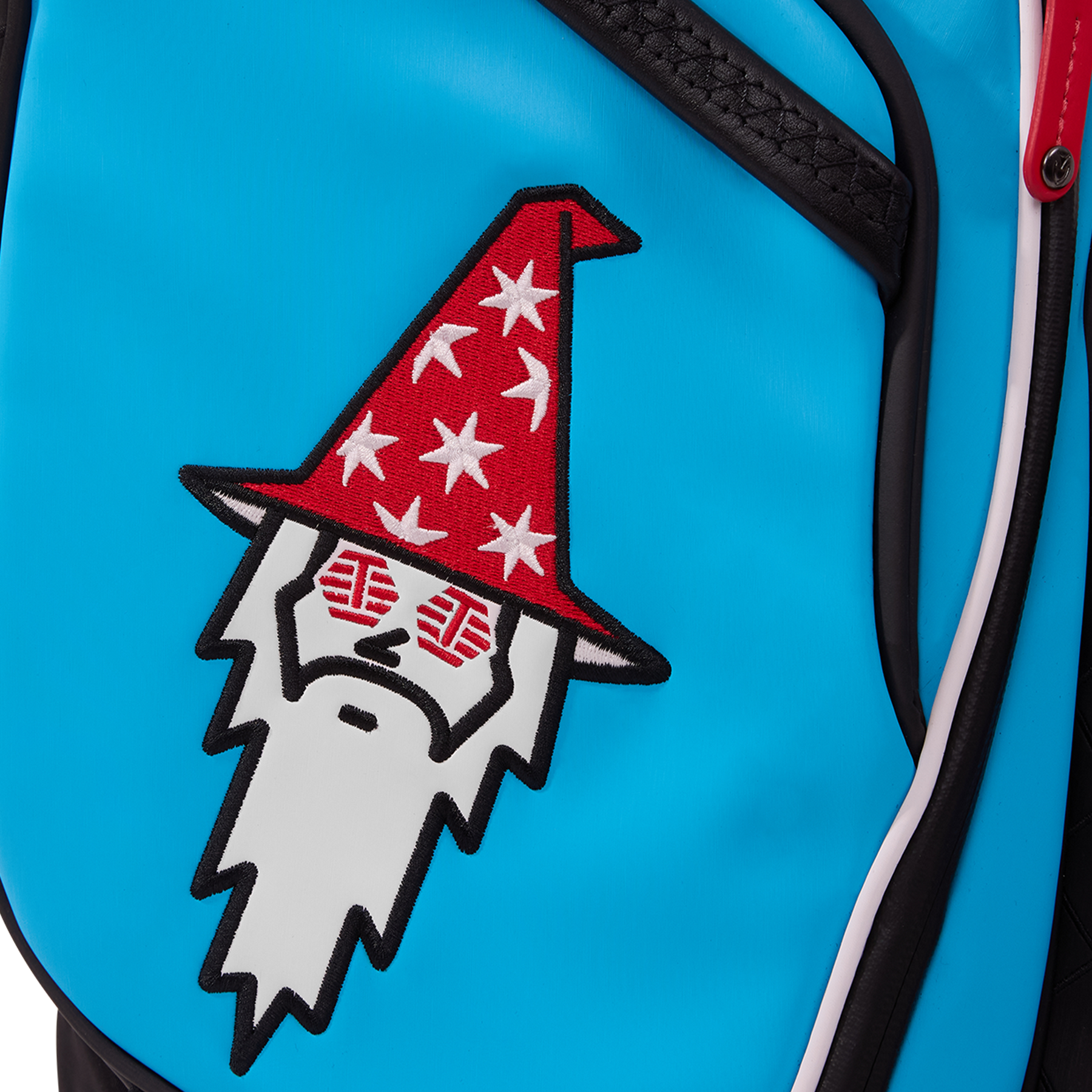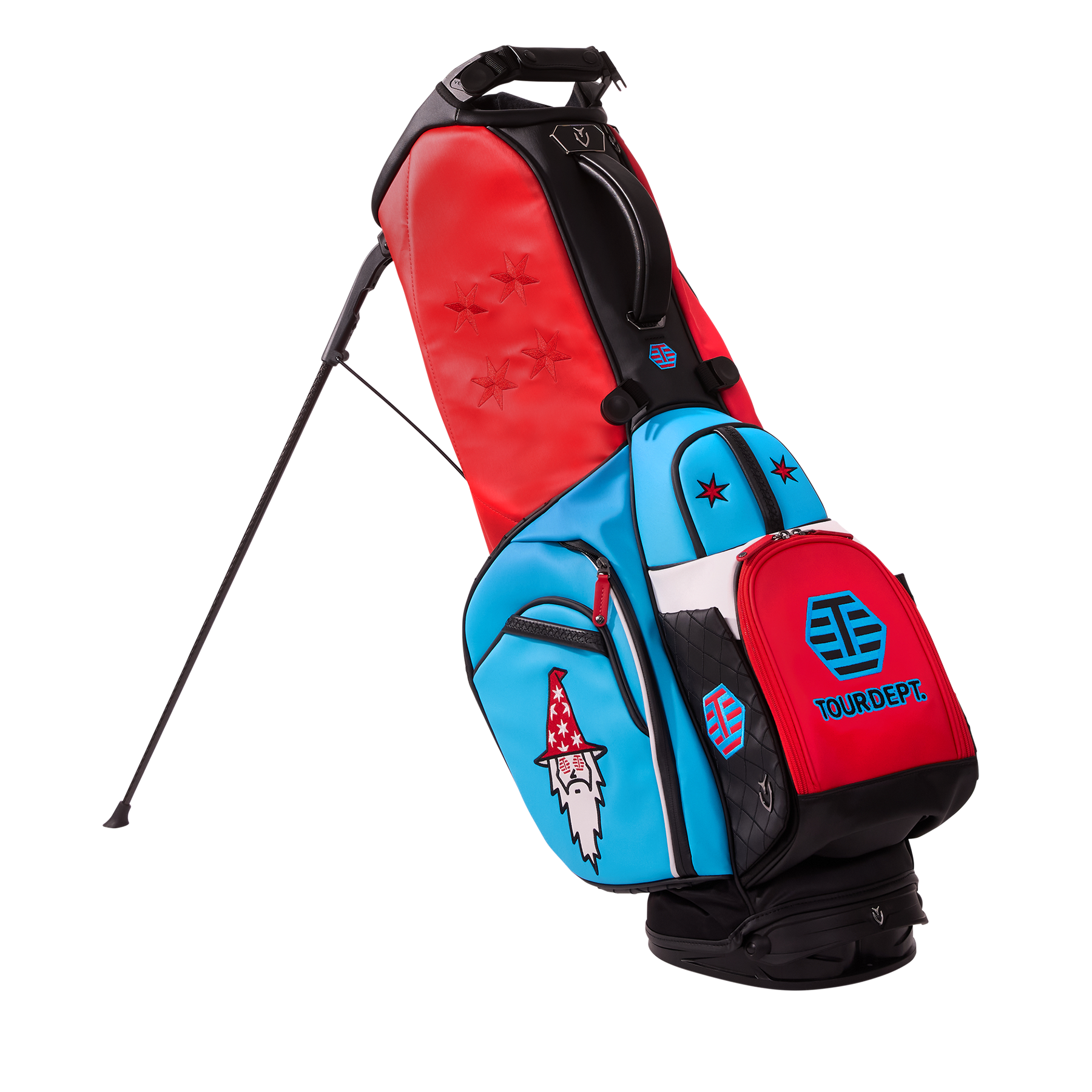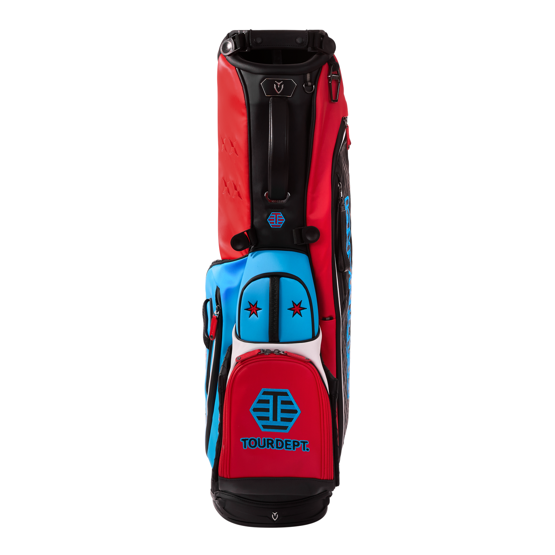 The RWB Chicago Wizard Tour Dept. Vessel Player V is here to give you the ultimate carry experience. Showcasing our Chicago Wizard and T-Hive design, this bag is finished with a red, white and blue colorway with embossed stars. From the hidden valuables pocket to the beverage compartments, each pocket has been carefully designed and placed to improve organization, accessibility and on-course convenience. The Player V utilizes VESSEL’s patented technologies (Equilibrium Double Strap and Rotator Base) for maximum balance and superior stability. Intentionally placed high strap-attachment points promote further balance and eliminate club fallout while the bag is being carried. A key feature upgrade is the addition of a cart strap pass-through for added protection on a cart or trolley. The Player V showcases signature attention to detail through premium trims and tour-grade materials so you can look and play your best. Limited quantities are available. Limit 1 per person. Good luck!