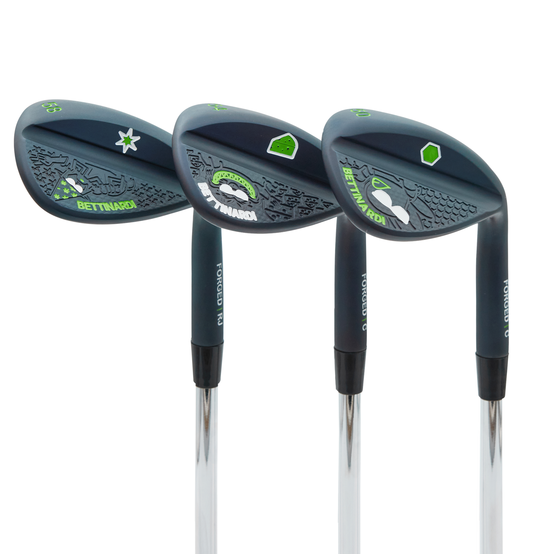 Shades on, world out. These HLX 6.0 wedges feature the Sunglasses Stinger, Grail Cat, and Lucky Wizard engraved over honeycomb, cheese, and star patterns respectively. Complete with our Texas Tea finish and lime green and white paintfills, this multi-grind wedge set includes 50°, 54°, and 58° lofts. Limited quantities are available. Limit 1 per person. Good luck!