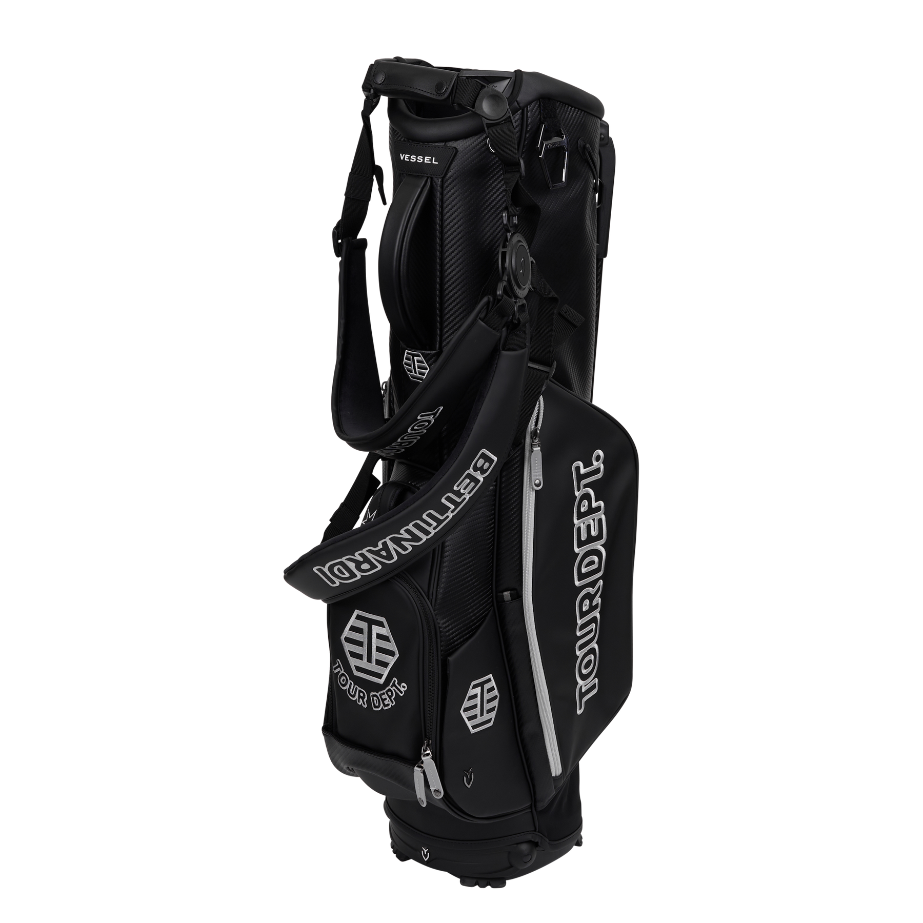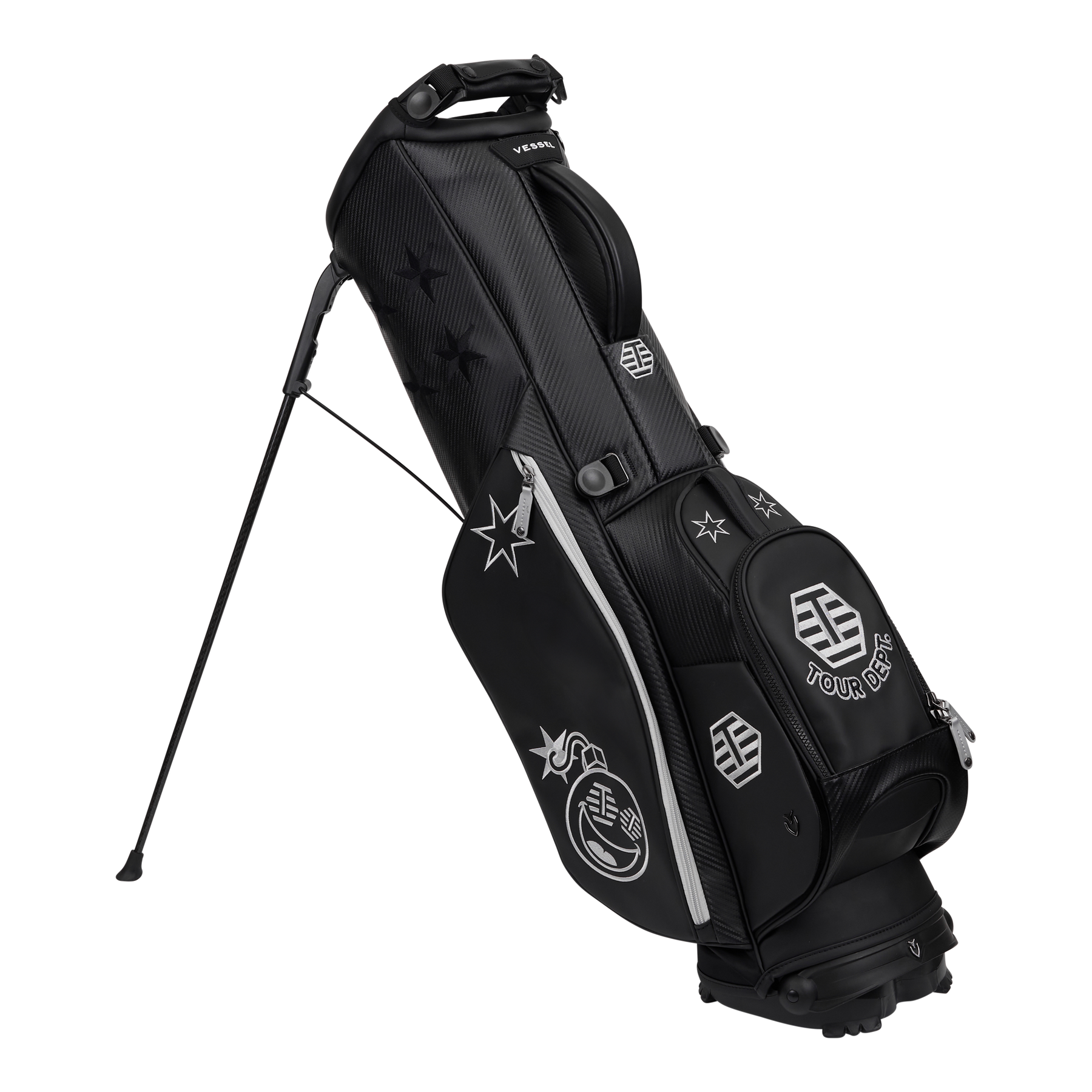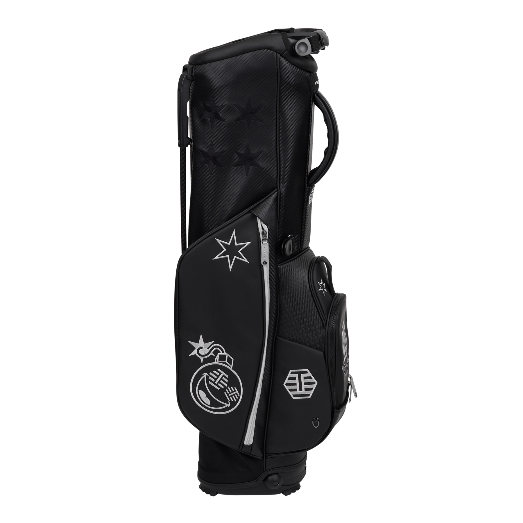 This T-Hive Bomb Tour Dept. VLX 2.0 stand bag was put together by our friends at Vessel and features our Bomb Icon in a blackout colorway with embossed stars on the sides and our Tour Dept. logo. This bag offers everything a golfer could need: a large, 4-way top with full-length dividers that comfortably fits a full set of clubs, a magnetic rangefinder pocket, 3 external pockets, an interior lock pocket and matching body material and all-weather rain hood. Limited quantities are available. Limit 1 per person. Good luck!