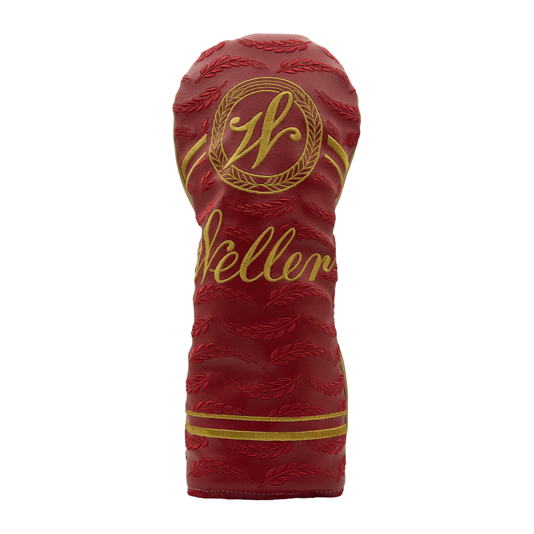 This exclusive Weller x Bettinardi driver headcover is crafted in a rich two-tone crimson & metallic gold colorway. On the front, a golden Weller seal and wordmark are embroidered in gold, enveloped by a tonal repeating wheat head pattern. The reverse features crimson embroidery of the Bettinardi wordmark and Hex B. Limited quantities are available. Limit 1 per person.
