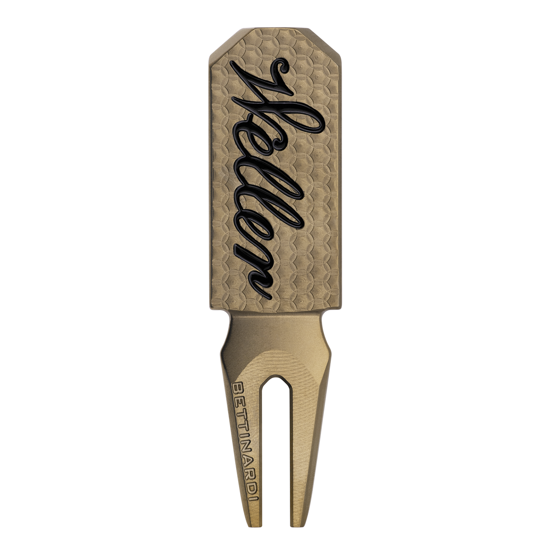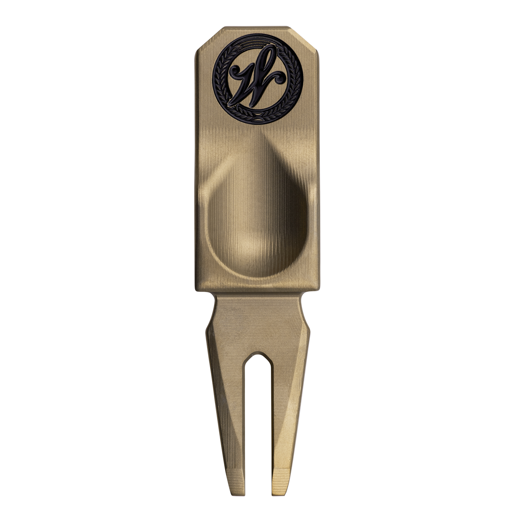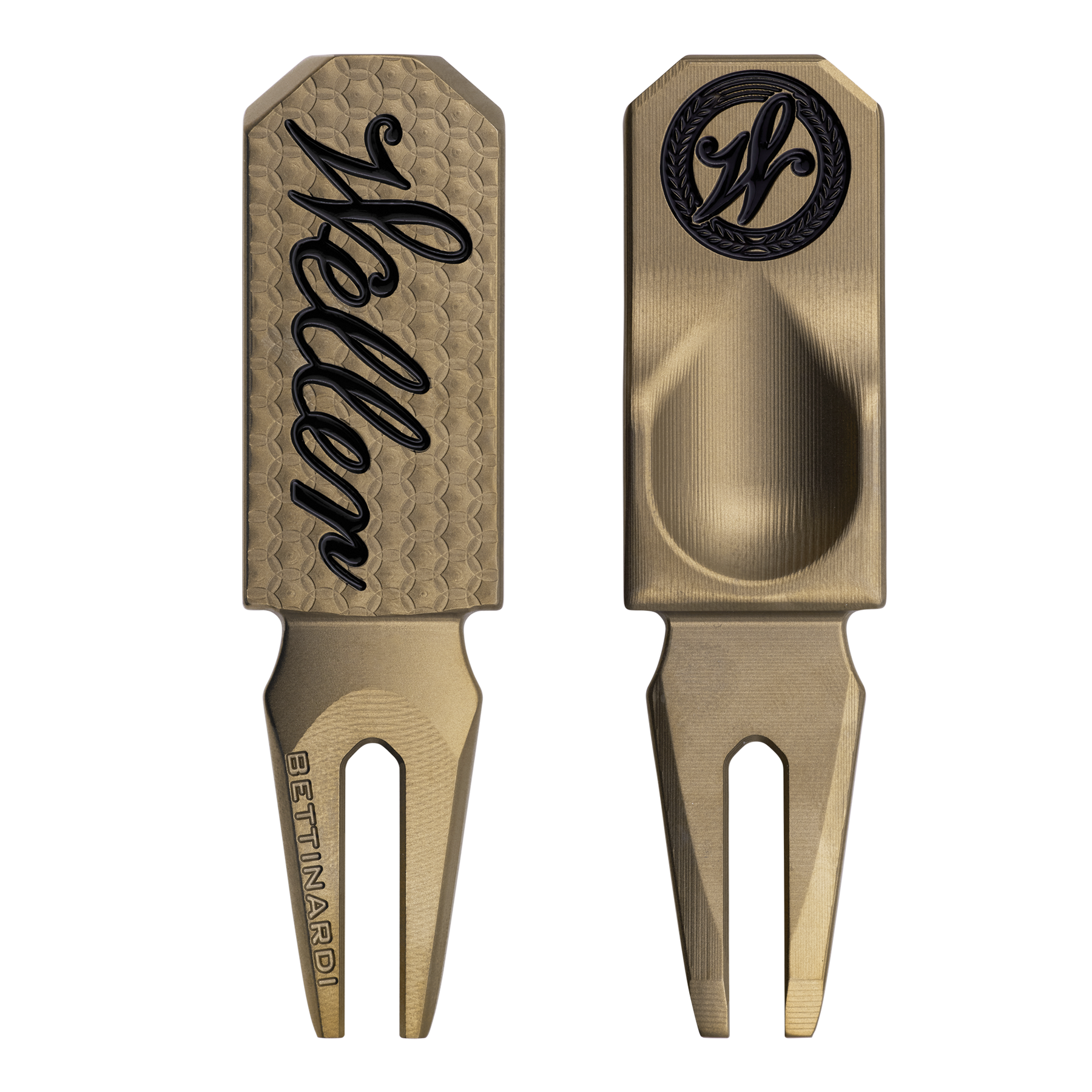 Designed with elegance and crafted with purpose, this dual-prong divot tool was expertly milled from the same 303 Stainless Steel as our putters. The front features a Weller wordmark engraved over Micro Honeycomb milling, and the reverse features a Weller mark above the thumb contour, all accented with black paintfill. Limited quantities are available. Limit 1 per person.
