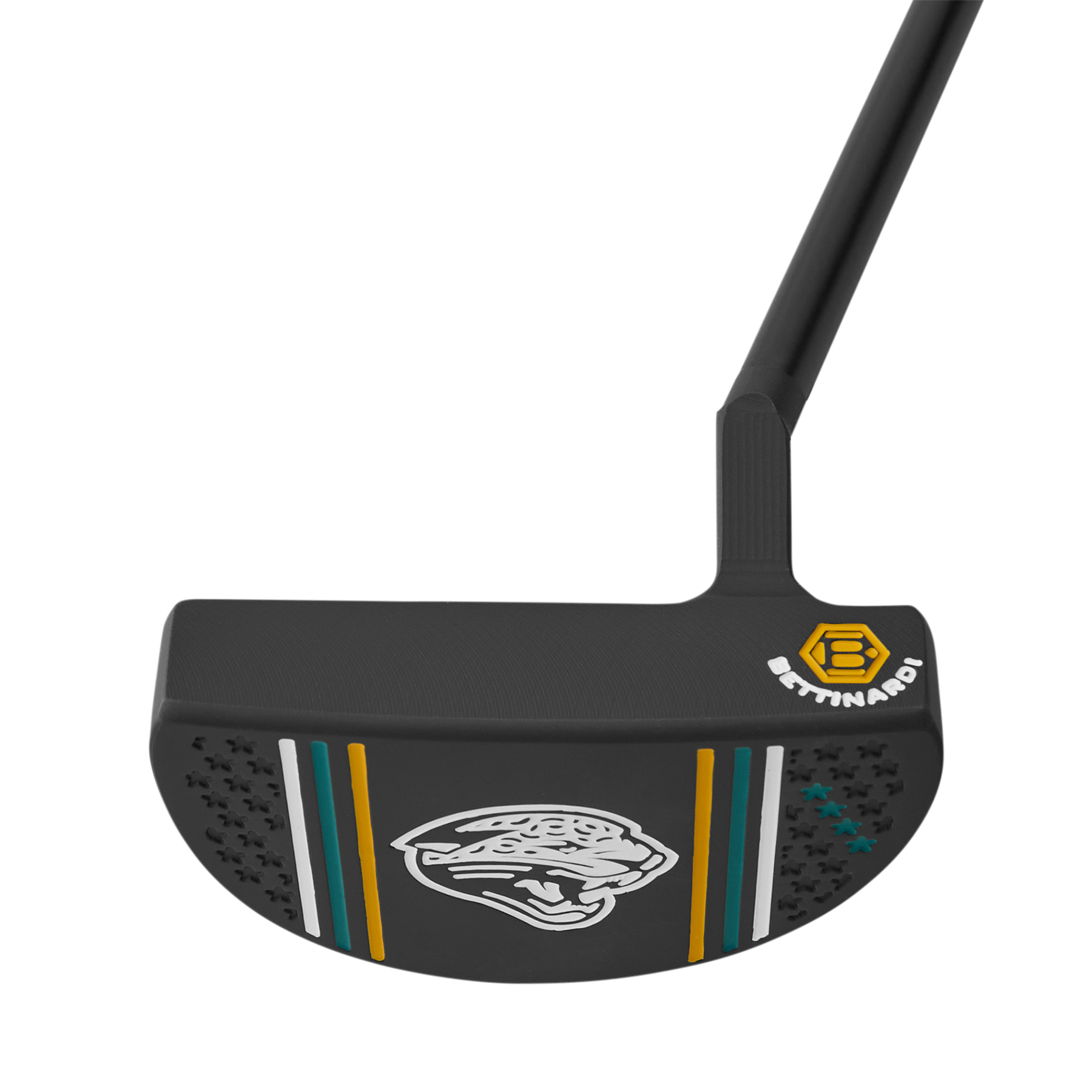 This Jacksonville Jaguars BB48 Putter is finished in Black Armor with teal, gold and white paintfills and features the Jacksonville Jaguars logo on the sole. Milled from 303SS, it boasts a flangeline alignment and a Flymill face for a firm, yet responsive feel. The face of the putter is adorned with the Hex B on the heel, and in the pocket you’ll find "Jaguars". Elevate your game with this limited run putter that combines Bettinardi’s world-renowned design and precision milling with Jacksonville Jaguars pride. Comes completed with a black Hex B Gripmaster Perforated Leather Grip and a Jacksonville Jaguars Alternate Logo Blade Putter Headcover. Limited quantities are available. Putters will ship in 6-8 weeks.