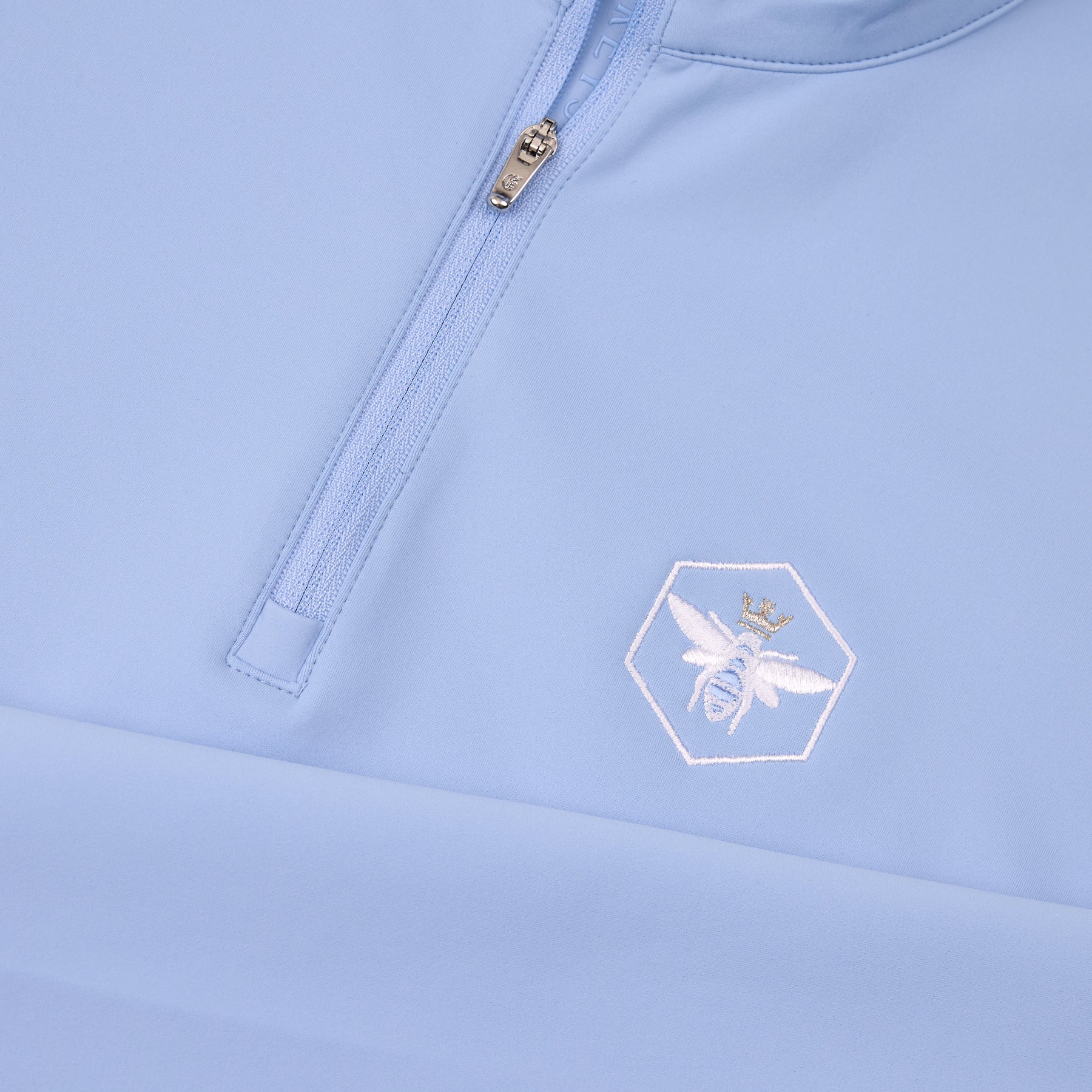 The Queen B Halley Long Sleeve Quarter-Zip crafted from luxurious Italian fabric, featuring the Queen B logo on the left chest and Bettinardi wordmark on the right cuff, delivering superior stretch and performance with a luxe feel. Designed with a slim, athletic fit, this lightweight pullover is breathable and provides UPF 50 protection for versatile, year-round wear. The quarter-zip construction is finished with thumbholes for functionality, perfect for sport or everyday wear, pair it with your favorite skirt or pant for a polished, athletic look. (86% polyester, 14% spandex)