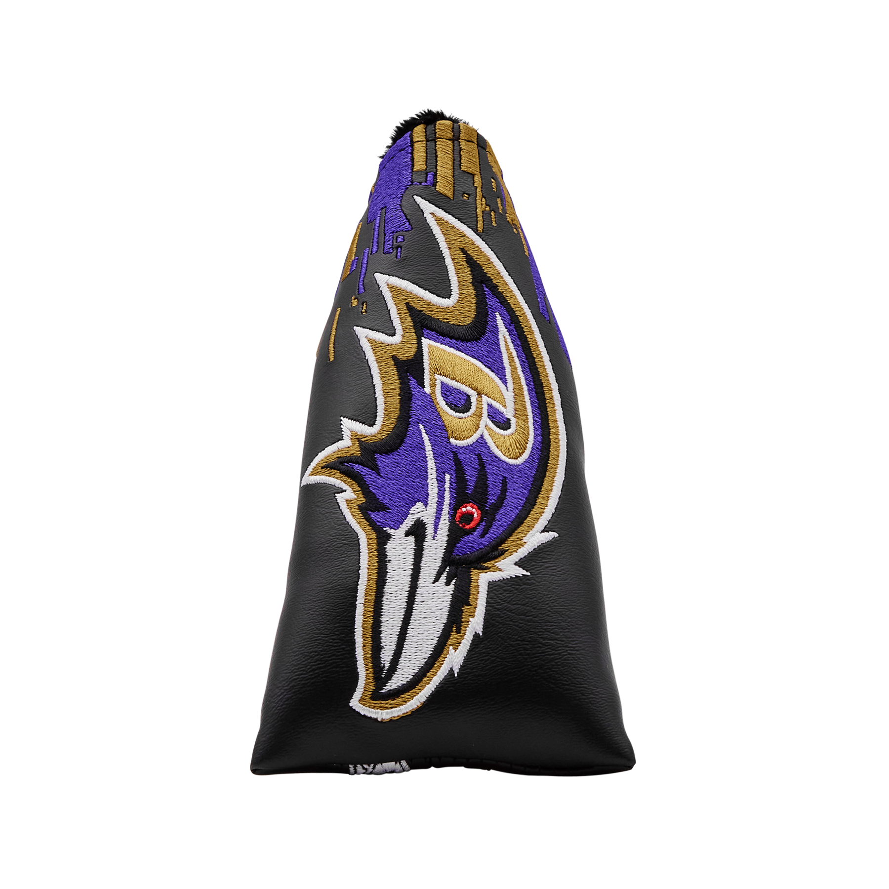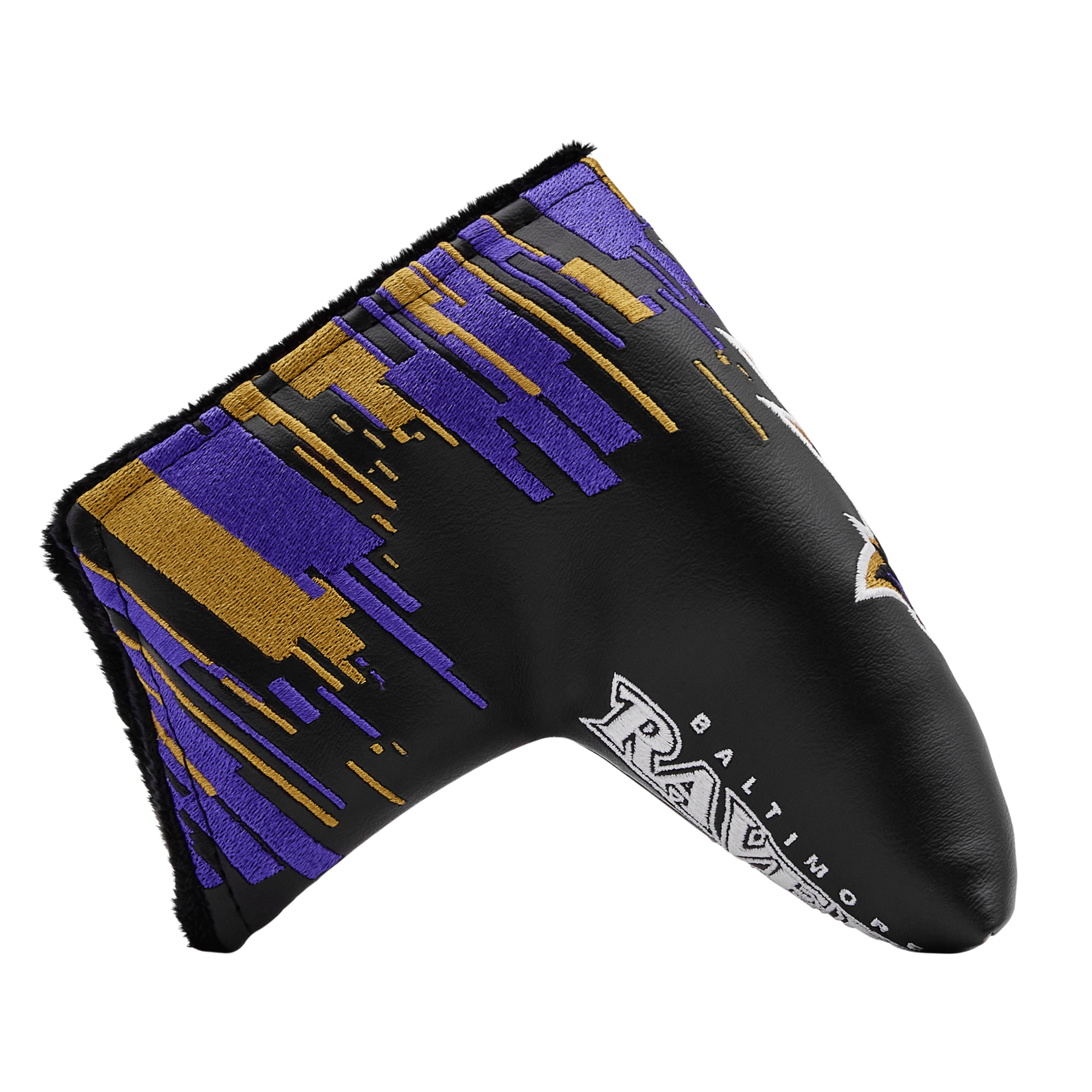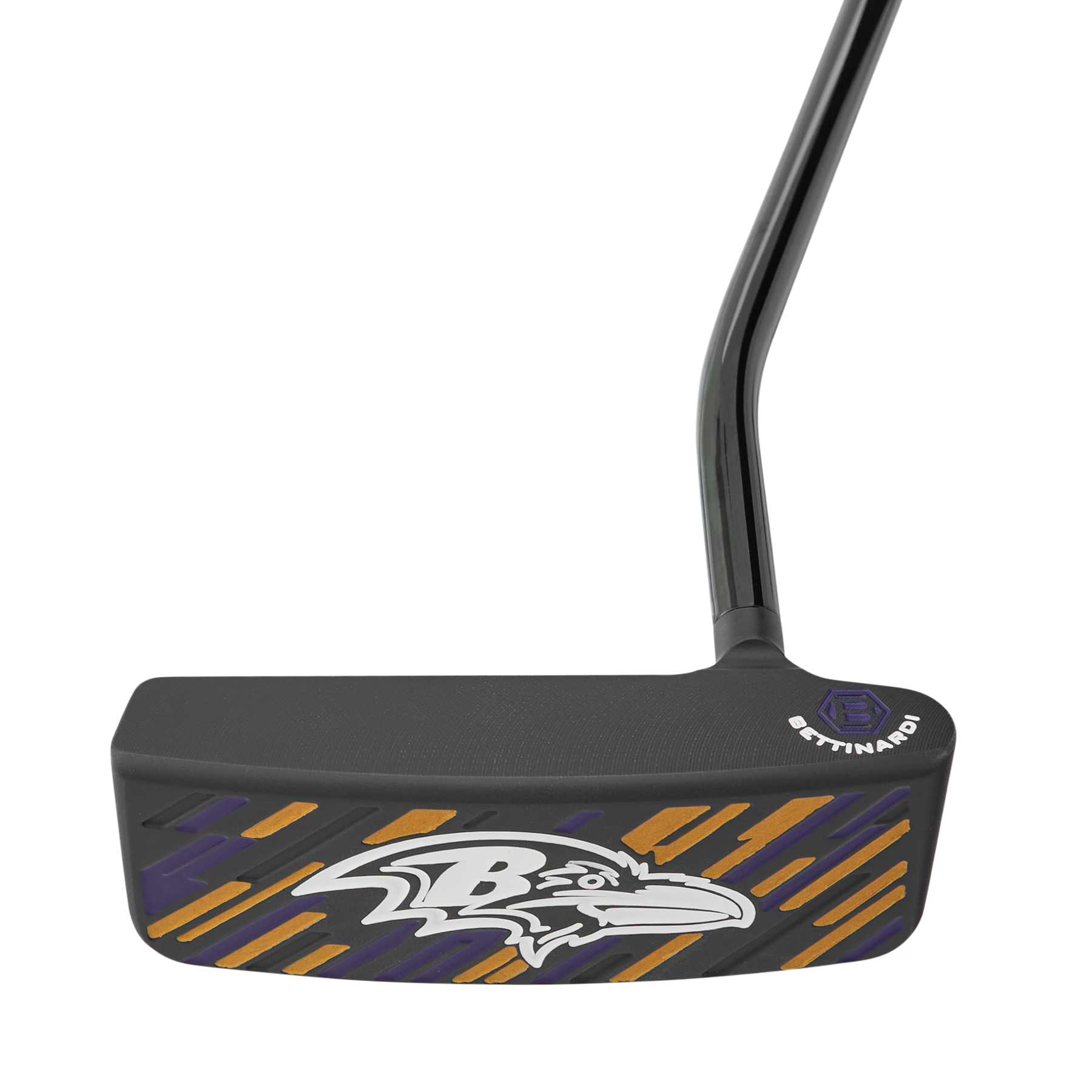 Go Ravens! This Baltimore Ravens SS28 Putter is finished in Black Ox with purple, gold and white paintfills and features the Baltimore Ravens logo on the sole with digital stripes. Milled from 303SS, it shows a single sightline alignment and a Flymill face for a firm, yet responsive feel. The face of the putter is adorned with the Hex B on the heel, and in the pocket, you’ll find the Baltimore Ravens wordmark. Comes paired with a black Hex B Gripmaster Perforated Leather Grip and Baltimore Ravens Blade Putter Headcover. Limited quantities are available.