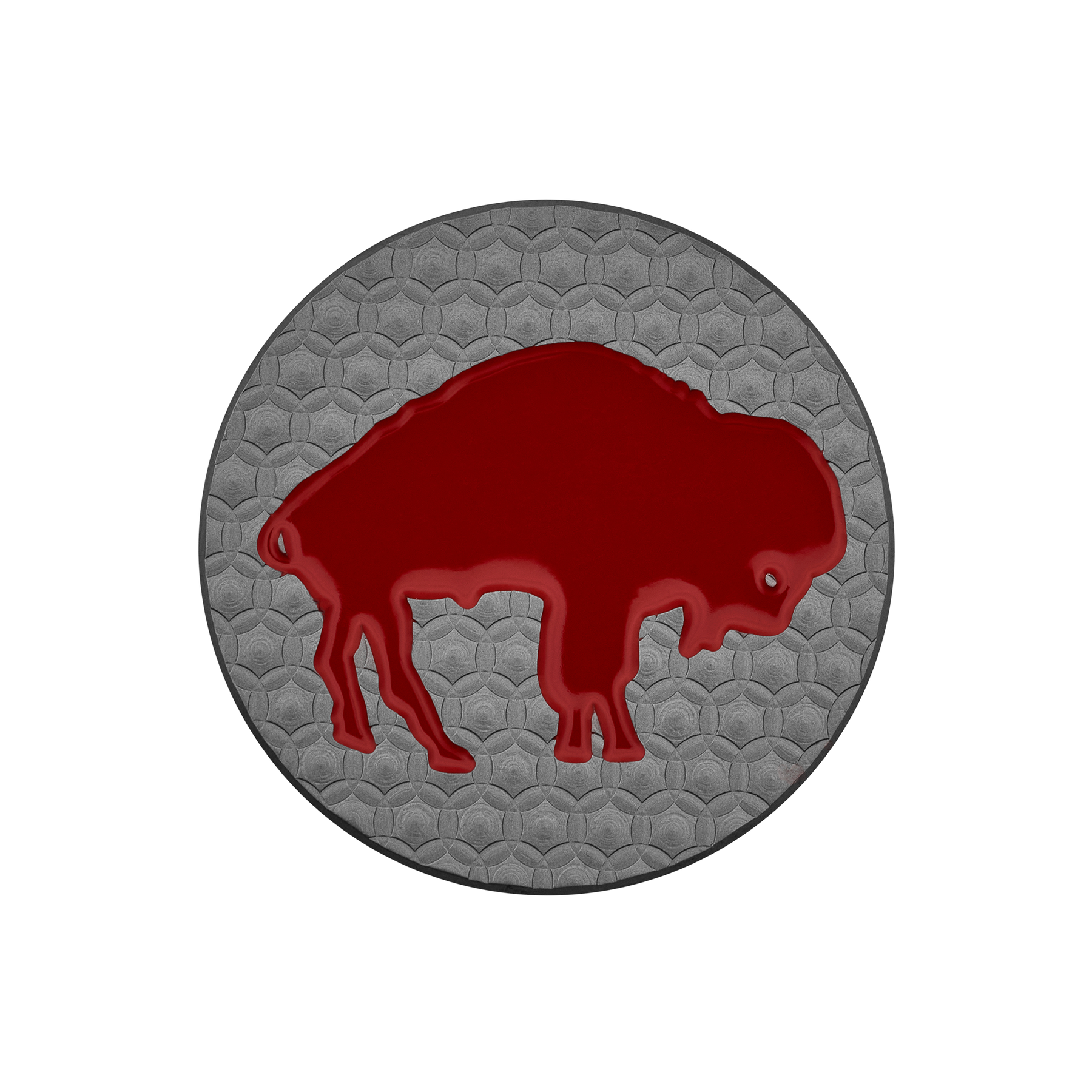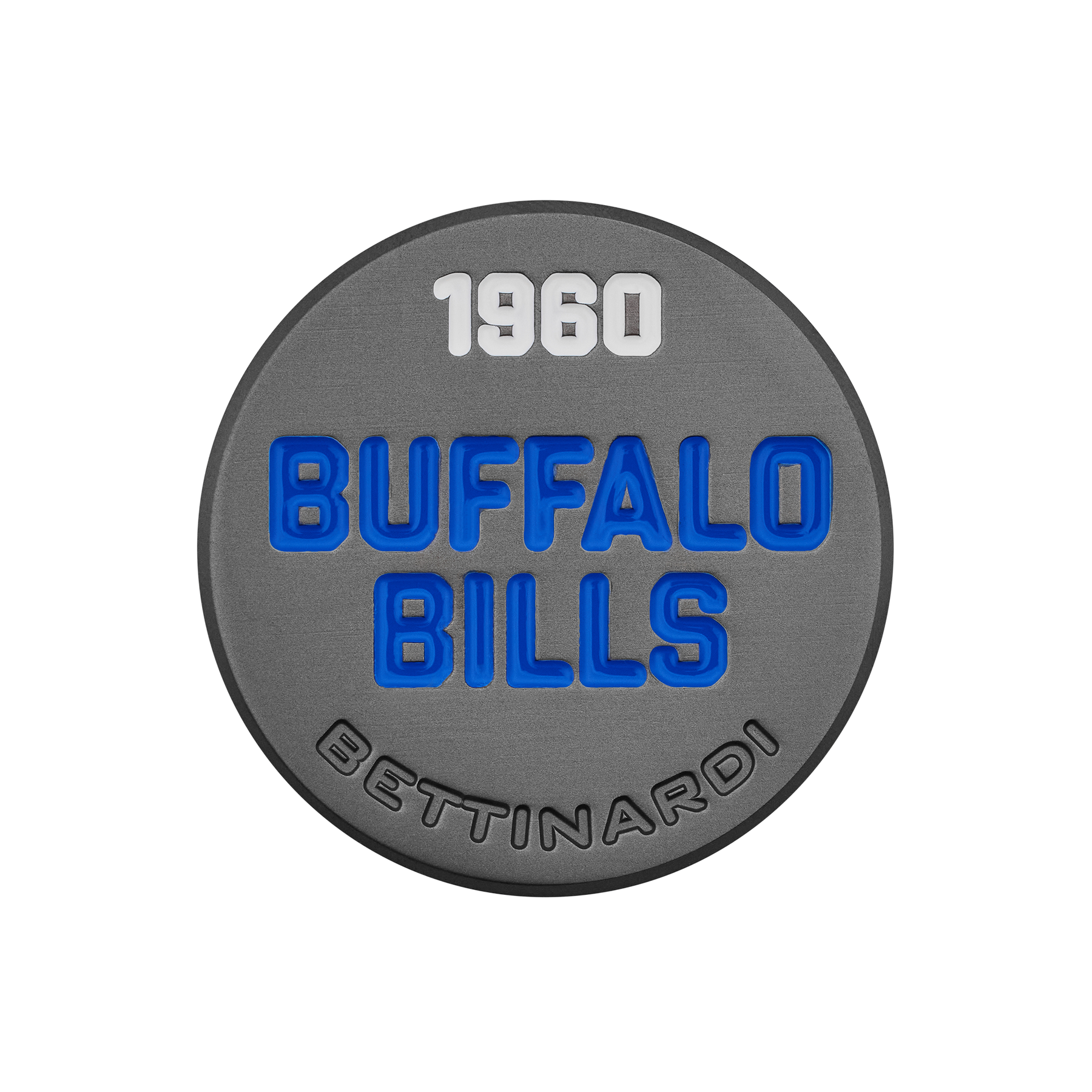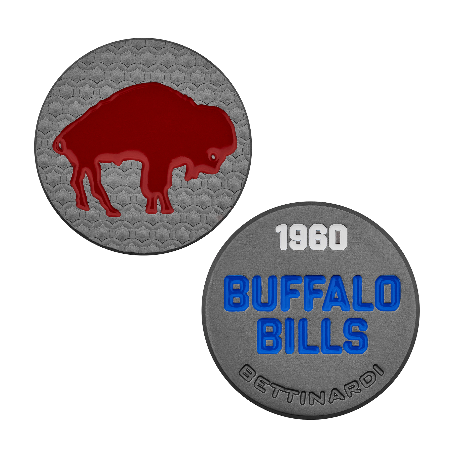 This throwback Black Ox ball marker features the Buffalo Bills classic mark on the front milled in red over a Micro Honeycomb™ base, with a Buffalo Bills wordmark in blue and white fills on back. Limited quantities are available.