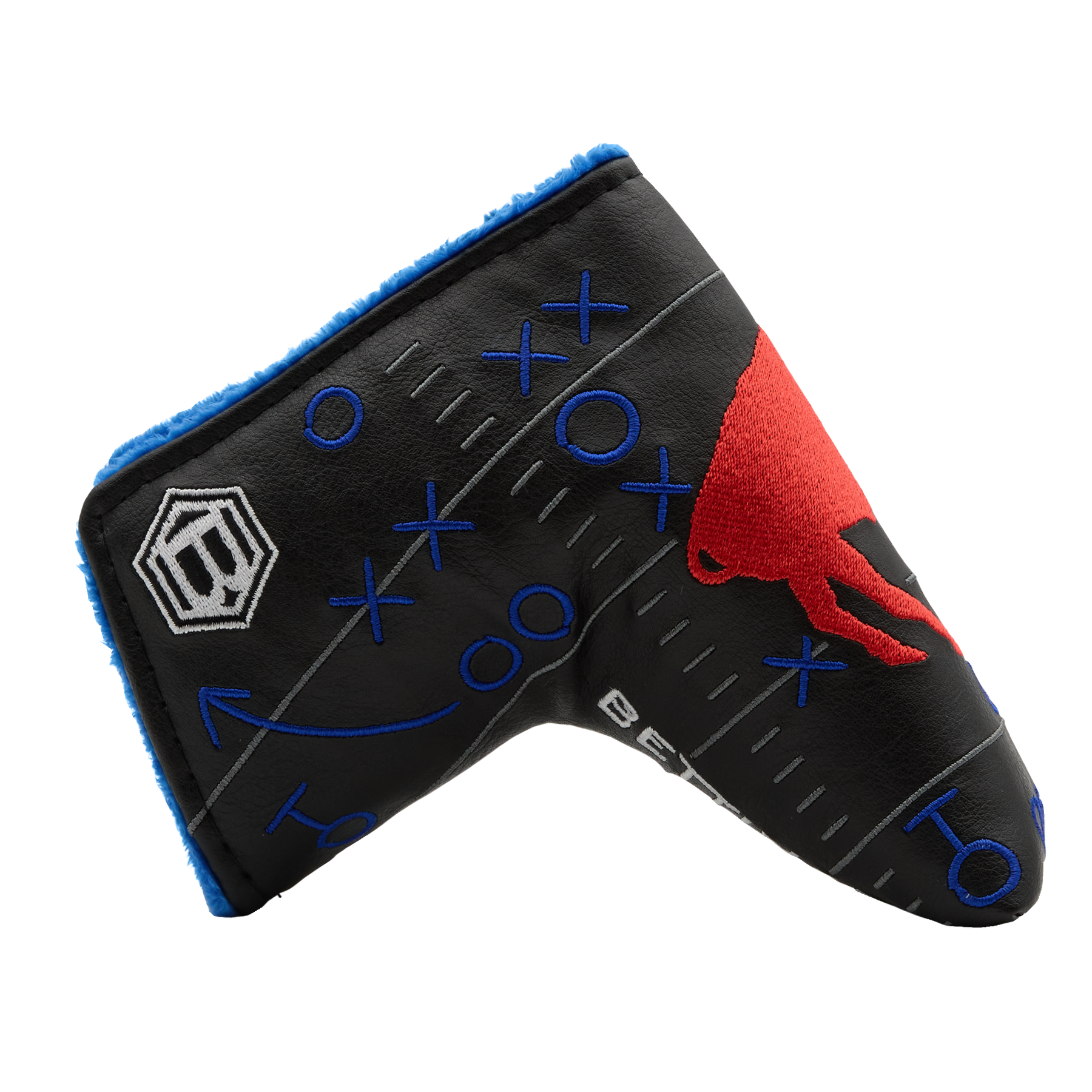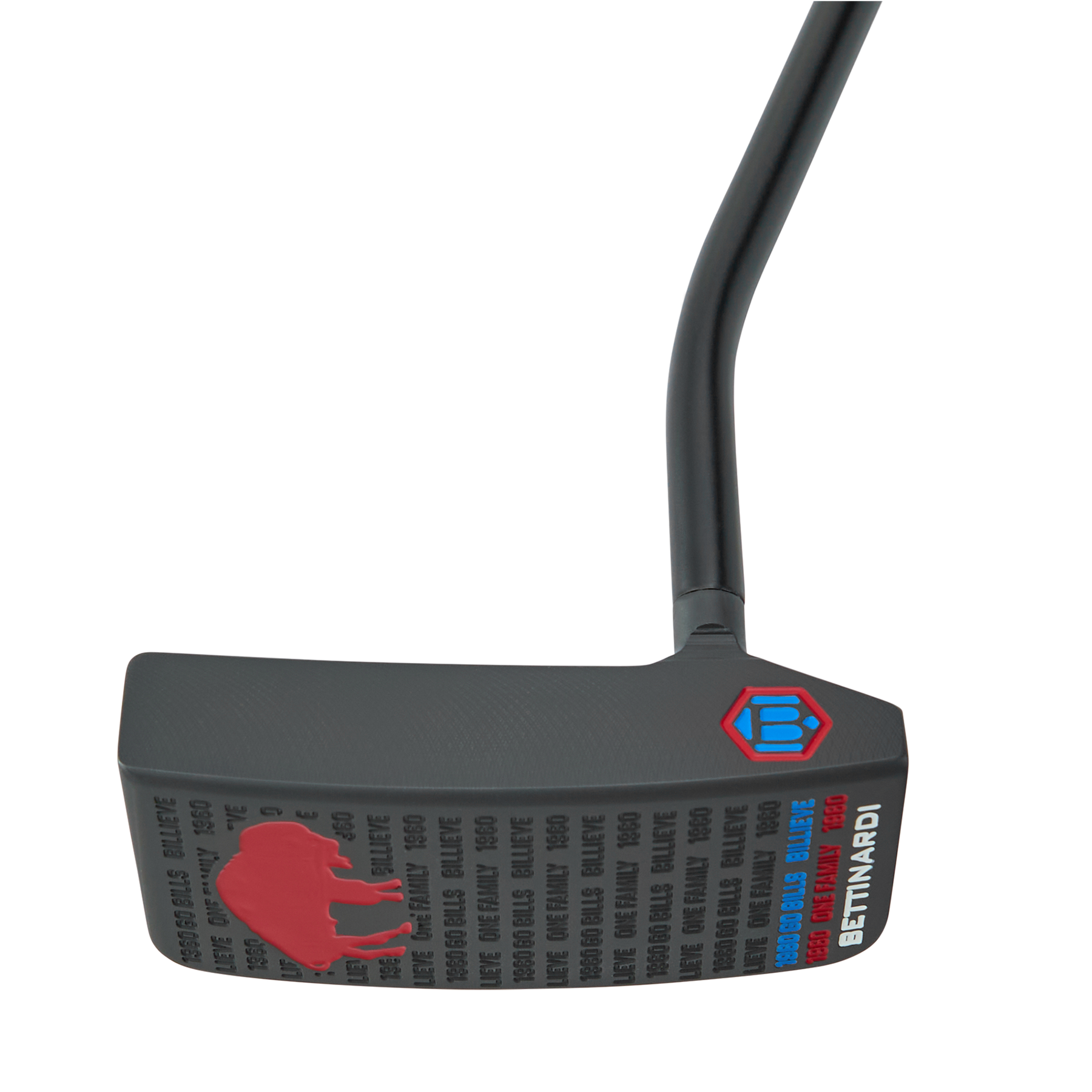 This Buffalo Bills Queen B 6 Putter is finished in Black Ox with red, white and blue paintfills and features the Buffalo Bills classic mark and team slogans on the sole. Milled from 303SS, it boasts a single sightline alignment and a Flymill face for a firm, yet responsive feel. The face of the putter is adorned with the Hex B on the heel, and in the pocket you’ll find the Buffalo Bills wordmark. Elevate your game with this limited run putter that combines Bettinardi’s world-renowned design and precision milling with Buffalo Bills pride. Comes completed with a black and gray Bettinardi Hex B standard grip and Buffalo Bills X's & O's Classic Mark Blade Putter Headcover. Limited quantities are available.