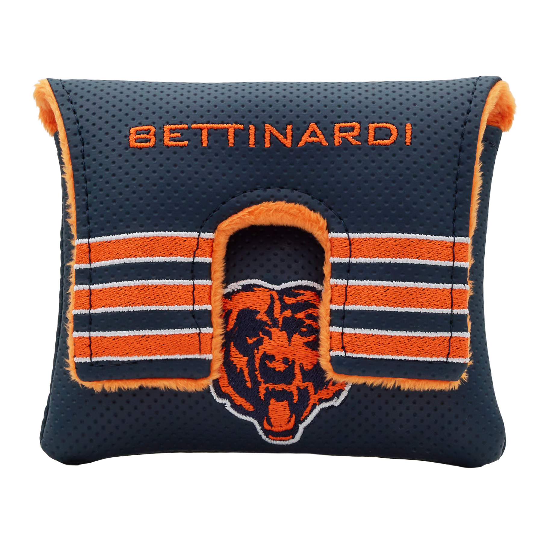 Good, better, best, never let it rest! Rep your Chicago pride in style with this limited Chicago Bears center shafted mallet putter headcover. Designed on a navy base, this headcover features the Bears' locker room mantra of "Good, Better, Best" in accenting orange embroidery on the front. The back features the Bears primary mark and orange triple stripe with a Bettinardi wordmark. Finished with an orange plush interior and magnetic closure, this headcover is designed to keep your putter protected on every green. This item is available for pre-order and will ship in 8-10 weeks.