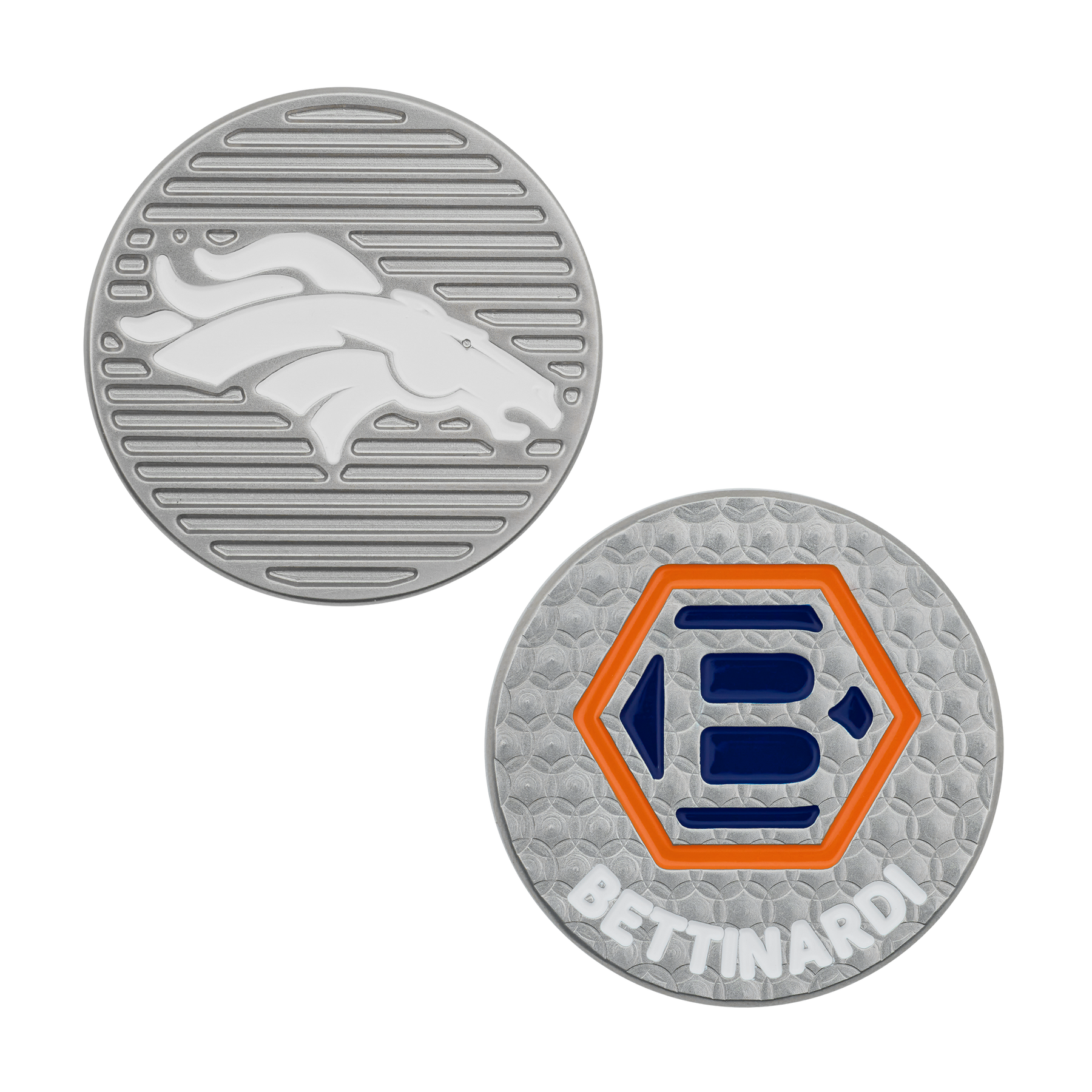 Go Broncos! This Diamond Blast ball marker features the Denver Broncos logo on the front, with Hex B milled into the backside with navy, white and orange paint fills over a Micro Honeycomb™ base. Limited quantities are available. Please allow 5 days for this item to ship.