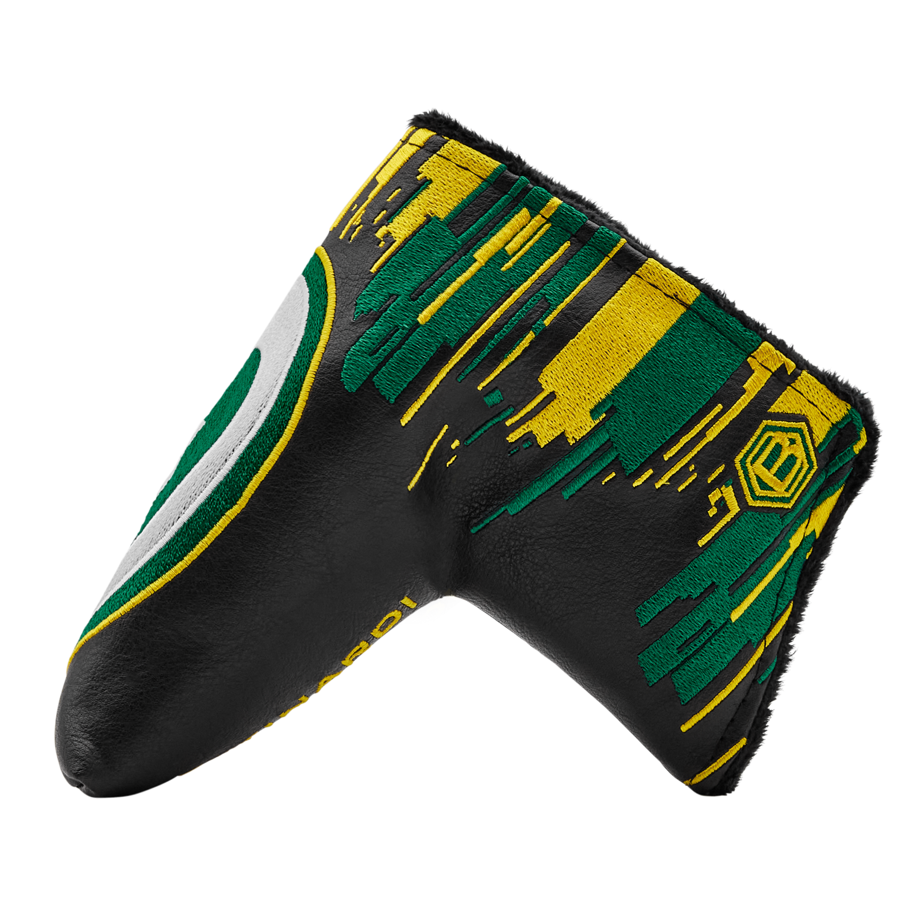 Go Pack Go! This Green Bay Packers Queen B 6 Putter is finished in Black Ox with green and yellow paintfills and features the Green Bay Packers logo on the sole. Milled from 303SS, it shows a single sightline alignment and a Flymill face for a firm, yet responsive feel. The face of the putter is adorned with the Hex B on the heel, and in the pocket, you’ll find the Packers wordmark. Comes paired with a Hex B Gripmaster Perforated Leather Grip and Green Bay Packers Blade Putter Headcover. Limited quantities are available.