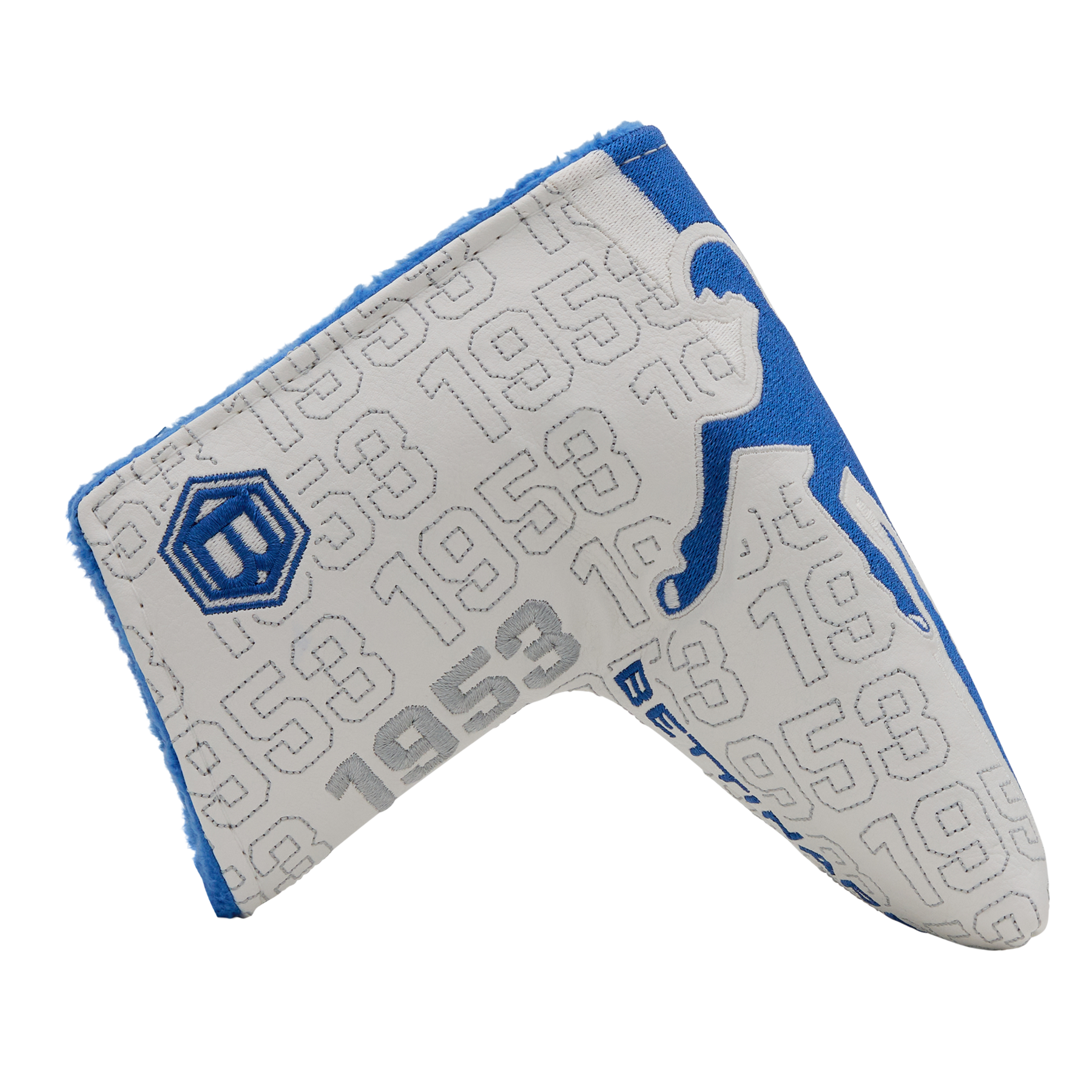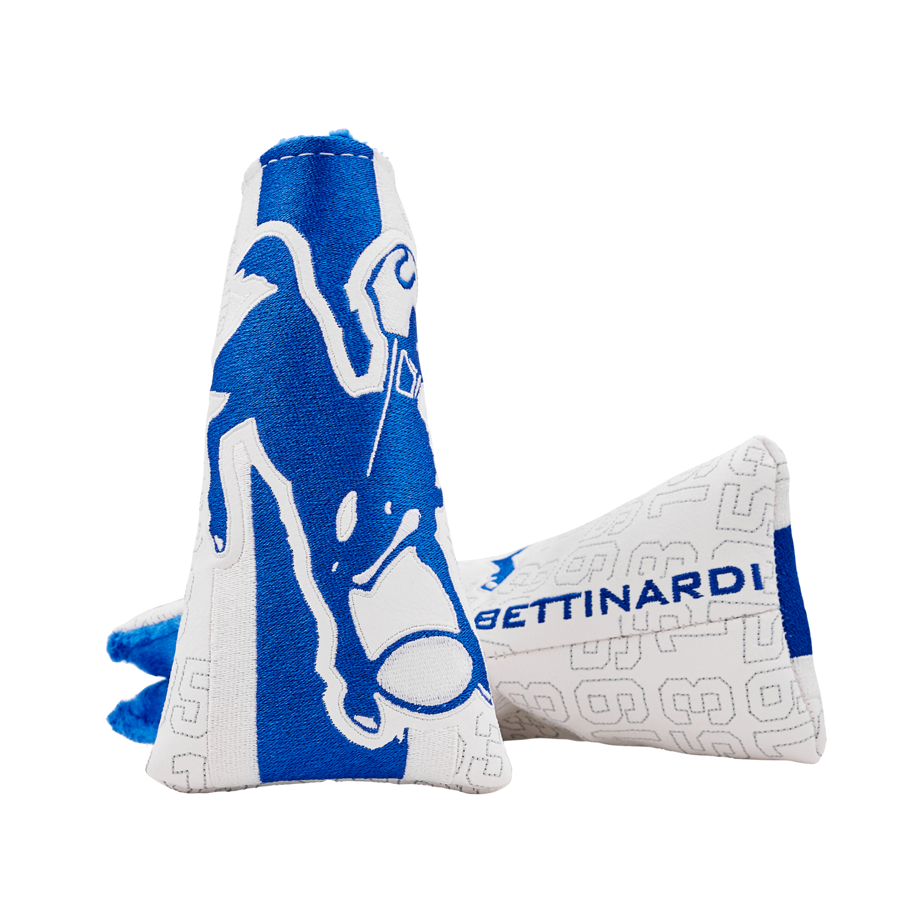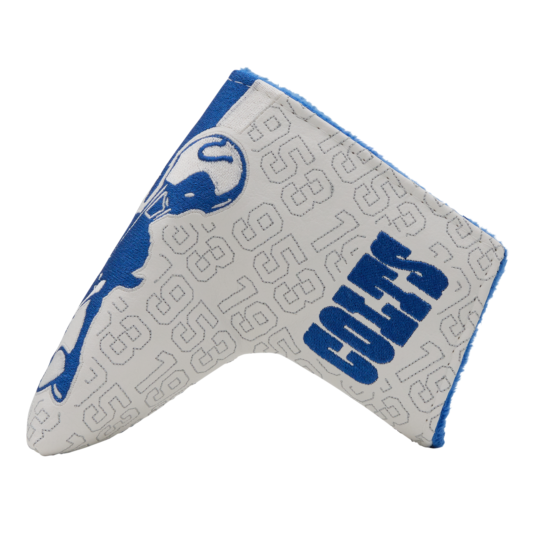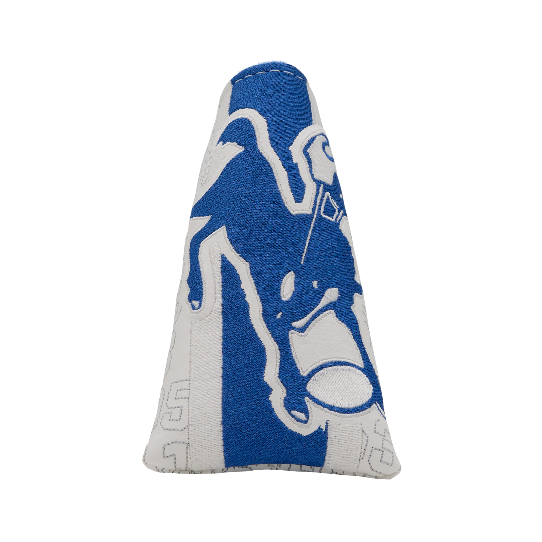 Our throwback Indianapolis Colts blade headcover showcases the classic mark on the front with "Colts" on the side and a Hex B on the opposite side, with blue accent wordmarks. Finished with a blue plush interior and a magnetic closure, this blade putter headcover protects your putter while showcasing your Indianapolis Colts pride on every green. Limited quantities available.