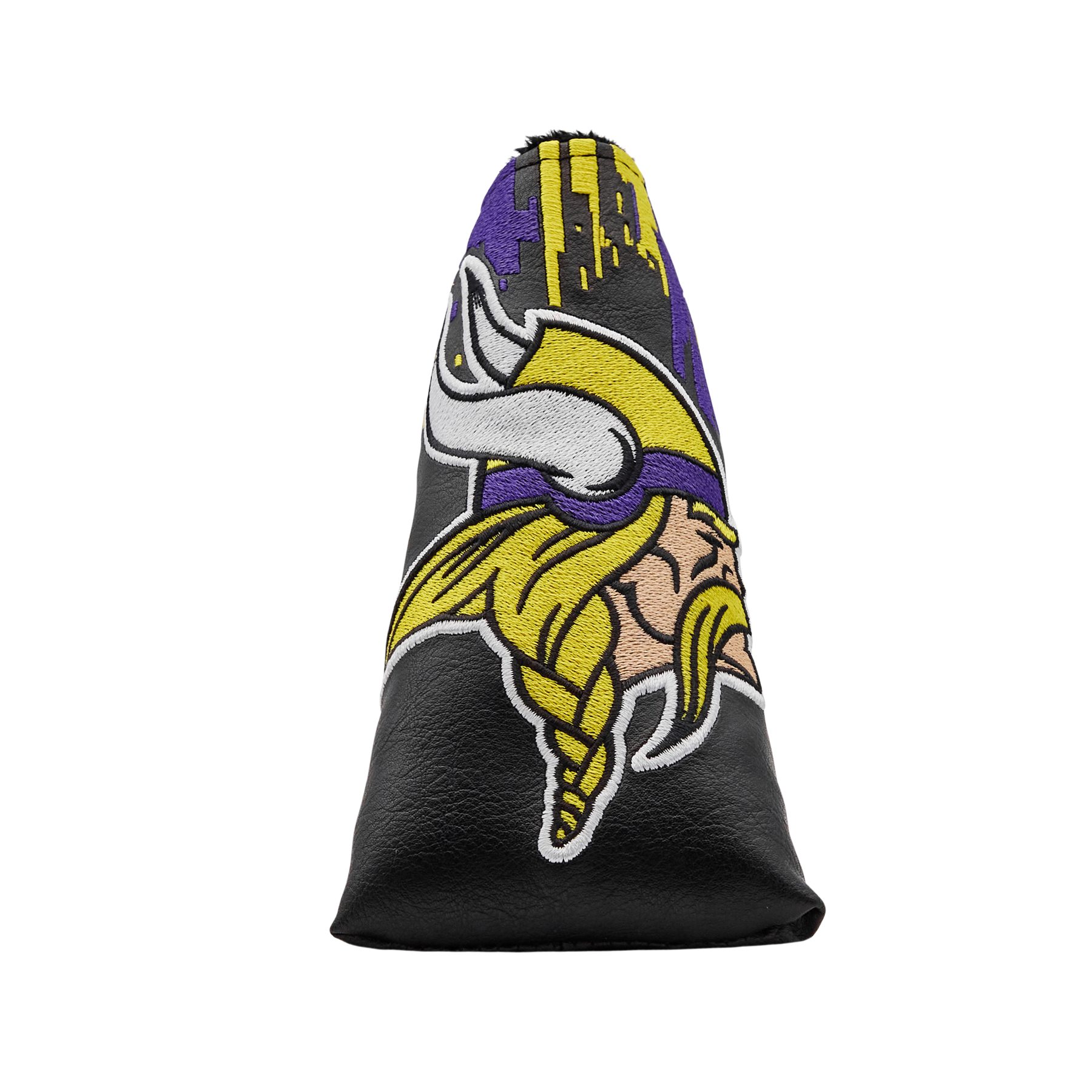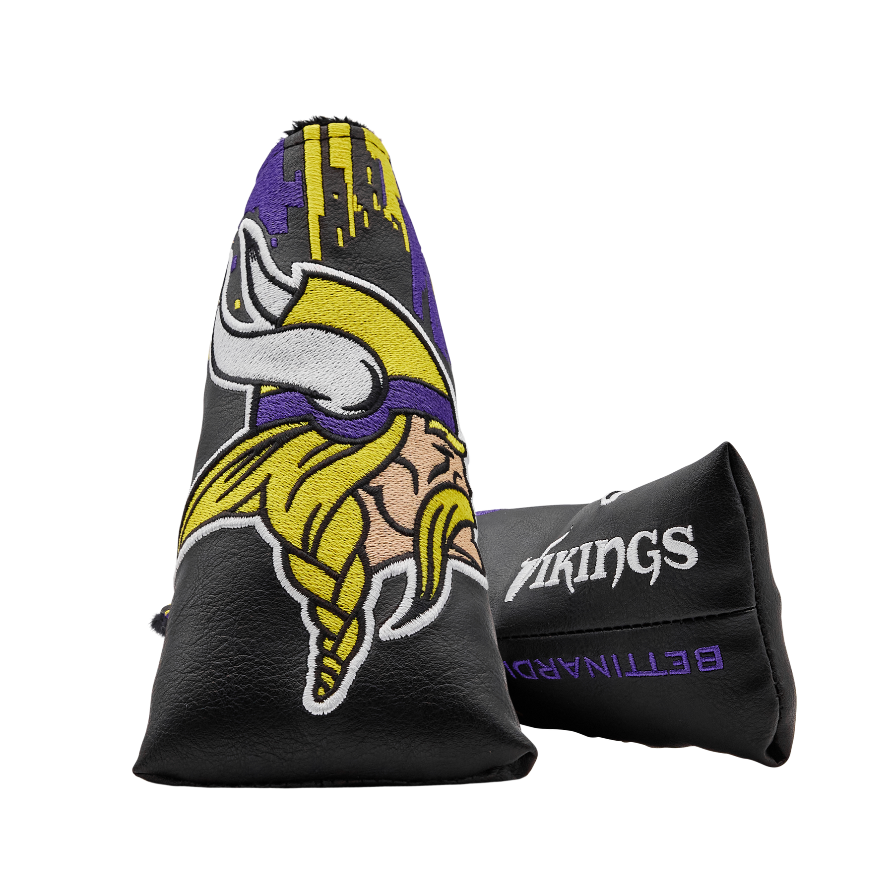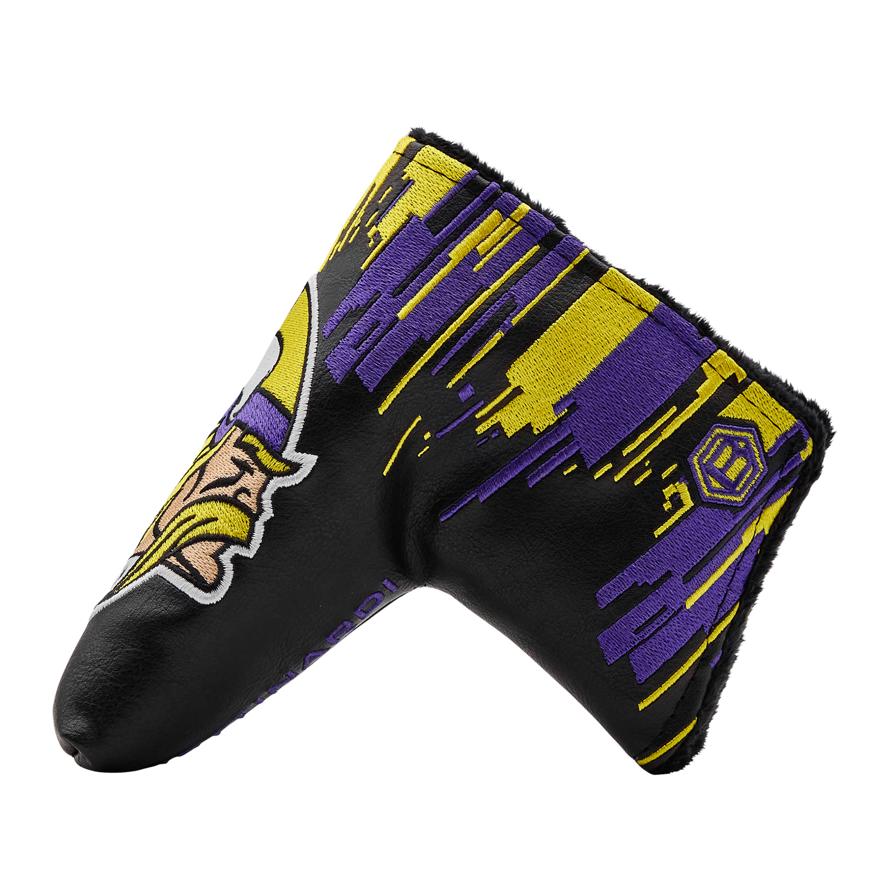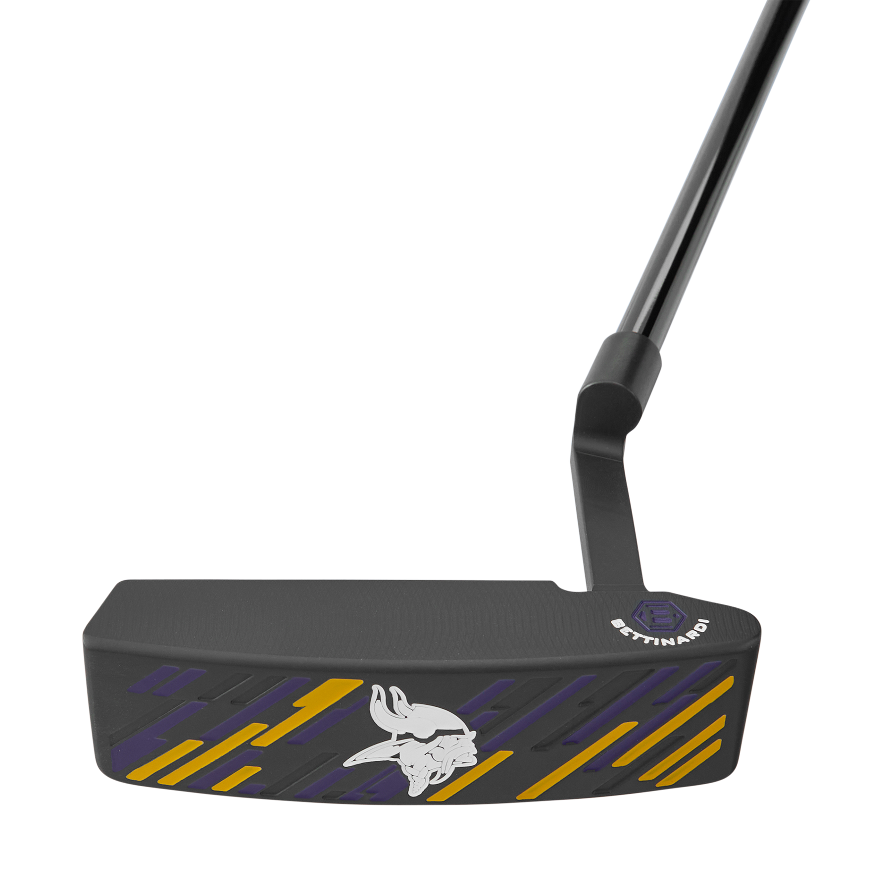 Go Vikings! This Minnesota Vikings BB8 Wide Putter is finished in Black Ox with purple and yellow paintfills and features the Minnesota Vikings logo on the sole with digital stripes. Milled from 303SS, it shows a single sightline alignment and a Flymill face for a firm, yet responsive feel. The face of the putter is adorned with the Hex B on the heel, and in the pocket, you’ll find the Vikings wordmark. Comes paired with a black Hex B Gripmaster Perforated Leather Grip and Minnesota Vikings Blade Putter Headcover. Limited quantities are available.