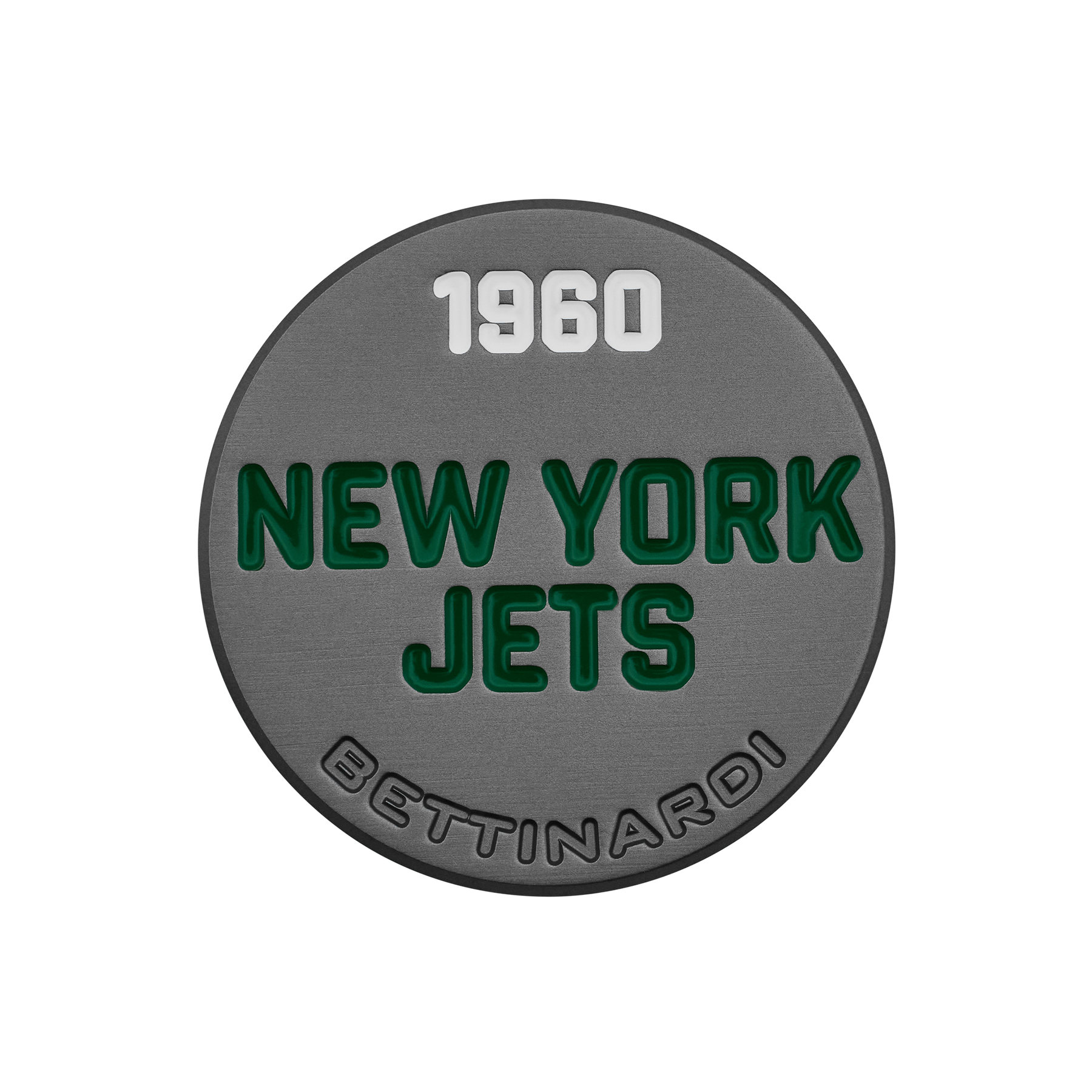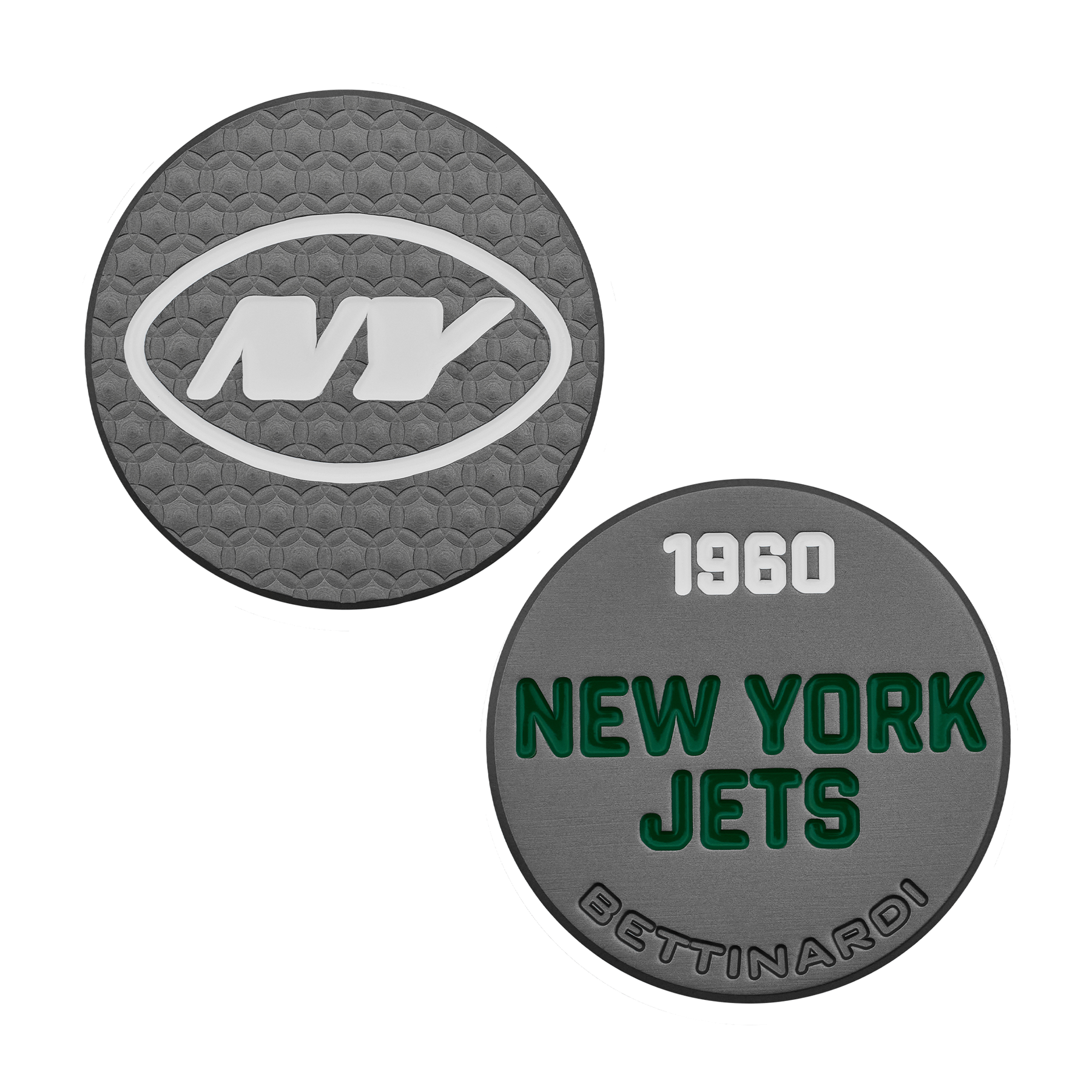 This throwback Black Ox ball marker features the New York Jets classic mark on the front in white, with the New York Jets wordmark milled into the backside with green and white paint fills over a Micro Honeycomb™ base. Limited quantities are available.