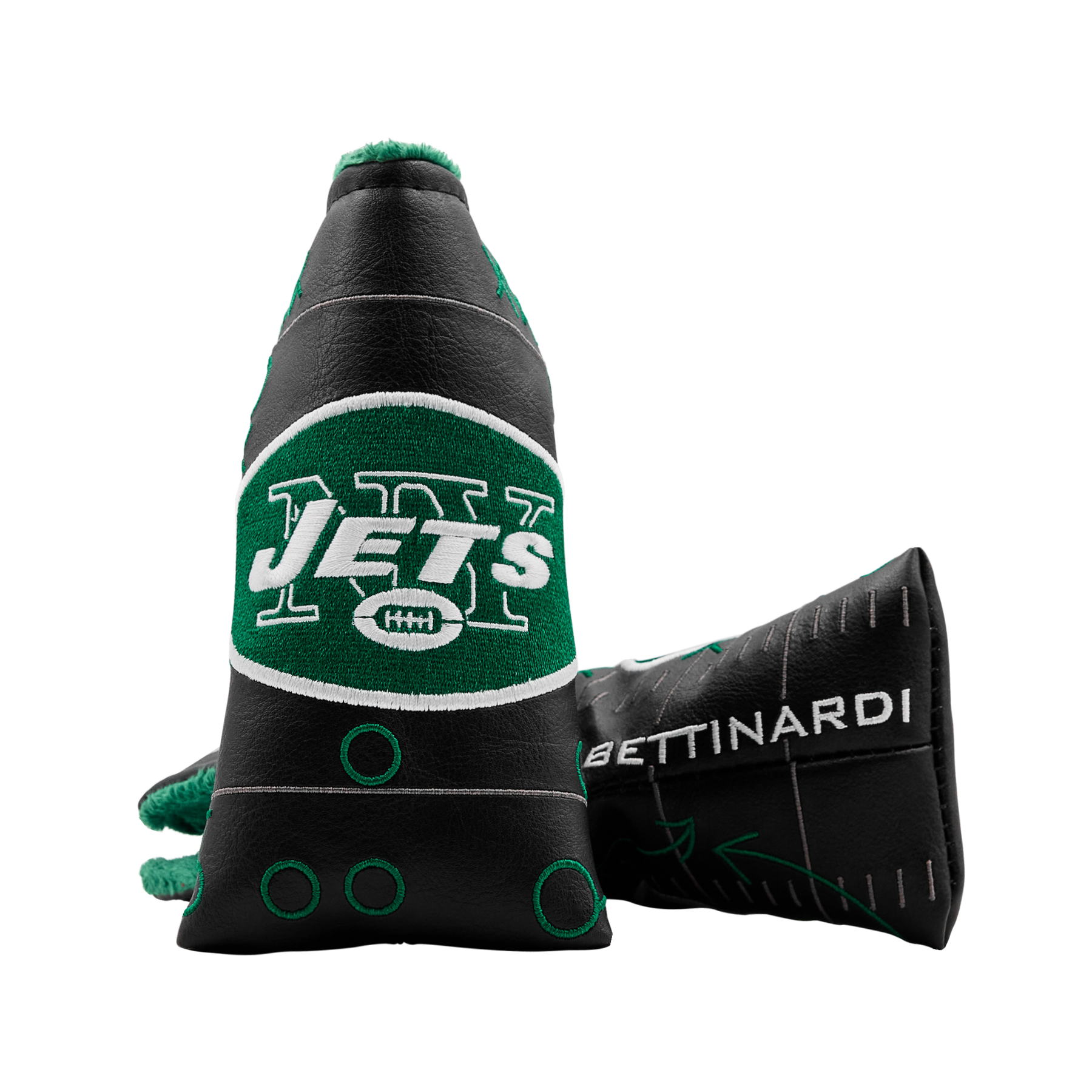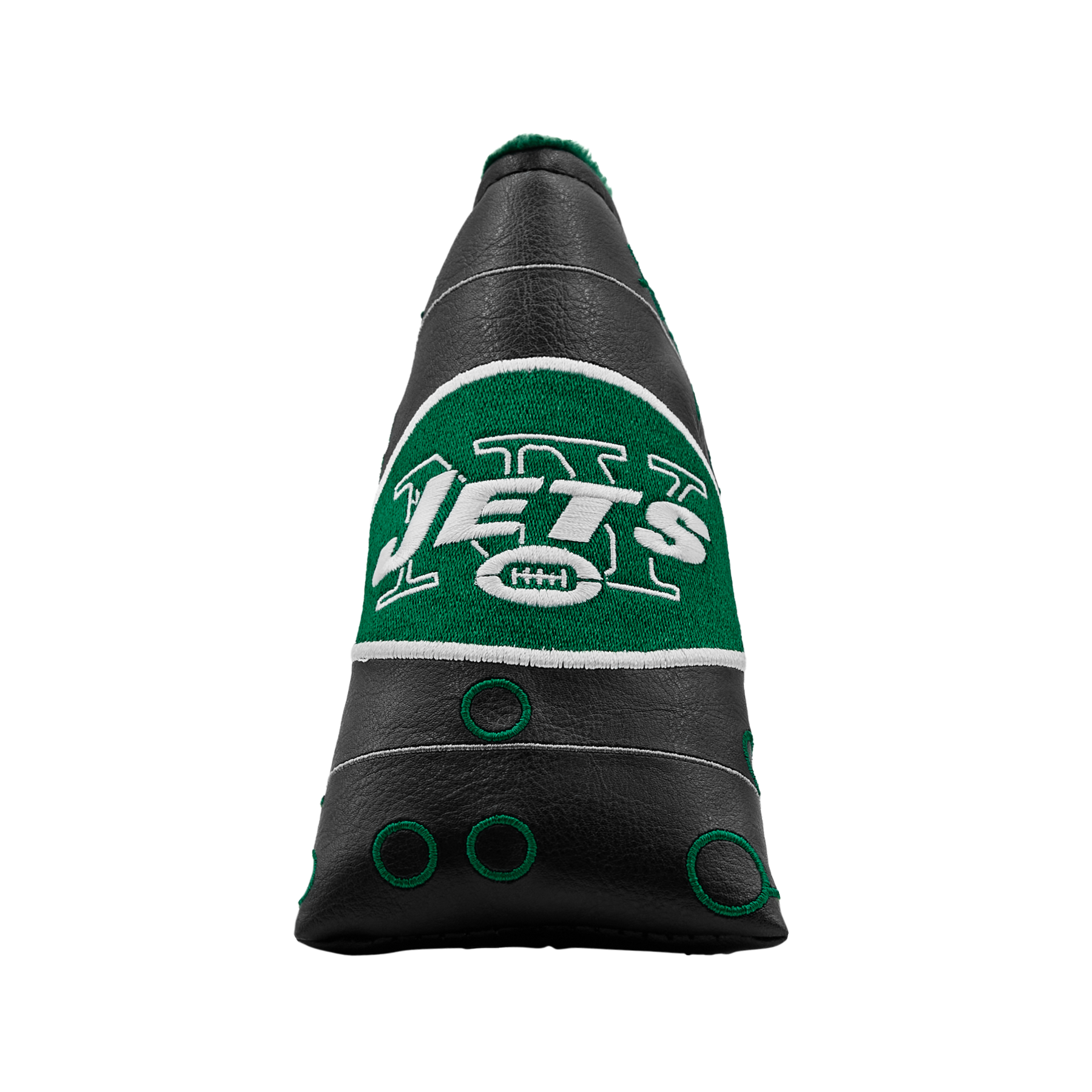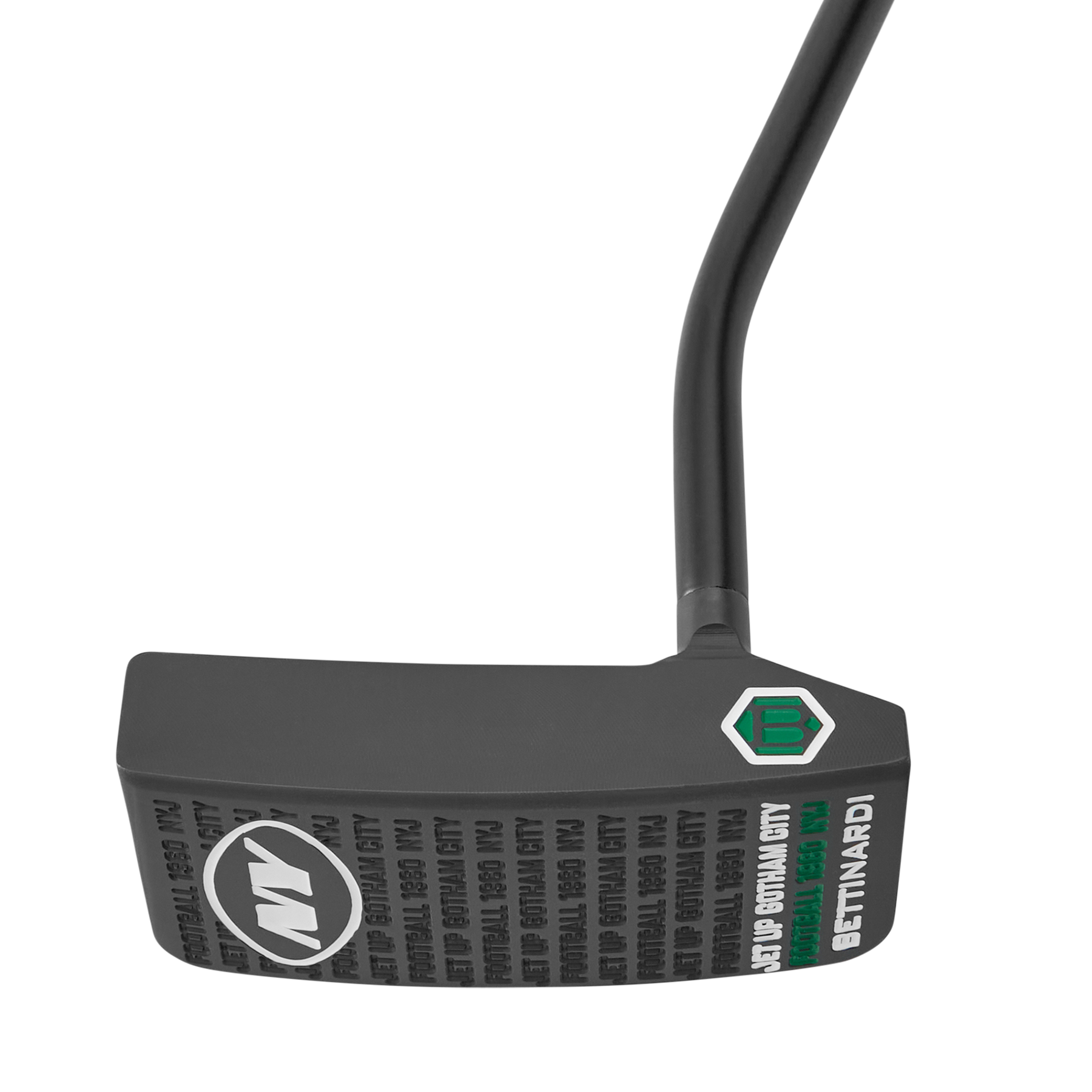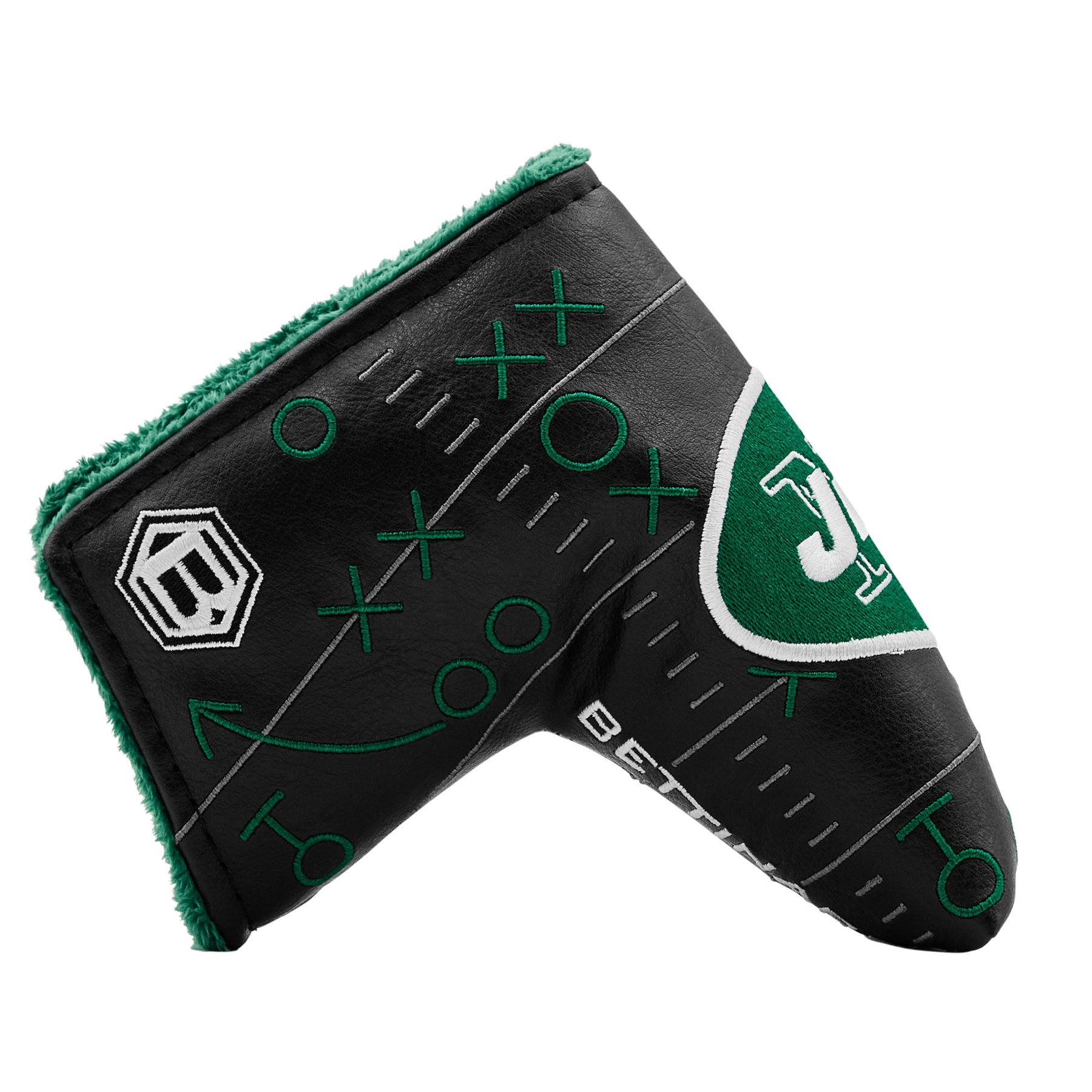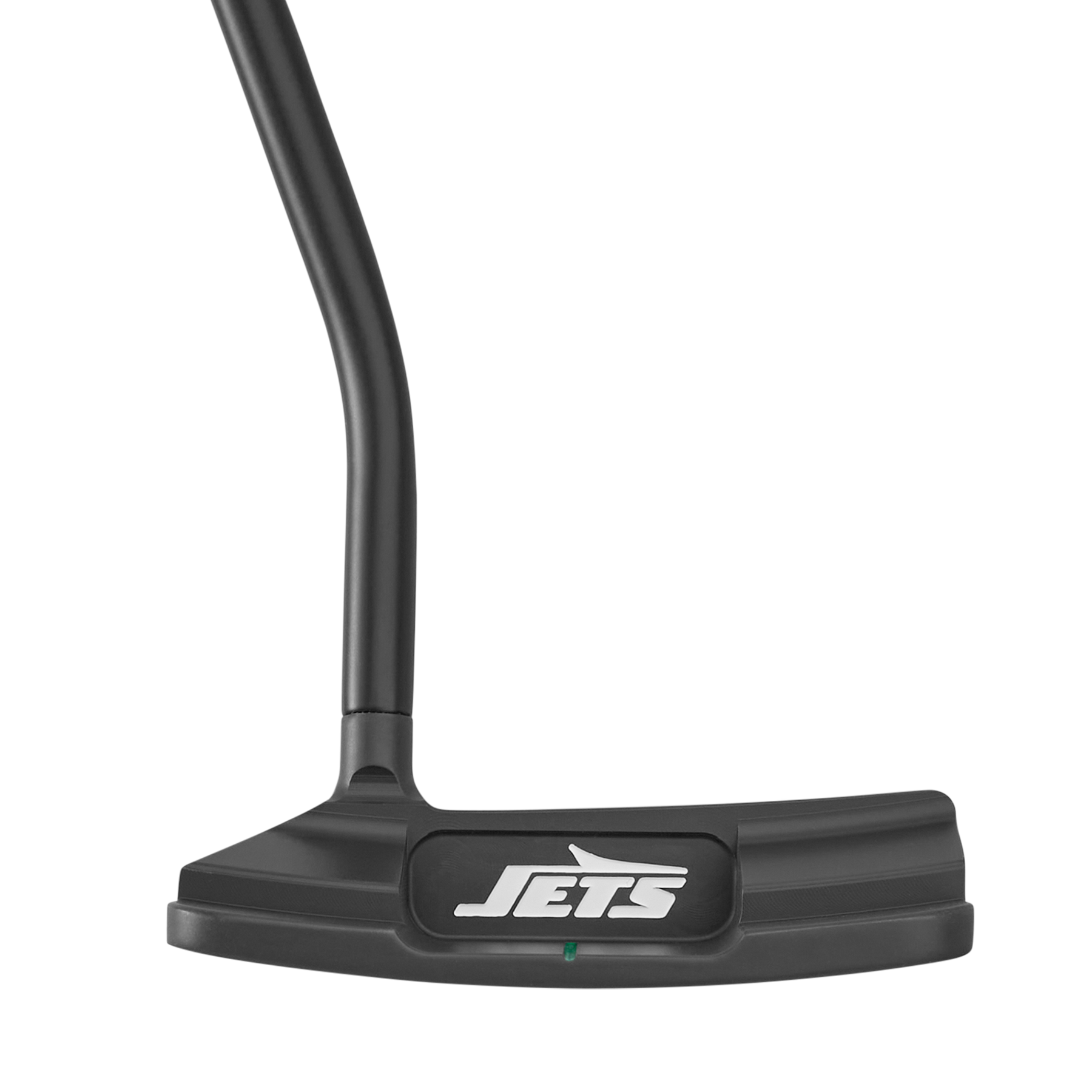 This throwback New York Jets Queen B 6 Putter is finished in Black Ox with green and white paintfills and features the New York Jets classic mark and team slogans on the sole. Milled from 303SS, it boasts a single sightline alignment and a Flymill face for a firm, yet responsive feel. The face of the putter is adorned with the Hex B on the heel, and in the pocket you’ll find the New York Jets wordmark. Elevate your game with this limited run putter that combines Bettinardi’s world-renowned design and precision milling with New York Jets pride. Comes completed with a black and gray Bettinardi Hex B standard grip and New York Jets X's & O's Classic Mark Blade Putter Headcover. Limited quantities are available.