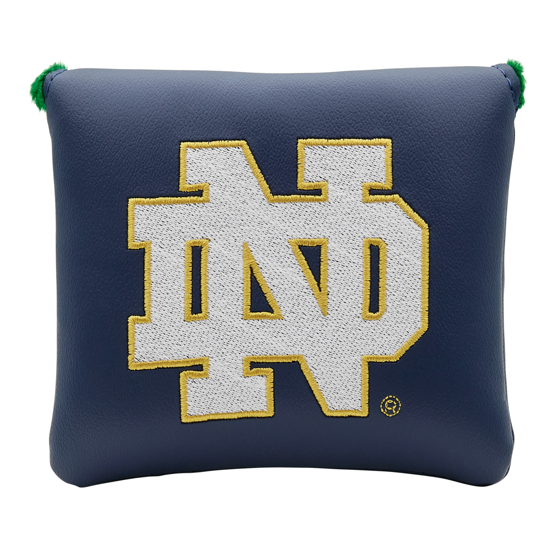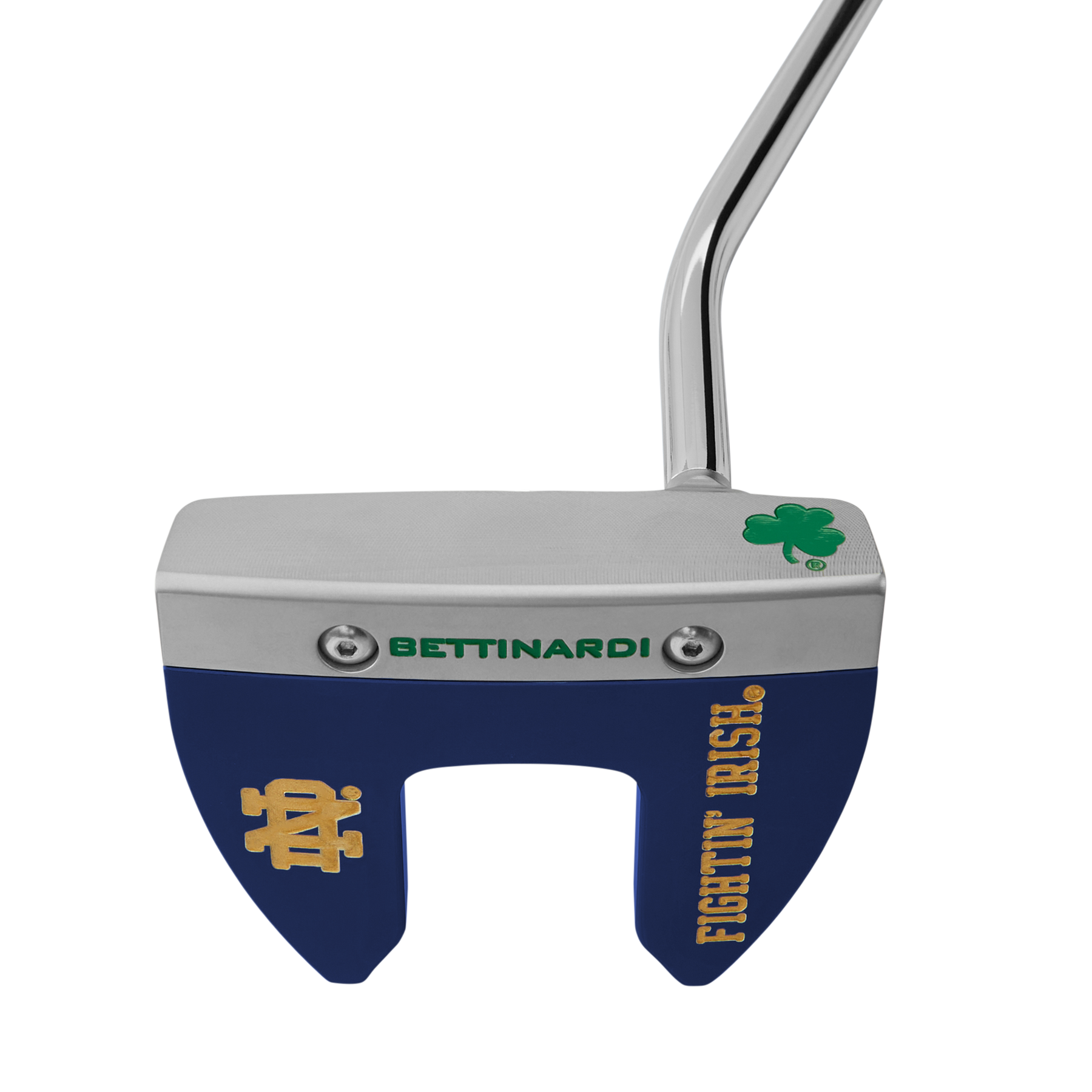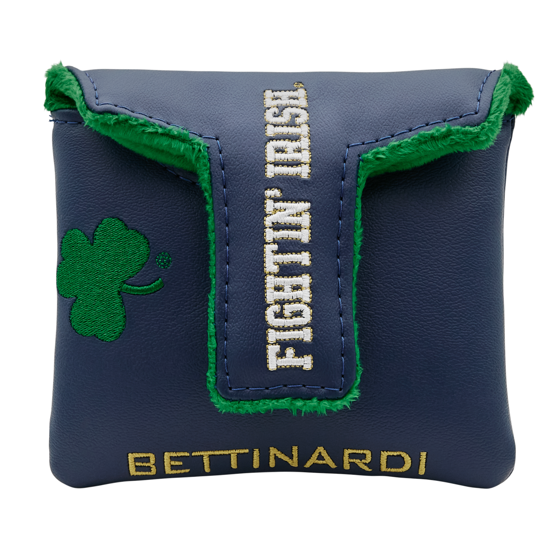 Fight On, Irish! This Notre Dame INOVAI 6.0 Putter face is finished in Diamond Blast with the 6061 Aluminum back piece. Featured in a navy Anodized finish with gold paint fills and a single topline alignment with a Flymill face for a firm, yet responsive feel. The face of the putter is adorned with a green clover on the heel, and in the pocket, you’ll find a Hex B. Elevate your game with this limited run putter that combines Bettinardi’s world-renowned design and precision milling with Notre Dame pride. Comes completed with a navy Hex B Gripmaster perforated leather grip and Notre Dame mallet putter headcover. Limited quantities are available. Good luck!